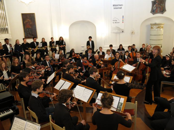 Mit "Musik zum Advent" sind die drei großen Adventskonzerte überschrieben, die den Höhepunkt der Vorweihnachtszeit am Kolleg alljährlich prägen. Alle musikalischen Gruppierungen brachten mit einem sehr schönen Auftaktkonzert (5.12.) feierliche Musik zum Advent aus verschiedenen Epochen zur Aufführung. Es konzertierten im voll besetzten Festsaal die Unterstufen-AG Chor (Leitung: Michael Neymeyer), die Unterstufen-AG Orchester (Leitung: Clemens Staiger), die Kollegsschola (Leitung: Clemens Disch), der Kollegschor (Leitung: Florian Naab) und das Kollegsorchester (Leitung: Nicole Kabisch). Impressionen vom Adventskonzert finden Sie auf unserer Website und eine Presseresonanz gibt es in der Badischen Zeitung.