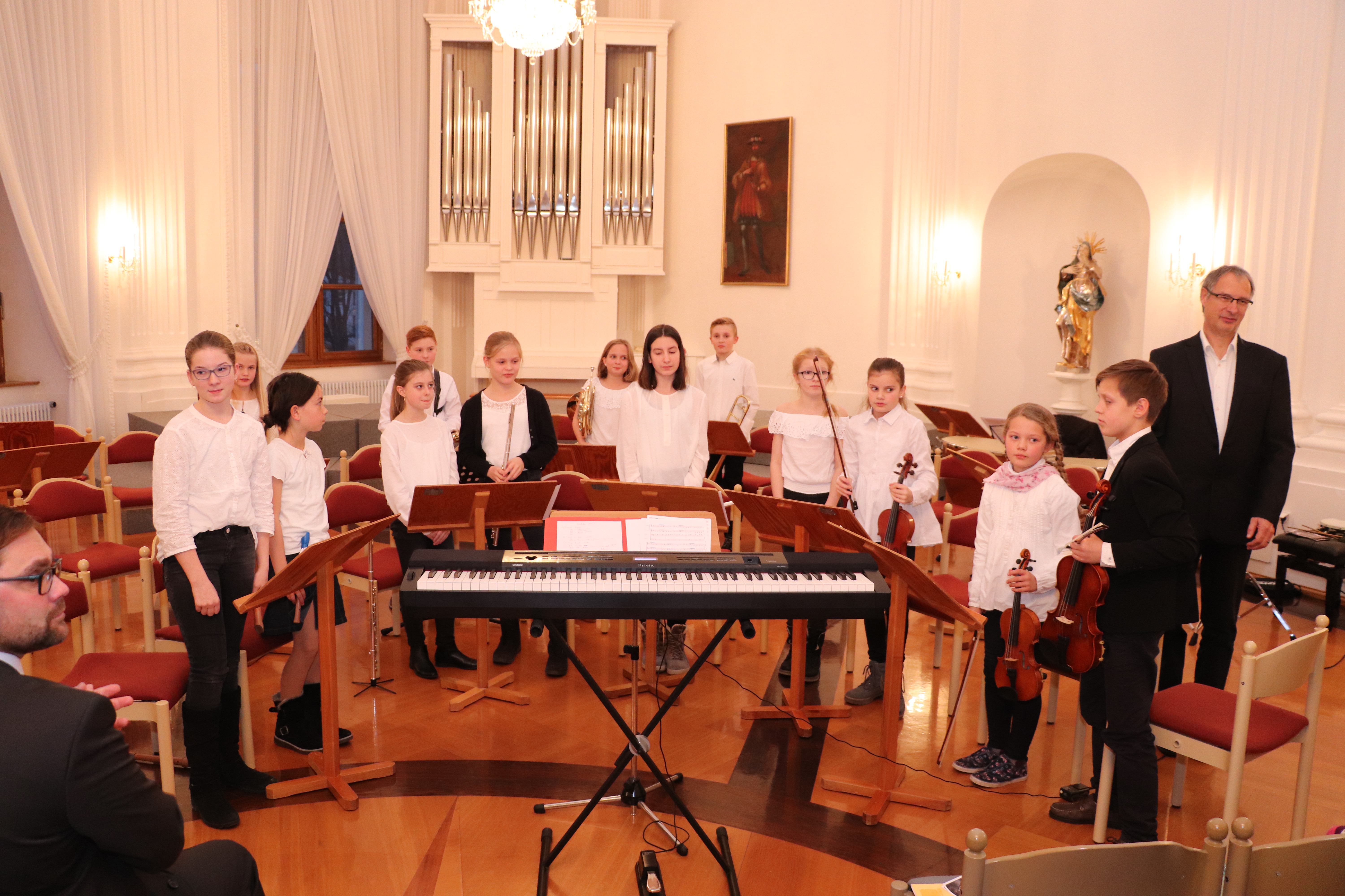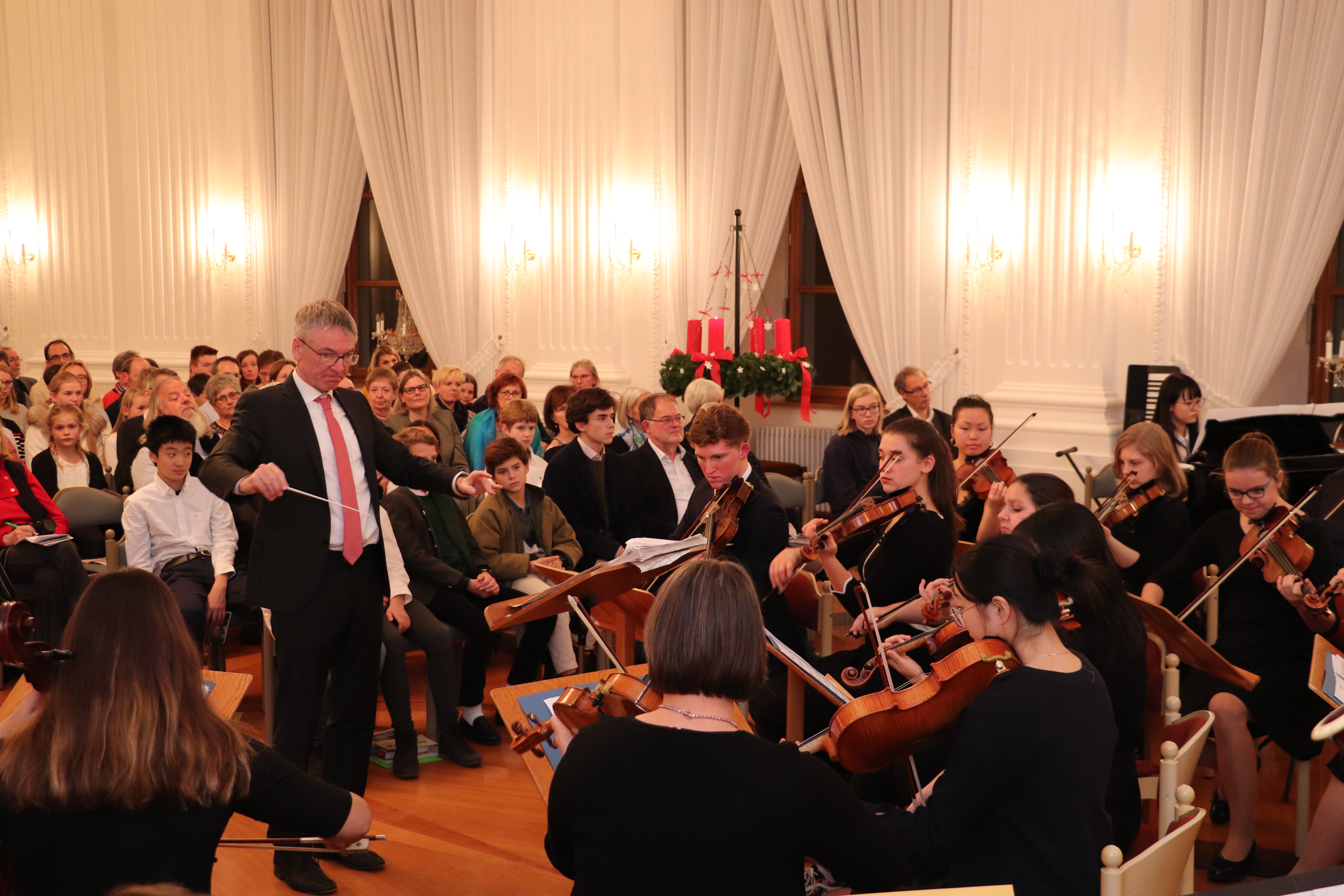Die beiden gelungenen Adventskonzerte mit sehr schönen Arrangements waren ein wunderbares Einklingen der Weihnachtszeit. Zahlreiche Zuhörer im Festsaal des Kollegs konnten das musikalische Ereignis genießen. Die verschiedenen musikalischen Gruppierungen und Solisten des Kollegs brachten unter der Leitung von Frau Backhaus (Unterstufenchor), Herrn Neymeyer (Unterstufen-Orchester), Herrn Pollak (Kollegschor) und Herrn Weißenbach (Kollegsorchester) adventliche Musik verschiedenster Epochen zu Gehör. Einen Pressartikel gibt es in der Badischen Zeitung vom 9. Dezember 2019.