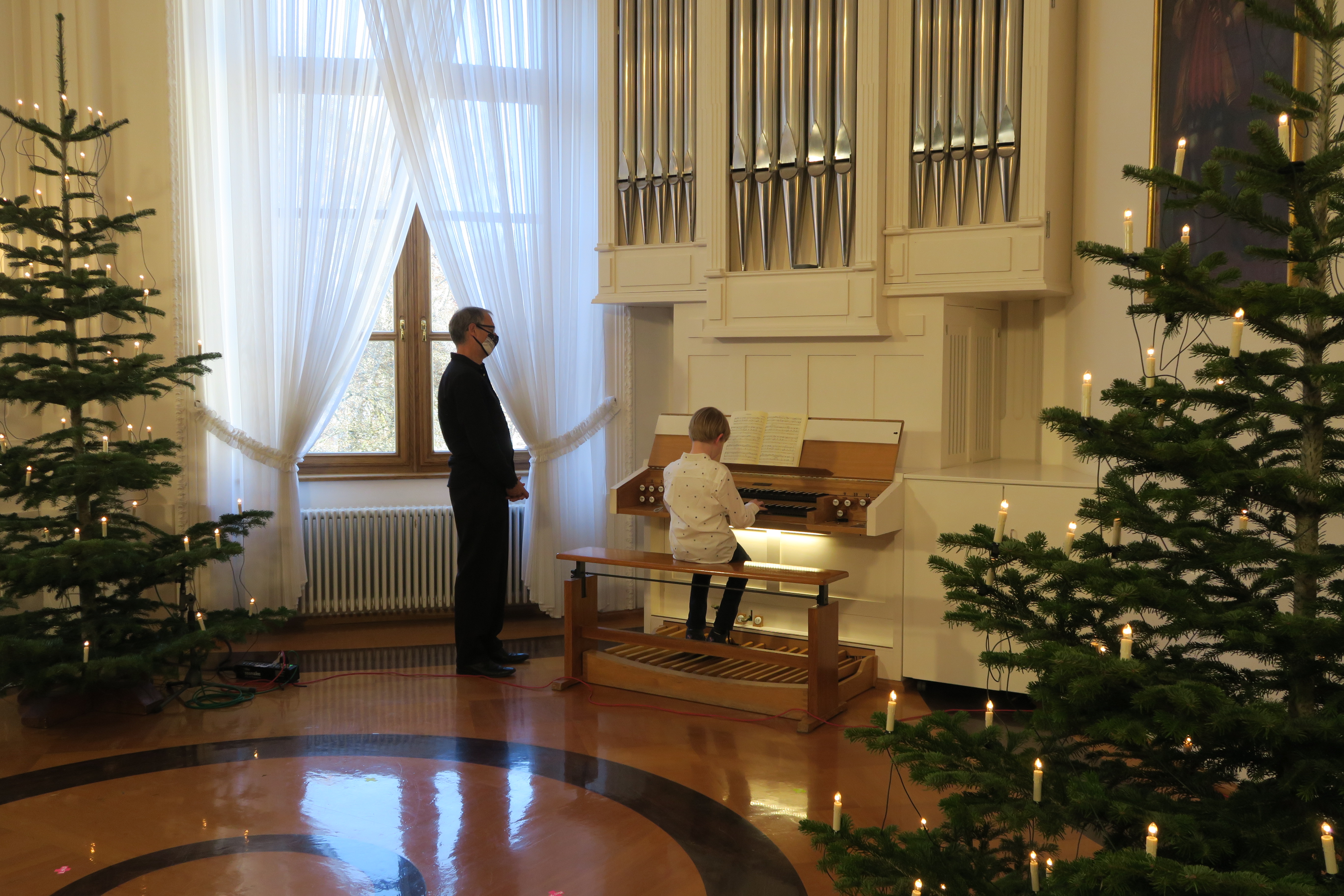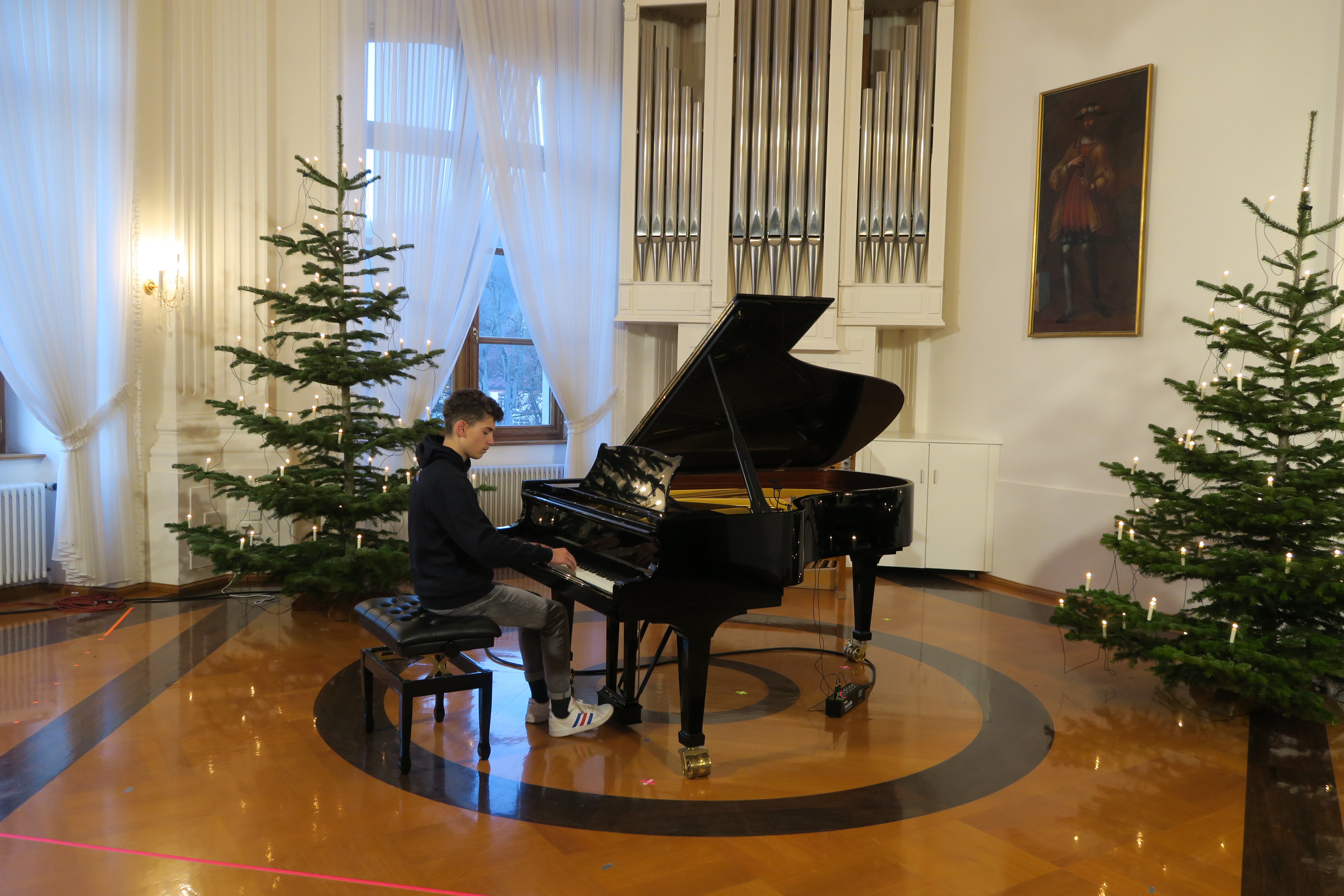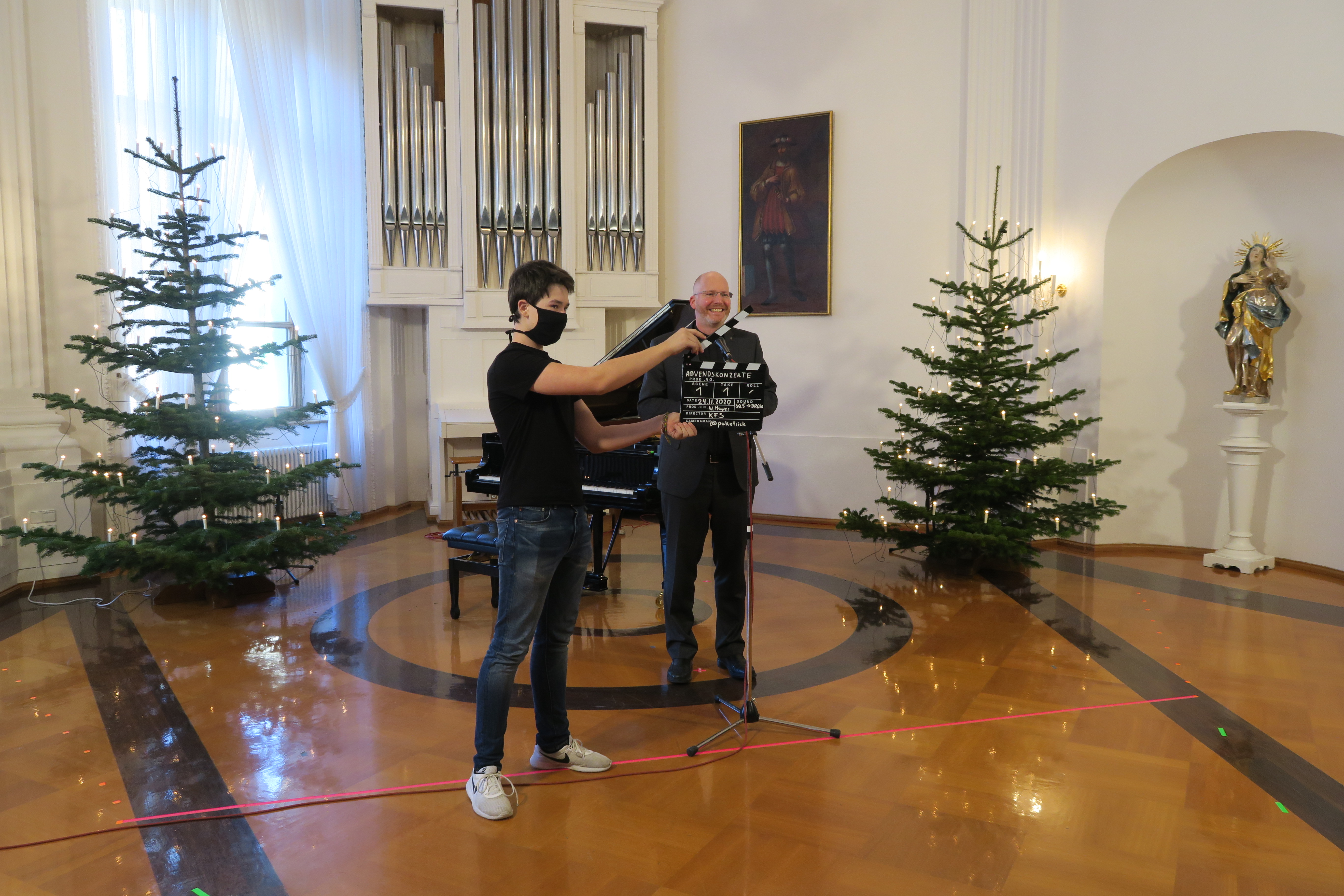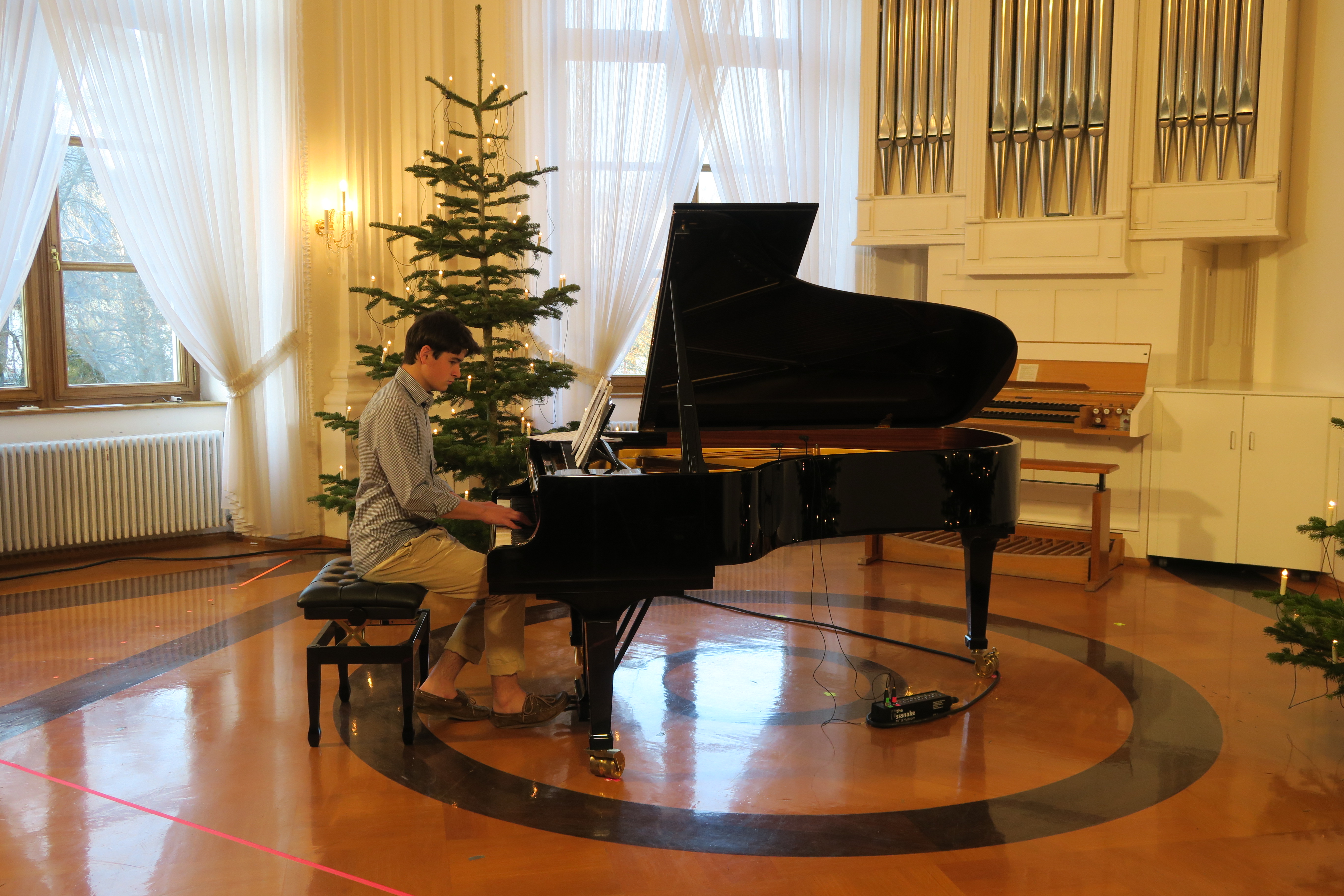 Die Adventskonzerte prägen alljährlich den klangvollen Höhepunkt der Vorweihnachtszeit am Kolleg. In diesem Jahr ist das anders: Die Adventsmusik wird erstmalig über das Internet ausgestrahlt. In den vergangenen Tagen hat das Kollegsfernsehen (KFS) die sehr schönen Schülerbeiträge im Festsaal aufgezeichnet, die ab Mitte Dezember über unsere Homepage abrufbar sind. Instrumentalisten, Sängerinnen und Sänger präsentierten zauberhafte Werke. Auf dem Programm stand eine Bandbreite von feierlichen Kompositionen vom Barock bis zu Leonard Cohen. Einen Presseartikel über die umfangreichen Vorbereitungen für das Online-Ereignis gibt es in der Badischen Zeitung.