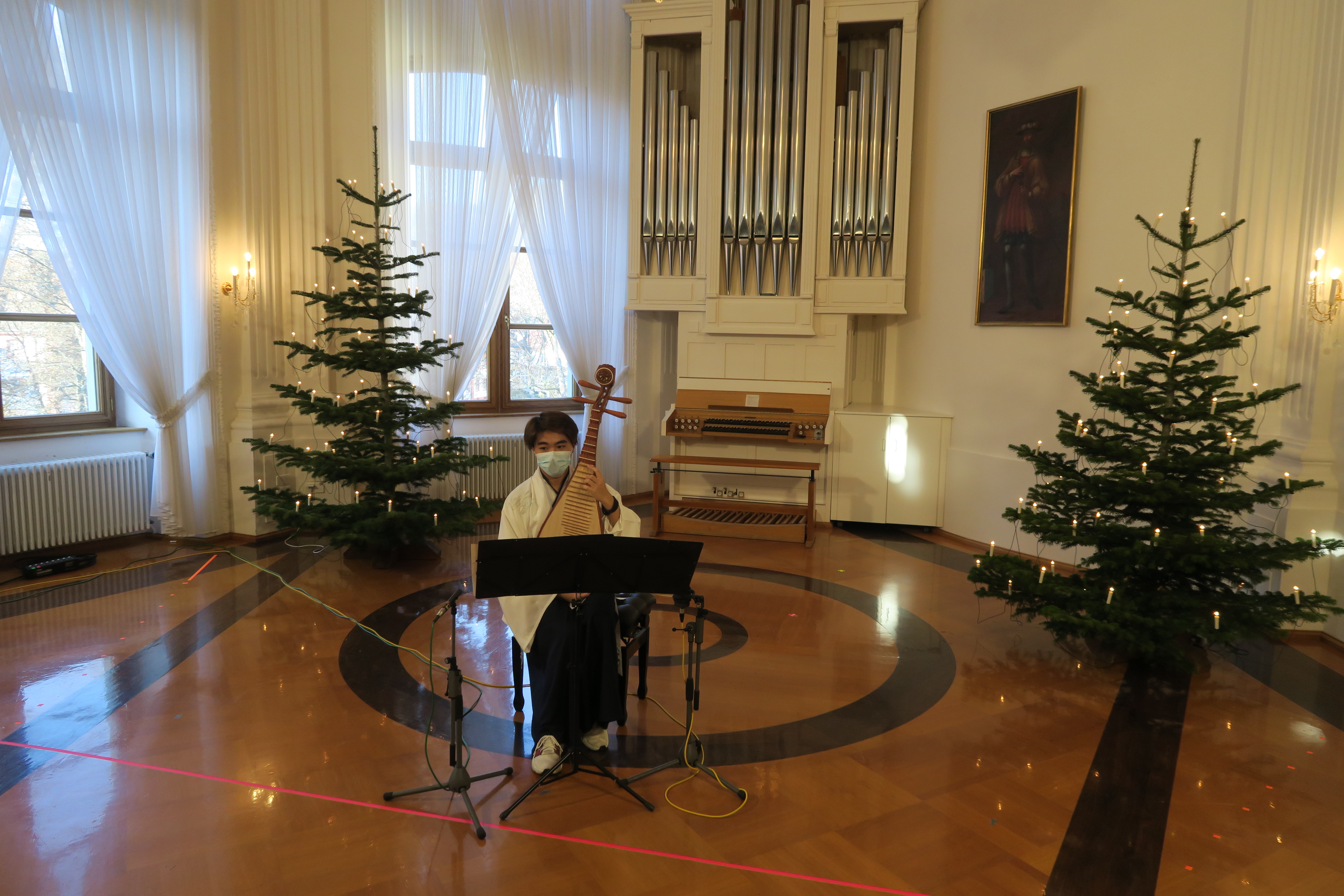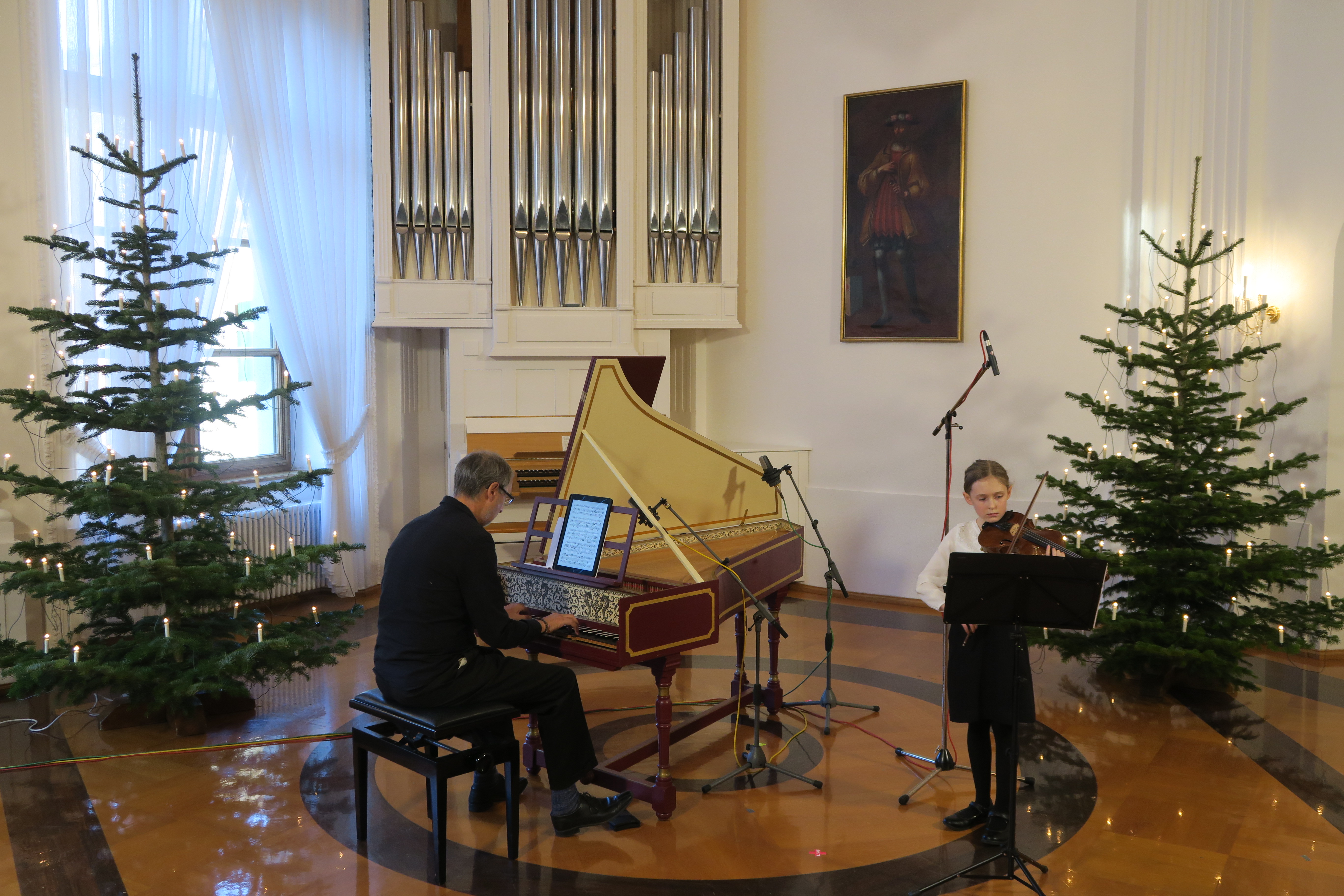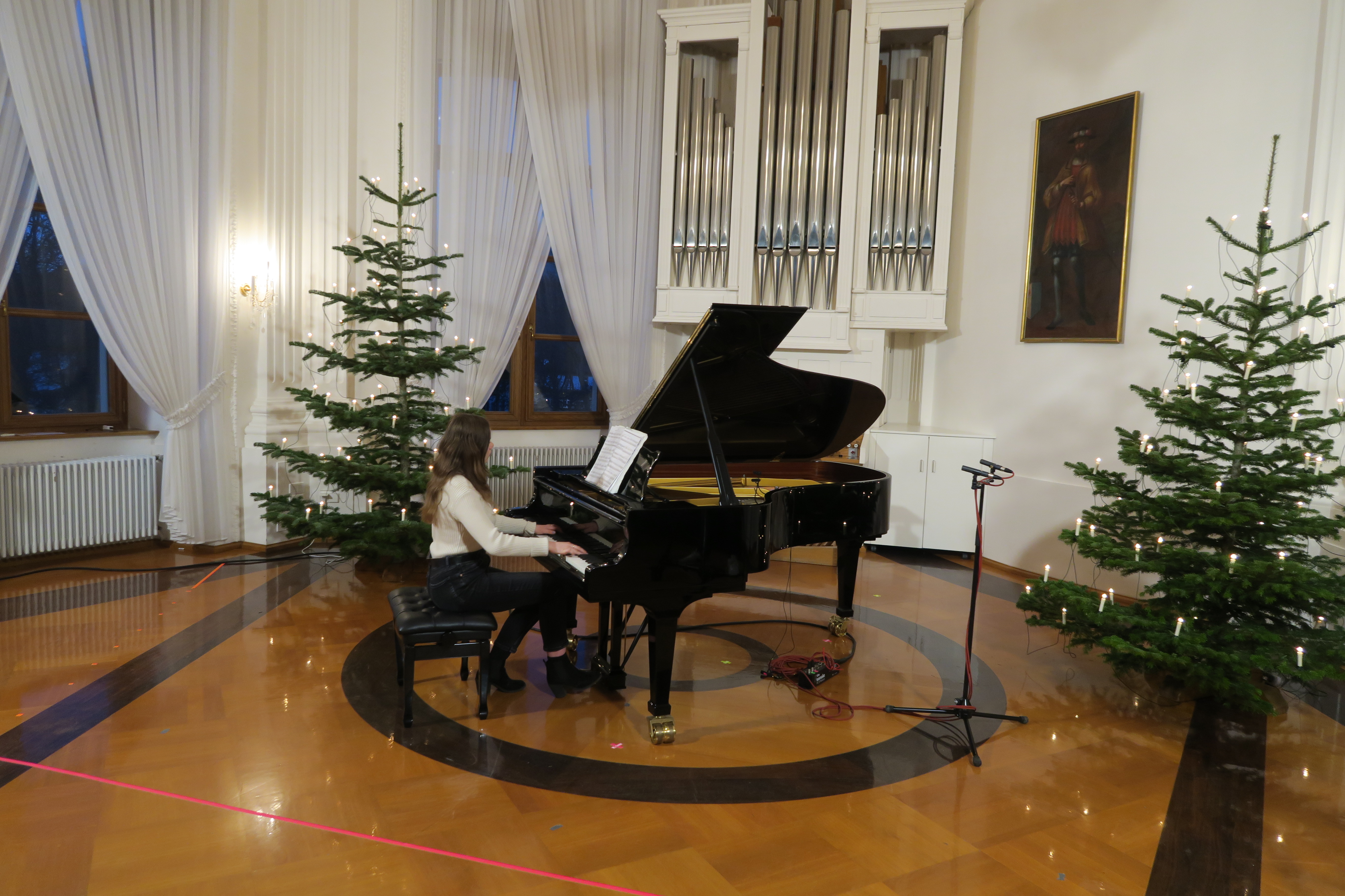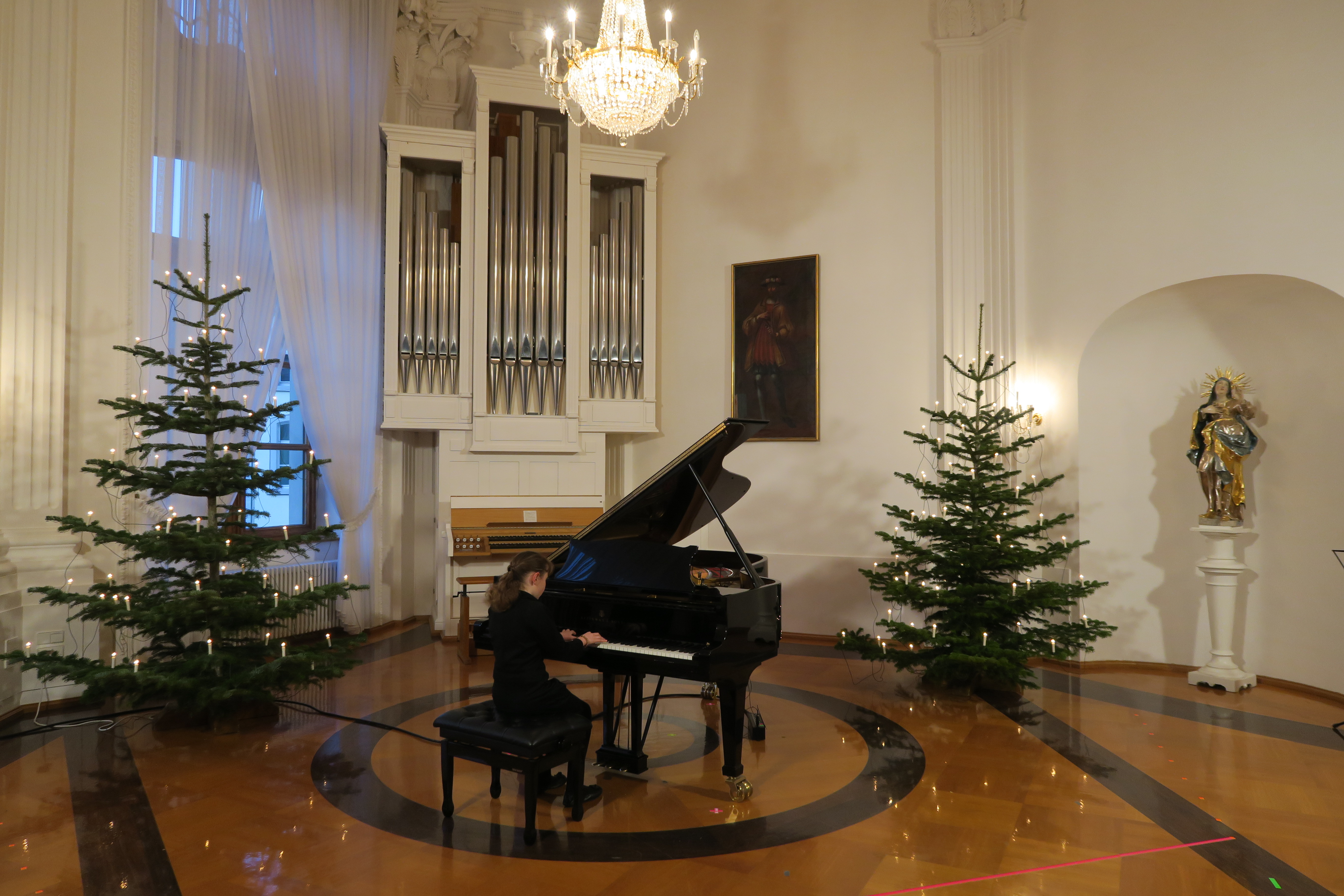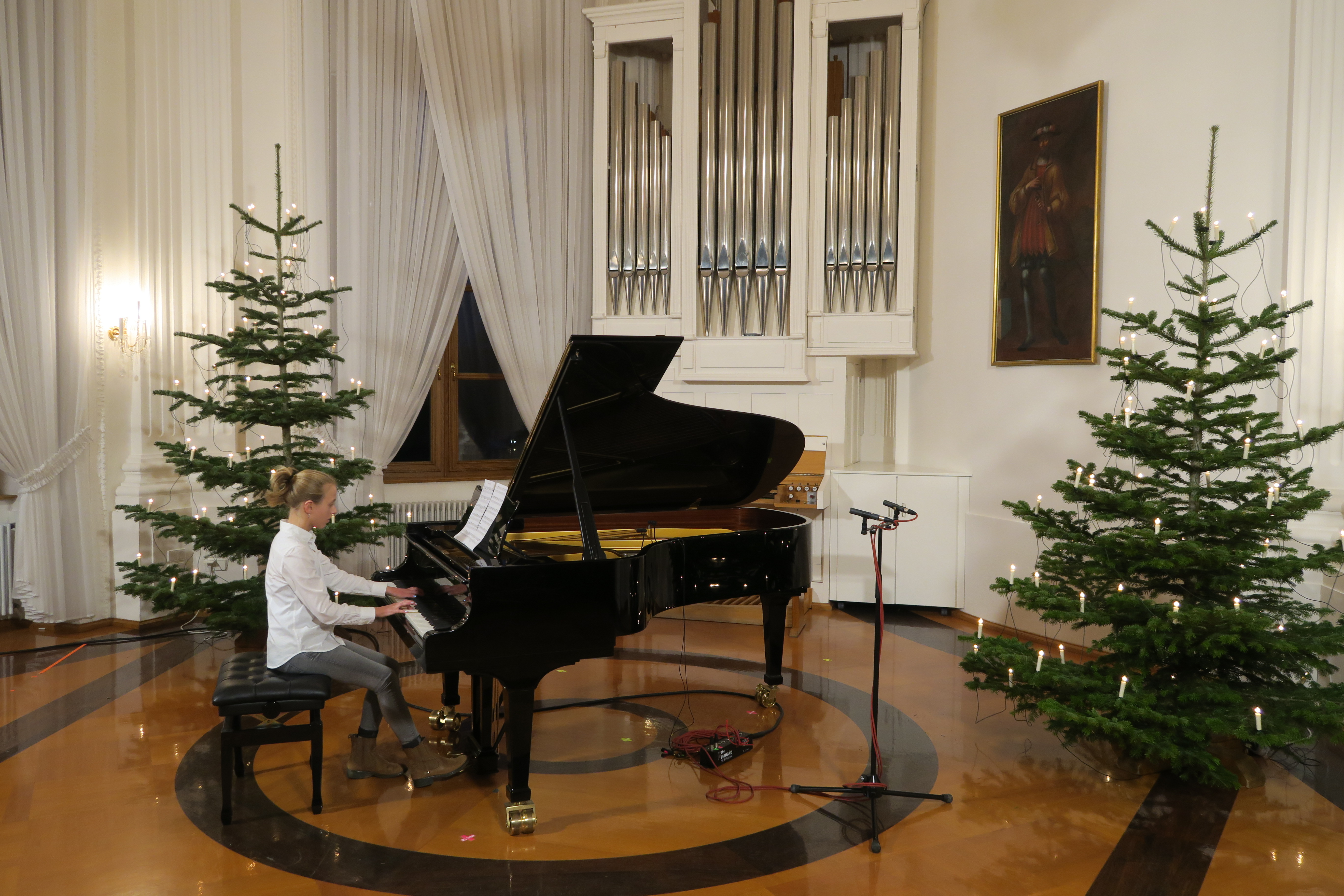 Die Adventskonzerte prägen alljährlich den klangvollen Höhepunkt der Vorweihnachtszeit am Kolleg. In diesem Jahr ist das anders: Die Adventsmusik wird erstmalig über das Internet ausgestrahlt. In den vergangenen Tagen hat das Kollegsfernsehen (KFS) die sehr schönen Schülerbeiträge im Festsaal aufgezeichnet, die ab Mitte Dezember über unsere Homepage abrufbar sind. Instrumentalisten, Sängerinnen und Sänger präsentierten zauberhafte Werke. Auf dem Programm stand eine Bandbreite von feierlichen Kompositionen vom Barock bis zu Leonard Cohen. Einen Presseartikel über die umfangreichen Vorbereitungen für das Online-Ereignis gibt es in der Badischen Zeitung.