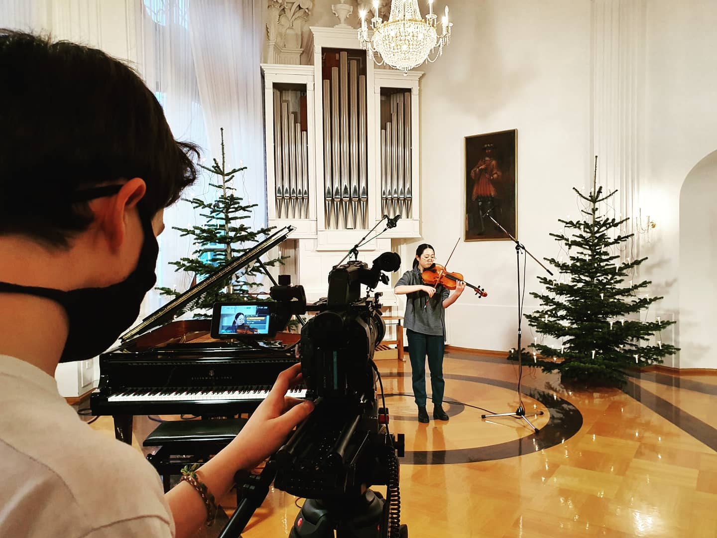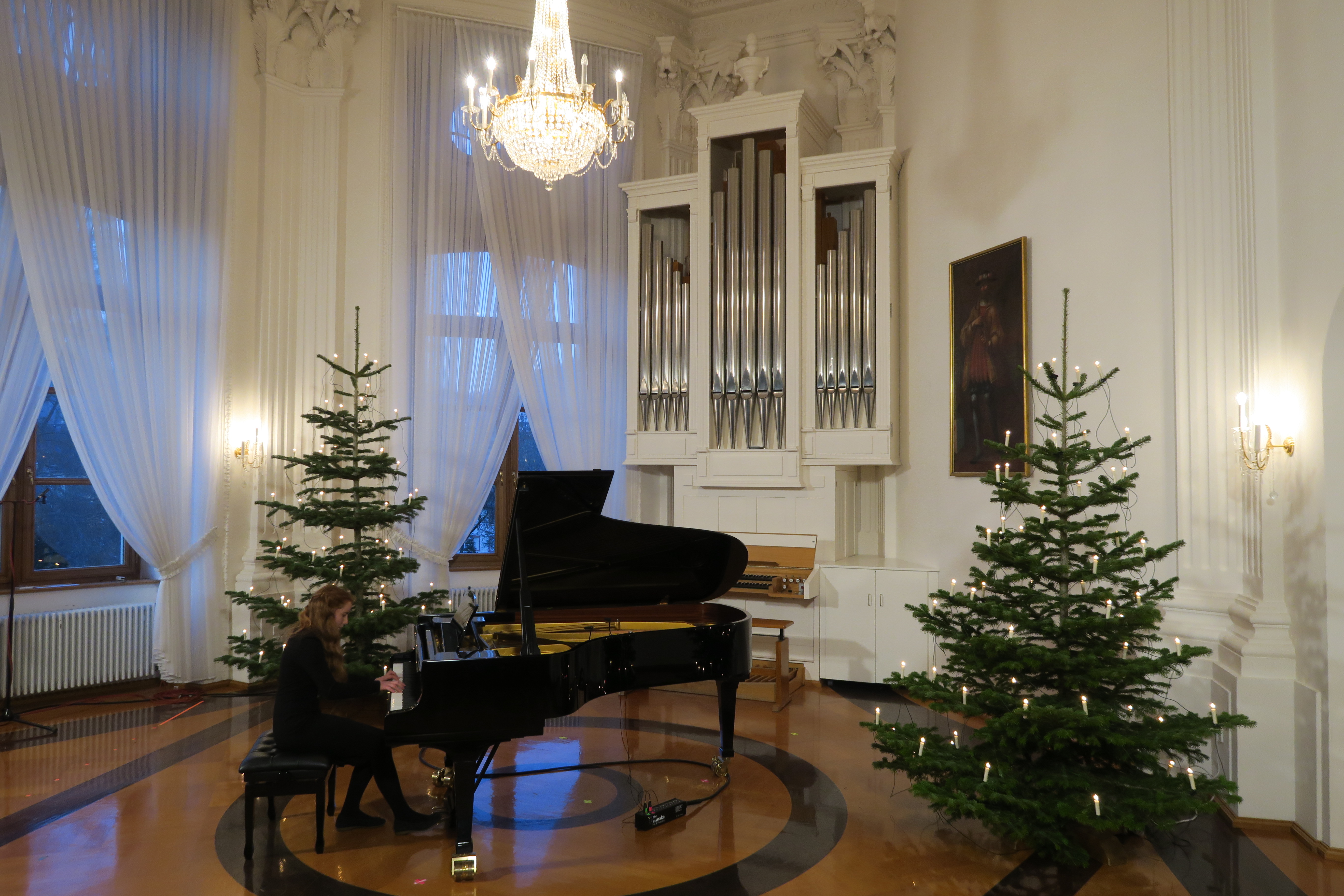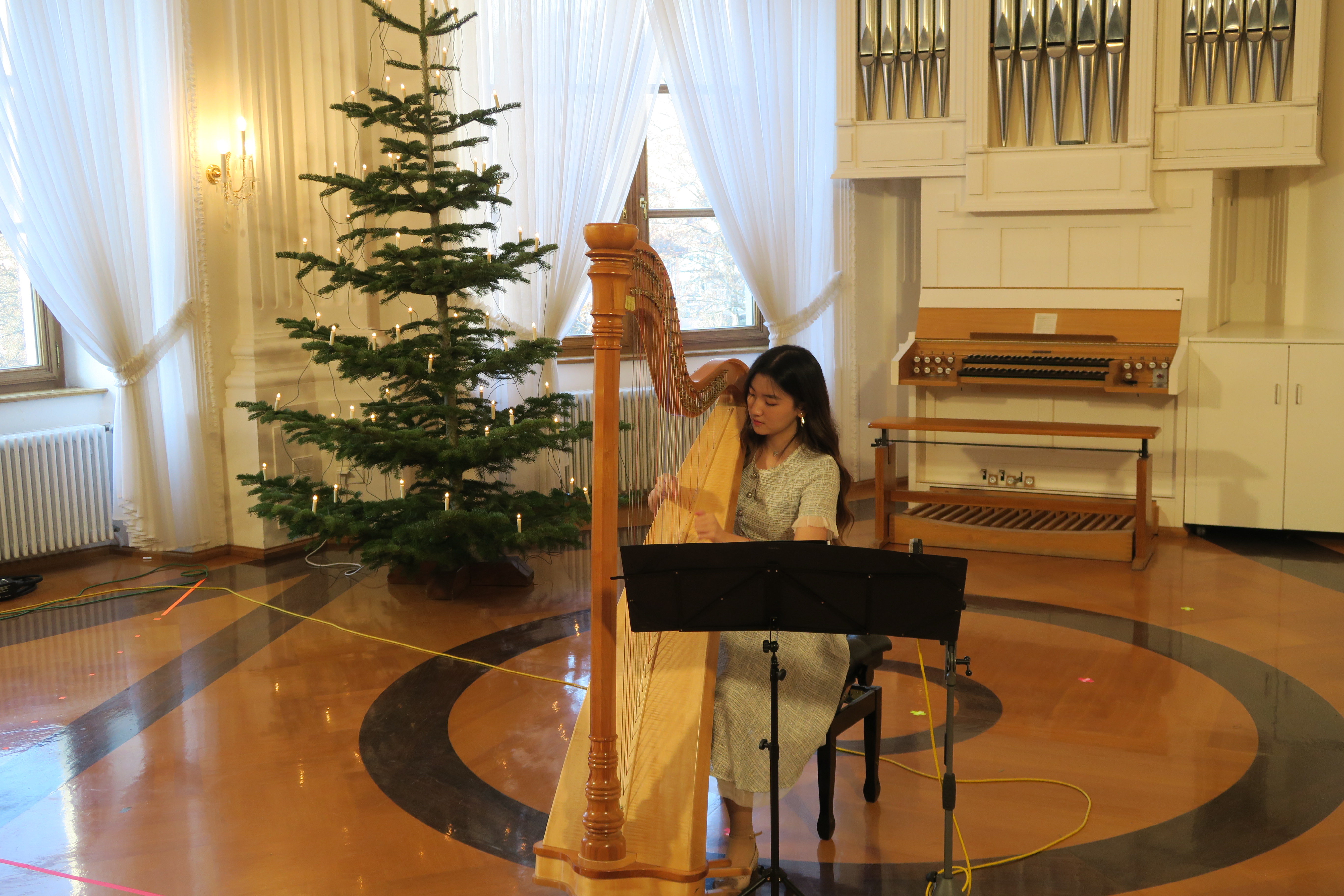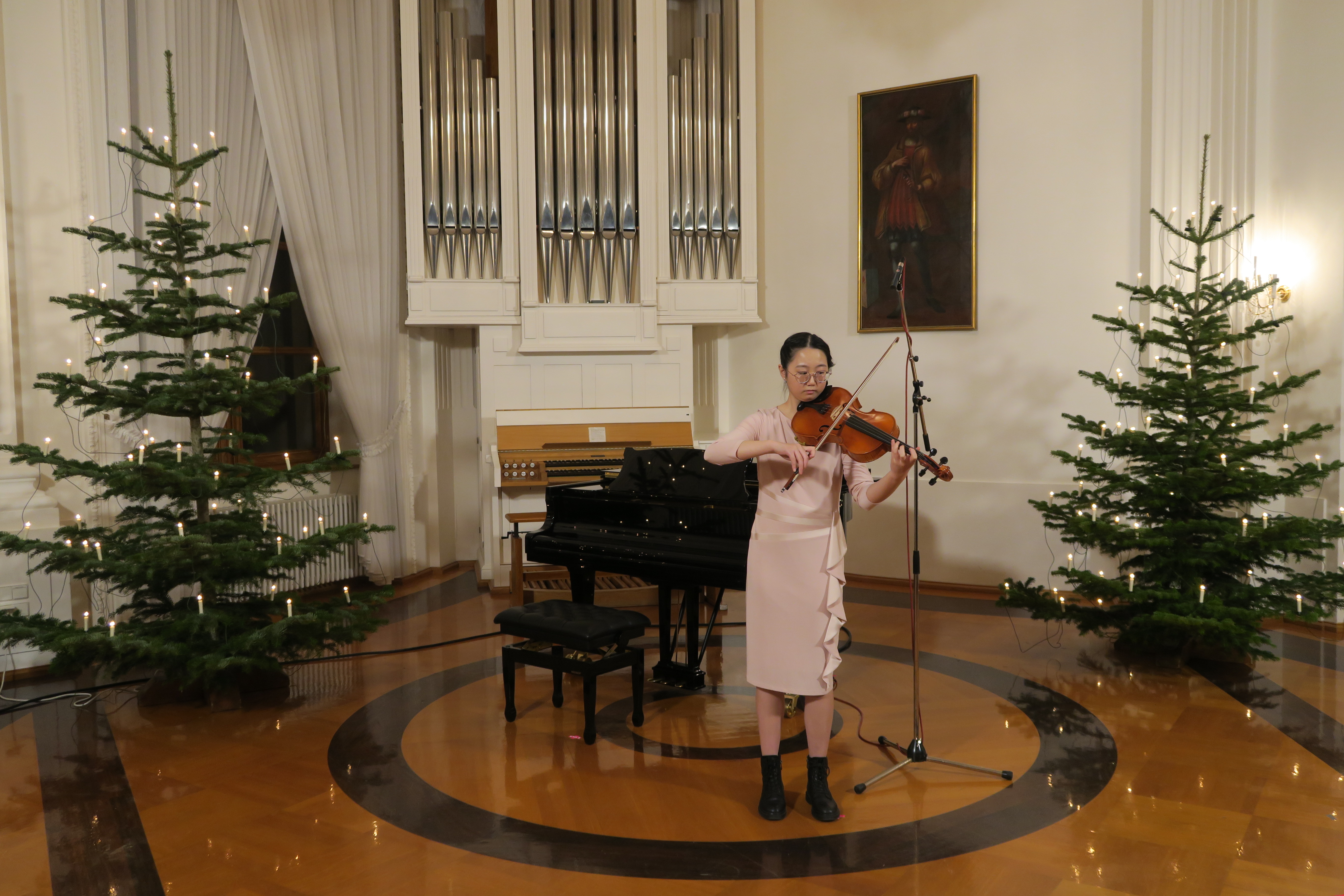 Die Adventskonzerte prägen alljährlich den klangvollen Höhepunkt der Vorweihnachtszeit am Kolleg. In diesem Jahr ist das anders: Die Adventsmusik wird erstmalig über das Internet ausgestrahlt. In den vergangenen Tagen hat das Kollegsfernsehen (KFS) die sehr schönen Schülerbeiträge im Festsaal aufgezeichnet, die ab Mitte Dezember über unsere Homepage abrufbar sind. Instrumentalisten, Sängerinnen und Sänger präsentierten zauberhafte Werke. Auf dem Programm stand eine Bandbreite von feierlichen Kompositionen vom Barock bis zu Leonard Cohen. Einen Presseartikel über die umfangreichen Vorbereitungen für das Online-Ereignis gibt es in der Badischen Zeitung.