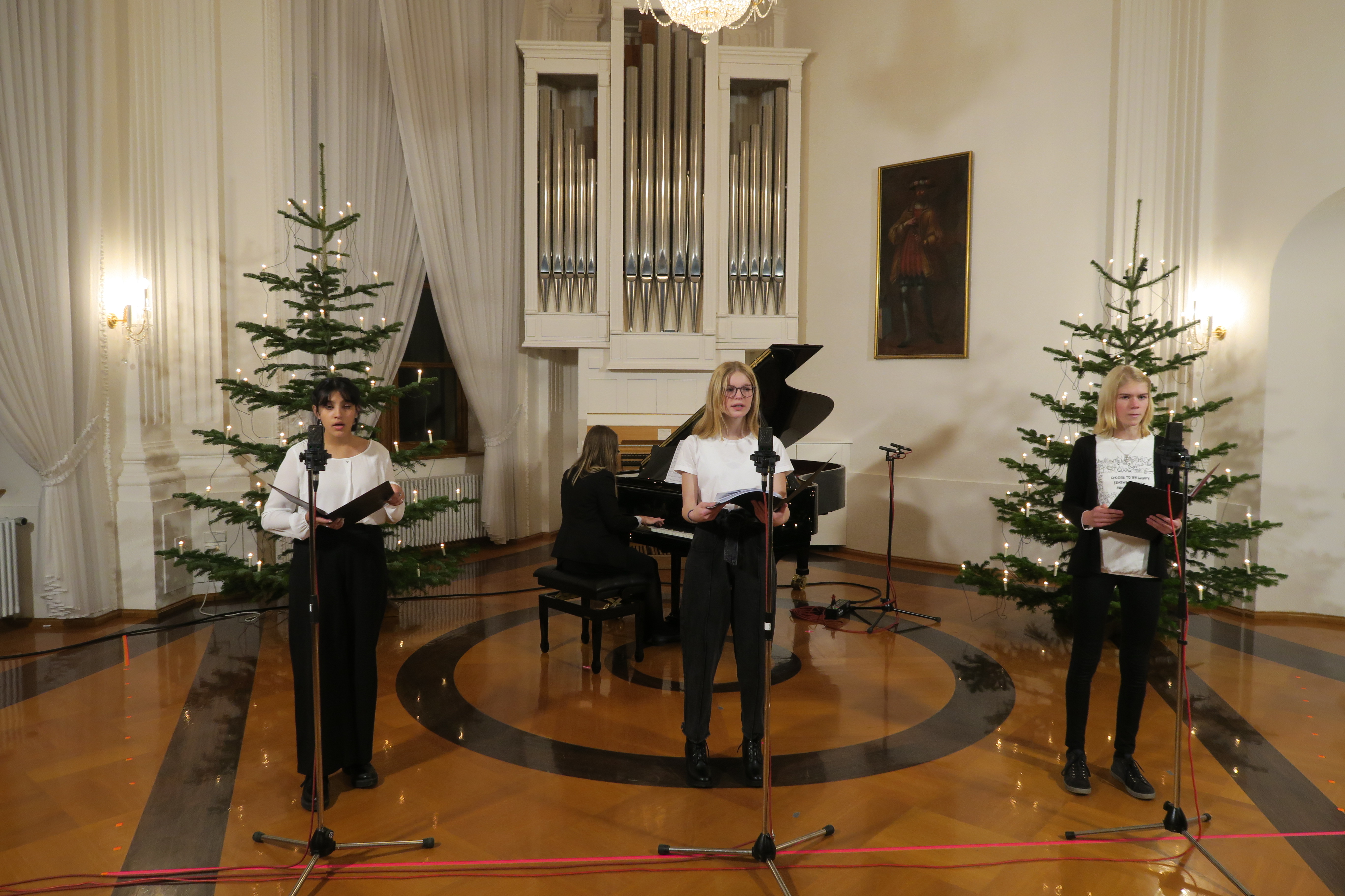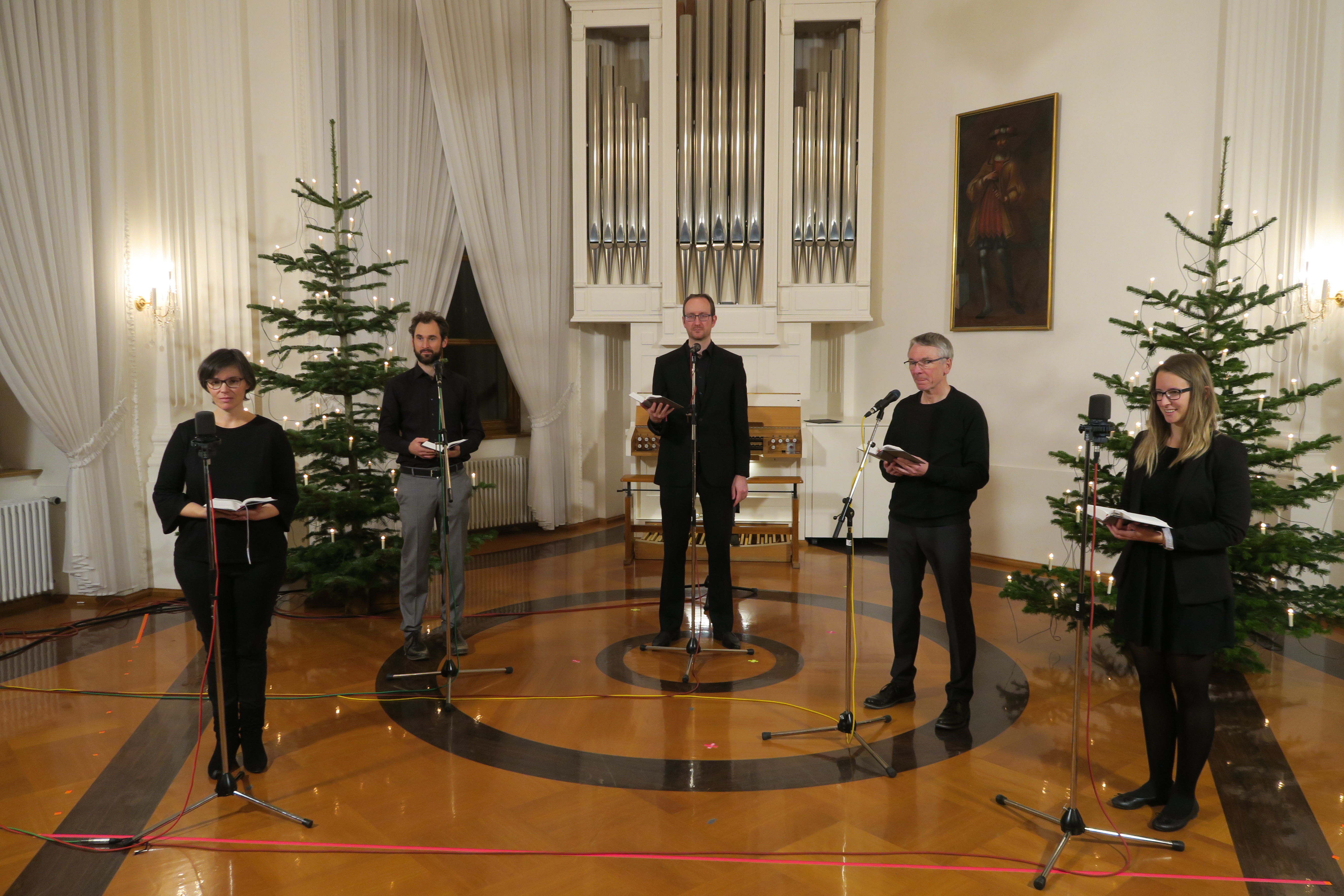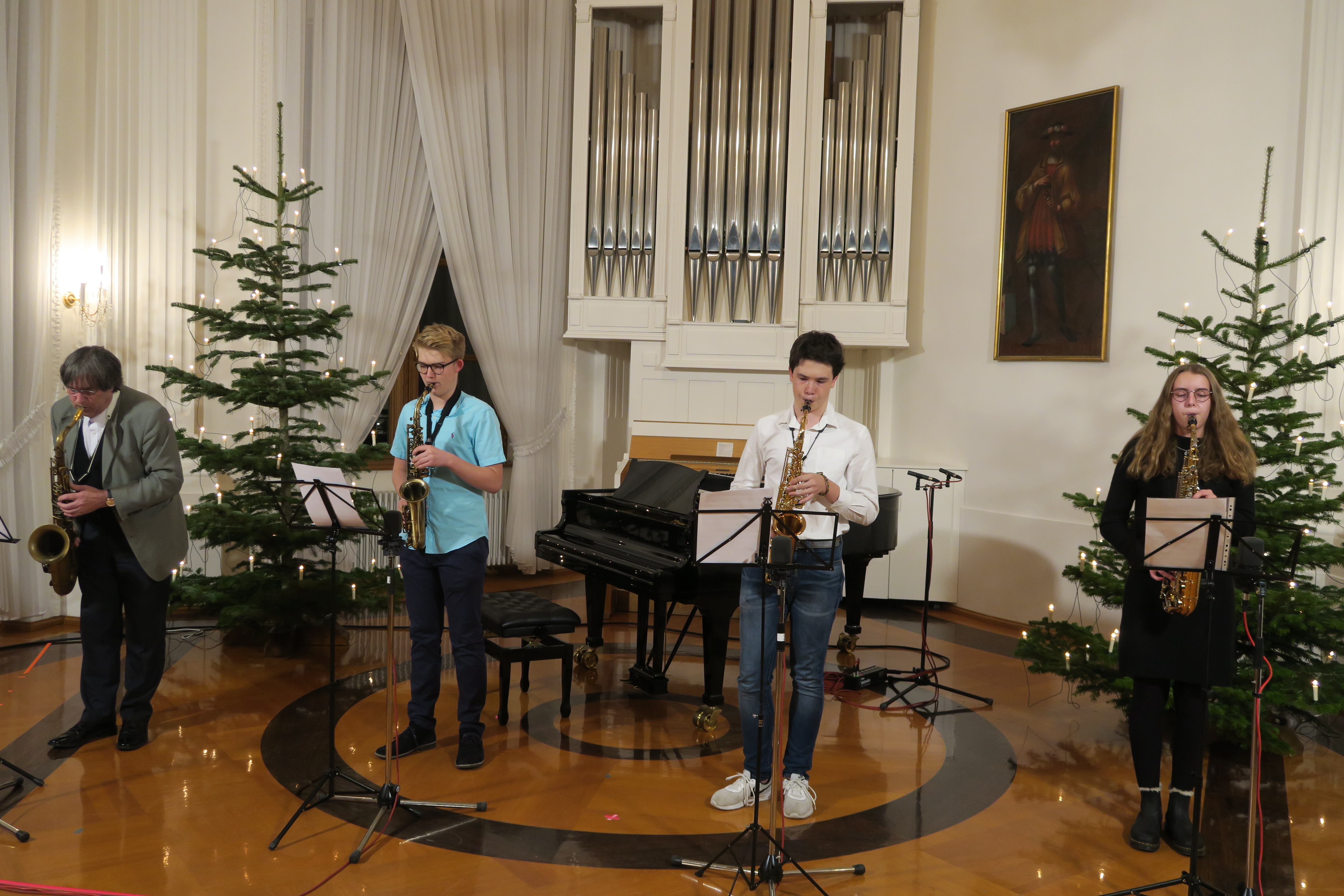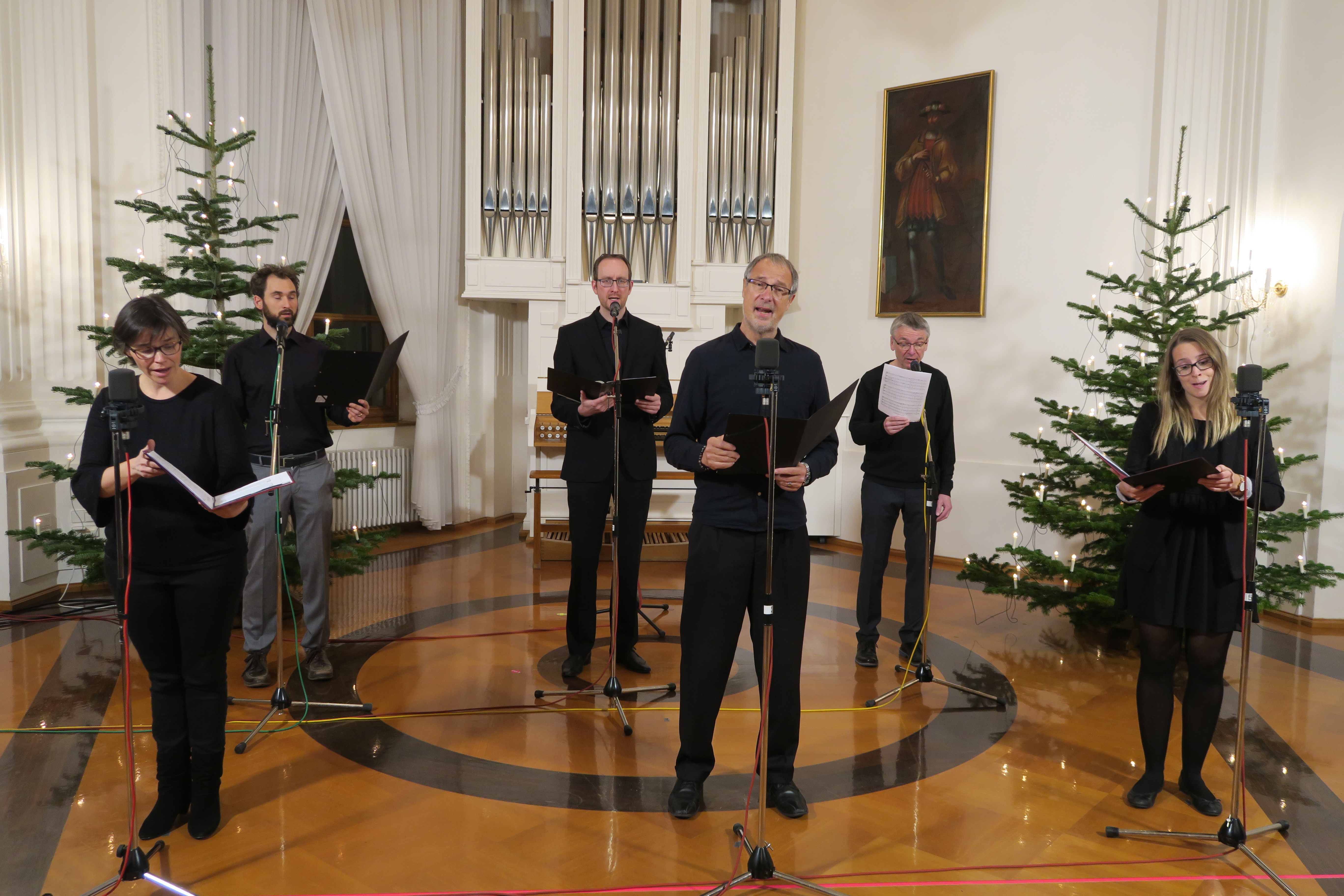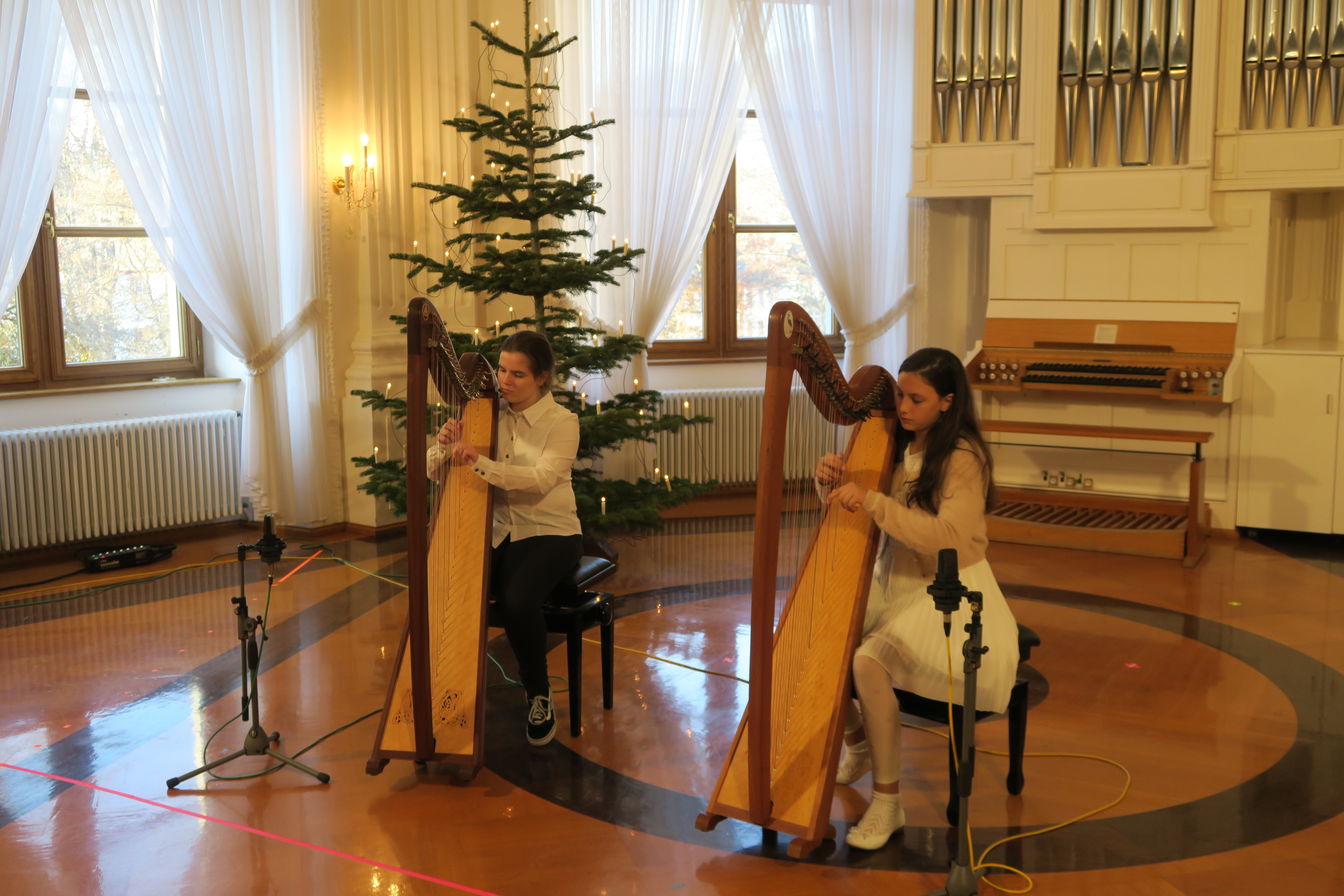 Die Adventskonzerte prägen alljährlich den klangvollen Höhepunkt der Vorweihnachtszeit am Kolleg. In diesem Jahr ist das anders: Die Adventsmusik wird erstmalig über das Internet ausgestrahlt. In den vergangenen Tagen hat das Kollegsfernsehen (KFS) die sehr schönen Schülerbeiträge im Festsaal aufgezeichnet, die ab Mitte Dezember über unsere Homepage abrufbar sind. Instrumentalisten, Sängerinnen und Sänger präsentierten zauberhafte Werke. Auf dem Programm stand eine Bandbreite von feierlichen Kompositionen vom Barock bis zu Leonard Cohen. Einen Presseartikel über die umfangreichen Vorbereitungen für das Online-Ereignis gibt es in der Badischen Zeitung.