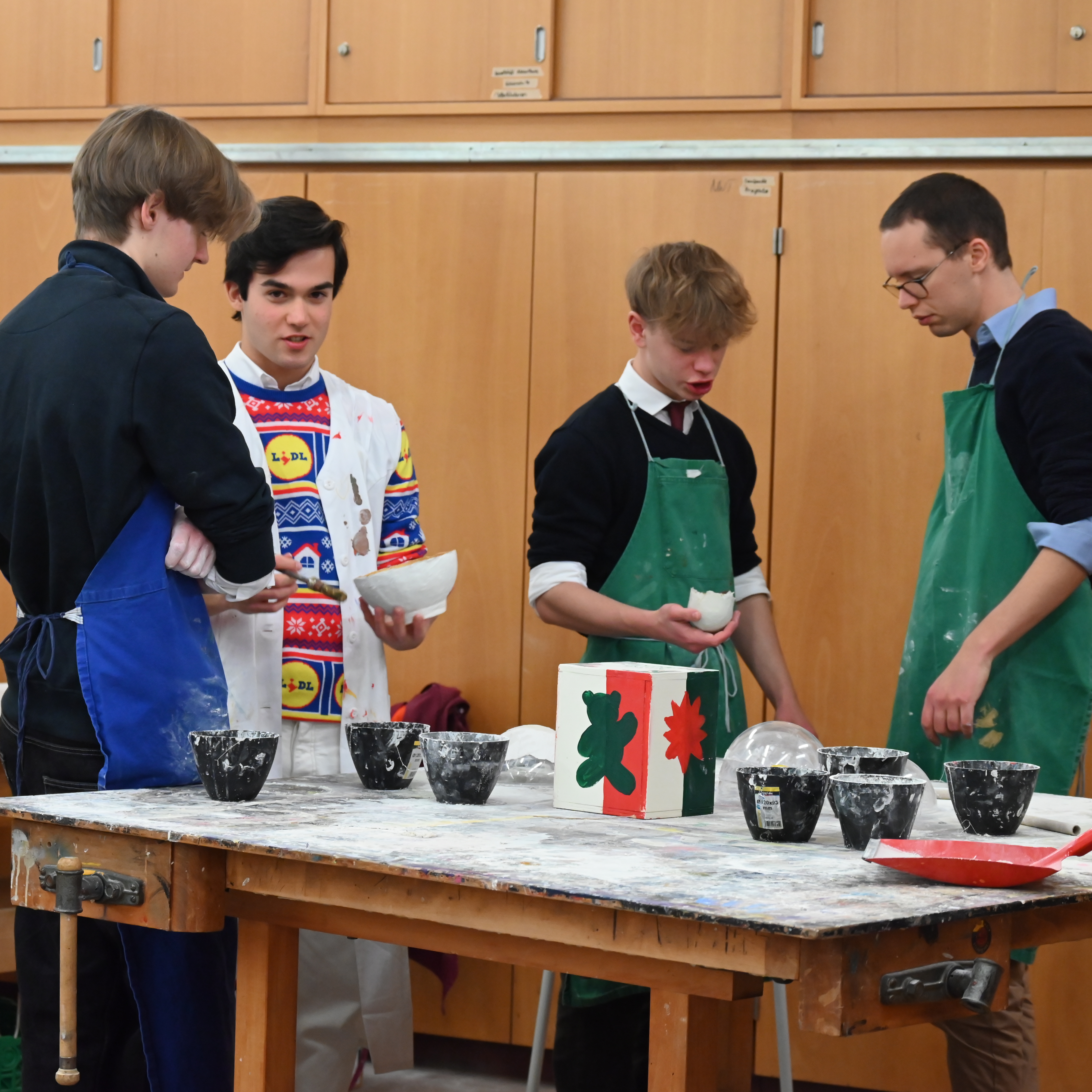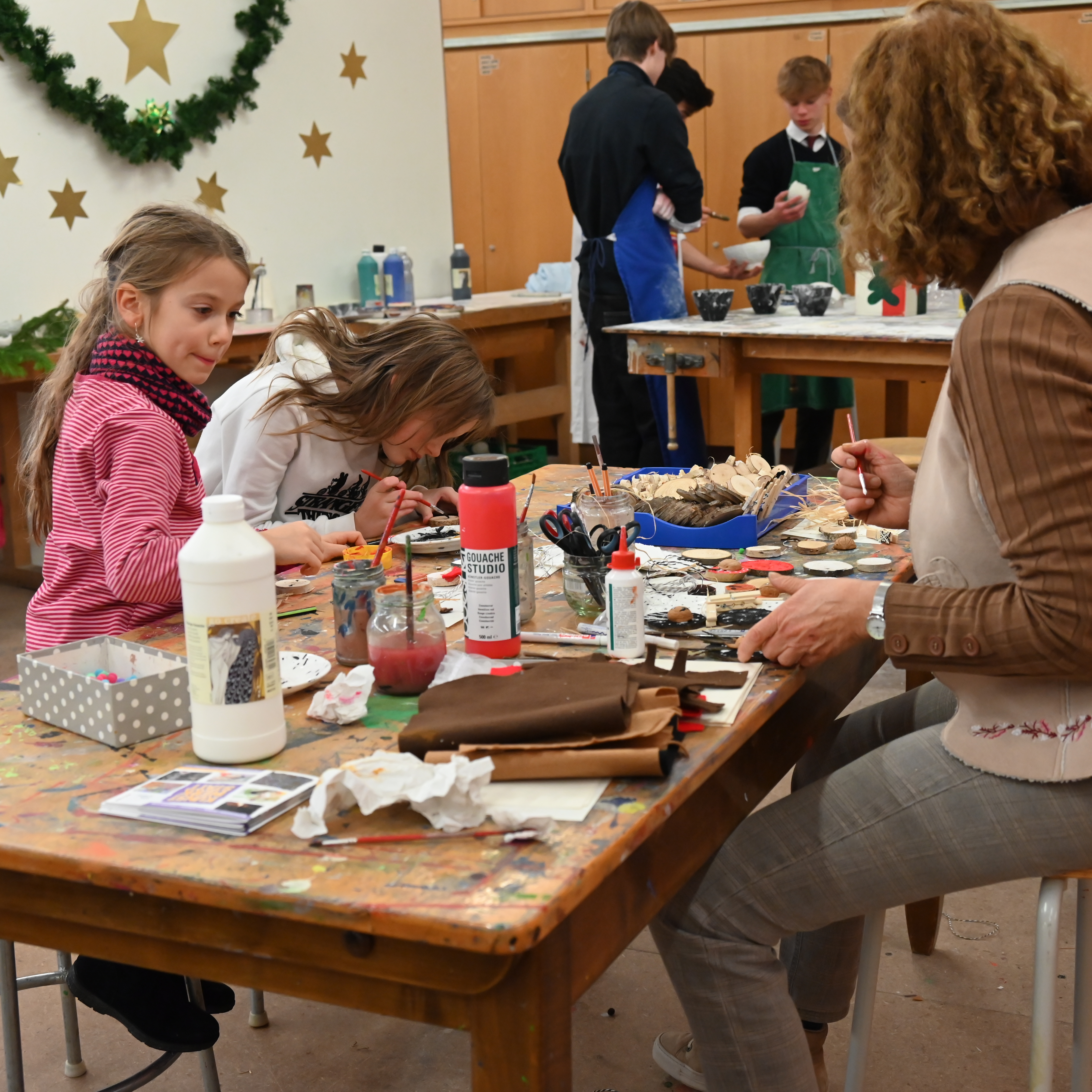 Zahlreiche Besucher fanden am zweiten Adventswochenende den Weg in die sehr schöne Adventswerkstatt des Kollegs. Dort lag der Schwerpunkt wieder auf attraktiven Mitmachangeboten: Kinder konnten beispielsweise Kerzen ziehen oder Astscheiben bemalen. Von Schülern in den vergangenen Jahren hergestellte Produkte gab es ebenfalls zu kaufen. Mit dem Erlös wurde das landwirtschaftliche Projekt Kasisi der Jesuiten in Sambia unterstützt.