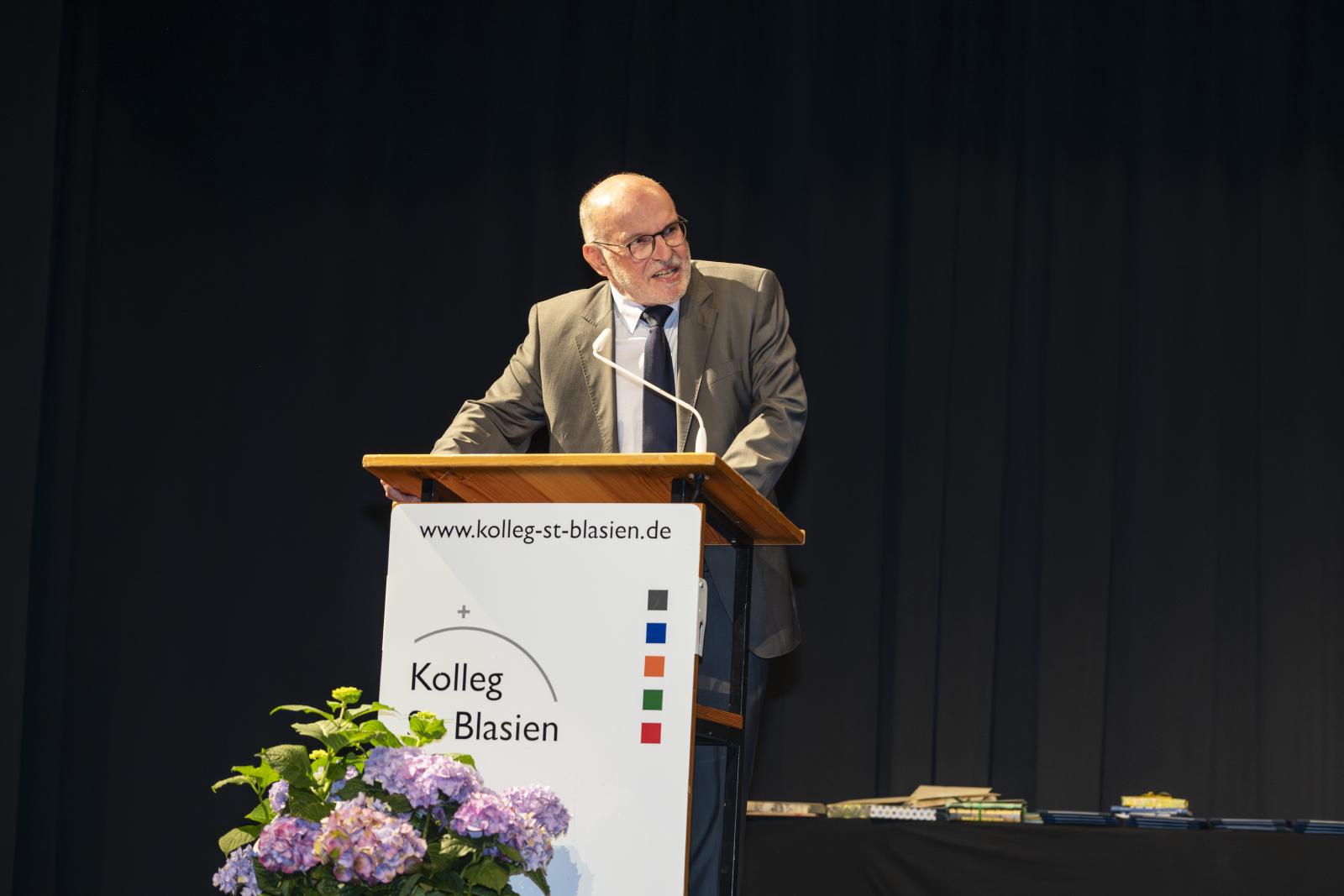 Am Samstagnachmittag, dem 5. Juli 2025, verabschiedete das Kolleg St. Blasien feierlich seine diesjährige Abiturientia. Die akademische Feier mit Zeugnisübergabe in der Pater-Alfred-Delp-Halle bildete den feierlichen Abschluss der Schullaufbahn von 109 Schülerinnen und Schülern. Zuvor fand auf dem neuen PADH-Vorplatz ein schöner Sektempfang statt, zu dem sich die Abiturientinnen und Abiturienten gemeinsam mit ihren Familien, Freunden sowie Lehrkräften versammelten. Um 14 Uhr begann die offizielle Feier mit musikalischen Beiträgen: Elias Hopmann, Alina Grohmann und Sofia Perkins an den Violinen sowie Olaf Nießing am Violoncello eröffneten das Programm mit Johann Pachelbels „Kanon in D“.