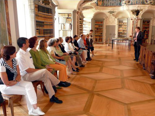 Am Dienstag führte ein gelungener Ausflug mit dem ehrenamtlichen Bibliotheksteam am Kolleg nach St. Peter. St. Peter ist als Geistliches Zentrum in der Erzdiözese Freiburg ein bedeutender spiritueller und kultureller Ort. In den Klostergebäuden wurde der schöne Fürstensaal und vor allem die sehenswerte Klosterbibliothek besichtigt, die ein wunderschöner Raum im Rokokostil umfasst und auf halber Höhe eine Galerie trägt.