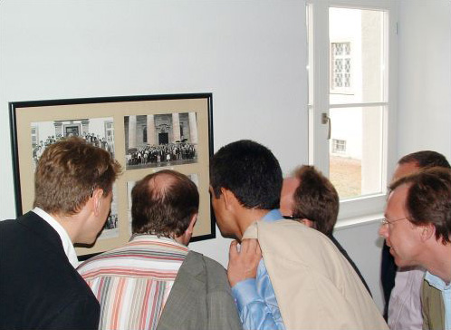 Am gestrigen Samstag versammelte sich zum 20-Jährigen der Abijahrgang 1985. Über 50 Absolventen des Jahrgangs waren gekommen. Nach einer ausgiebigen Führung in zwei Gruppen (mit Frau Woerz und Pater Siebner SJ) hat die Gruppe den neuen Kollegsfilm angeschaut und war sichtlich beeindruckt. Um sich auf das geplante "20-Jahre-danach-Foto" vor dem Dom zu rüsten, wurde erst einmal das Original in der Altschülergalerie studiert ...