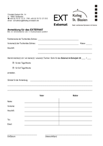 Sie finden hier alle Formulare im PDF-Format, die zur Anmeldung von Internen/Externen (einschließlich Anmeldung zur Klasse 5), von Schülern der Euroklasse und nicht zuletzt auch von Gastschülern benötigt werden. Bitte öffnen Sie die entsprechende Formulare (öffnen sich in einem neuen Fenster) und drucken sie anschließend aus.