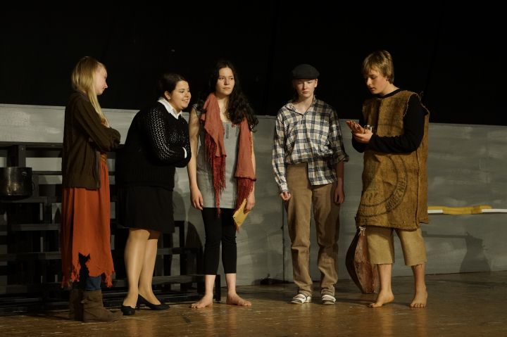 Vor begeisterten Zuschauern wurde am Pfingstsamstagabend das anspruchsvolle Schauspiel „Der gute Mensch von Sezuan“ von Bertolt Brecht aufgeführt. Rund drei Dutzend Kollegianer aus den Klassen 7 bis zur Kursstufe 11 überzeugten schauspielerisch bewundernswert in diesem anrührenden Pfingsttheaterstück. Sie wurden dabei dramaturgisch von der Bühnenmannschaft unterstützt. Am Pfingstsonntag hebt sich um 19:30 Uhr noch einmal der Vorhang in der Pater Alfred-Delp-Halle – herzliche Einladung! Impressionen gibt es in der Bildergalerie und einen Presseartikel finden Sie in der Badischen Zeitung.