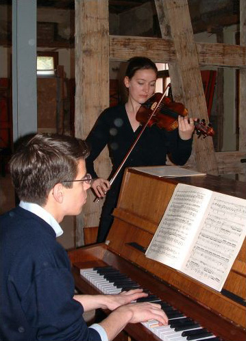 Auf dem Weg zur Errichtung des neuen Musikhaus Bleiche, eigentlich mehr ein Umbau als eine Errichtung, galt es gestern inne zu halten und Richtfest zu halten. Um 14:00 versammelten sich vor allem die Handwerker und Ingenieure der beteiligten Firmen, der Bauleiter und der Architekt mit dem Bauherrn, um dem Richtspruch des Zimmerers, Herrn Kostenbader zu lauschen und zünftig Dank zu sagen für das bisher Erreichte. - Am späteren Nachmittag versammelten sich dann ein repräsentativer Schnitt aus der Kollegsgemeinschaft zum "musikalischen Hock im Rohbau". Das Kollegsorchester spielte, das war sicher eine Premiere, im Stehen (den ersten Satz aus Haydns 104. Sinfonie) und eröffnete damit einen bunten Reigen ganz unterschiedlicher musikalischer Darbietungen. Außerdem bot sich Gelegenheit, das Haus quasi im Rohzustand zu besichtigen. Die Arbeiten gehen planmäßig voran, so dass rund um Ostern sowohl die Musiklehrer der Schule ins Obergeschoss als auch die Musikabteilung des Internats ins Erdgeschoss einziehen kann - Pfingsten wollen wir dann offiziell Eröffnung feiern.