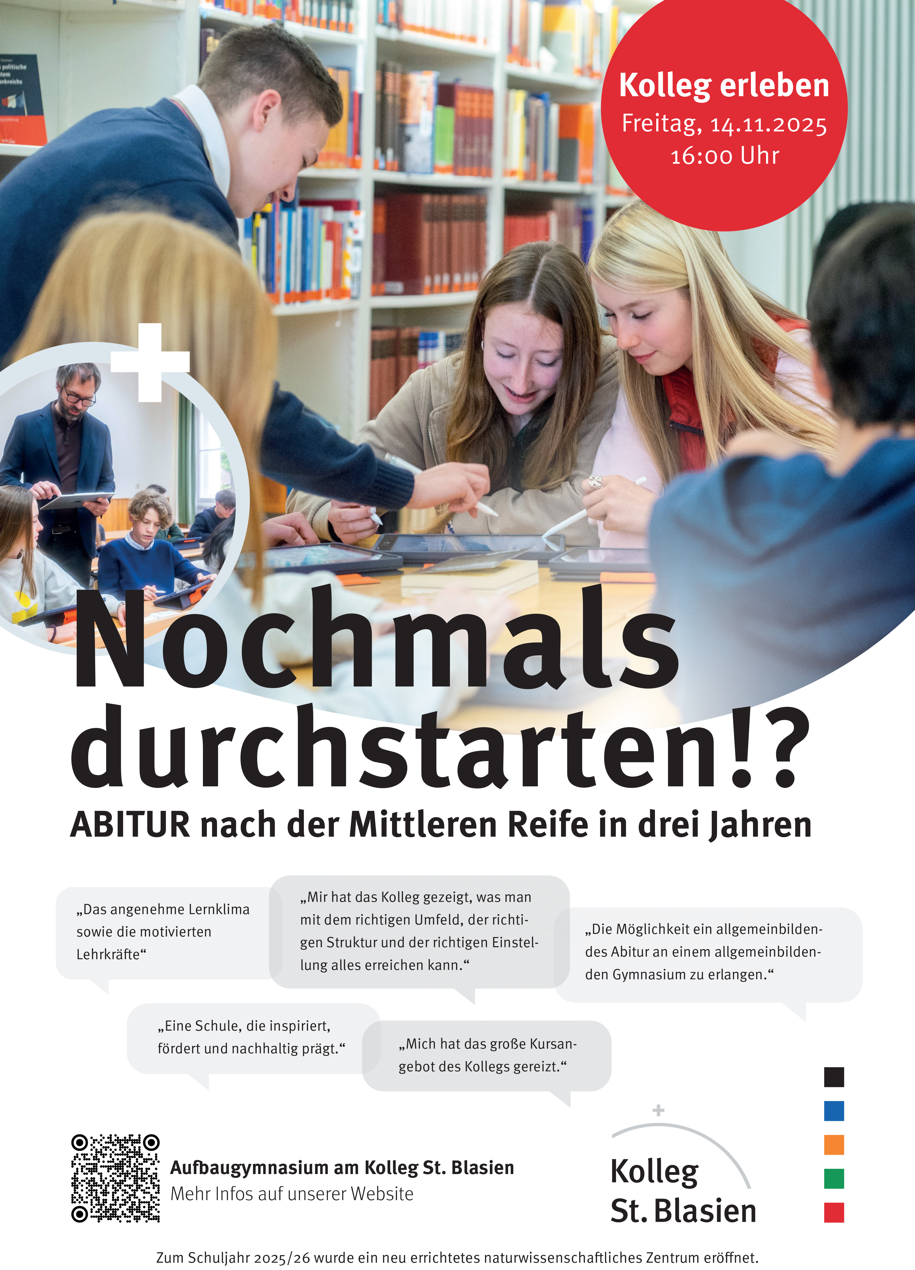 Zu einer Informationsveranstaltung mit Führung durch das Kolleg laden wir ein für Freitag, den 14. November 2025, um 16:00 Uhr in den Habsburger Saal.
