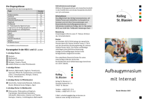 Anmeldungen werden bis zum 27. Februar 2026 im Schulsekretariat entgegengenommen. Das entsprechende Anmeldeformular für das Aufbaugymnasium finden Sie bei den Anmeldeunterlagen.