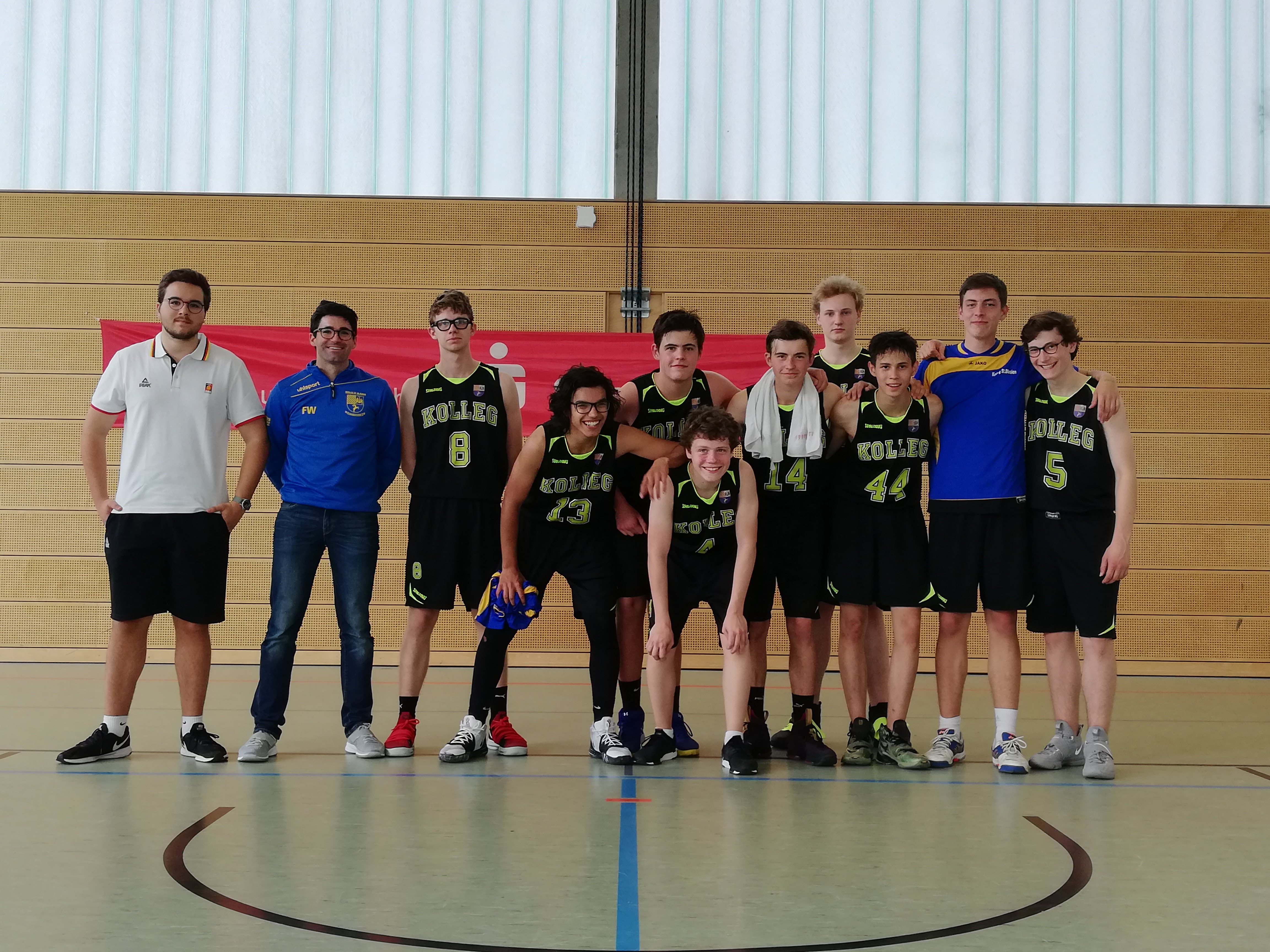 Bei den Bezirksmeisterschaften erreicht das Basketball-Team den 4. Platz. Im Halbfinale gegen PSG Pforzheim spielen die Kollegianer lange auf Augenhöhe, bis der stärkste Distanzschütze des Kolleg vor der Halbzeit umknickte und verletzt ausfiel. "Bei nur 4 x 7min Spielzeit hat heute leider die notwendige Konstanz gefehlt. Zu viele Ballverluste verhalfen den Gegnern zu leichten Punkten. Unserer fehlenden Erfahrung auf diesem Niveau mussten wir heute gegen routiniertere Gegner Tribut zollen." resümiert Coach Florian Warkus. Versöhnlicher Erfolg im Nachgang: Für die Saison 2019/20 wird eine Landesliga eingeführt, für die man sich hiermit qualifiziert hat - herzlichen Glückwunsch!