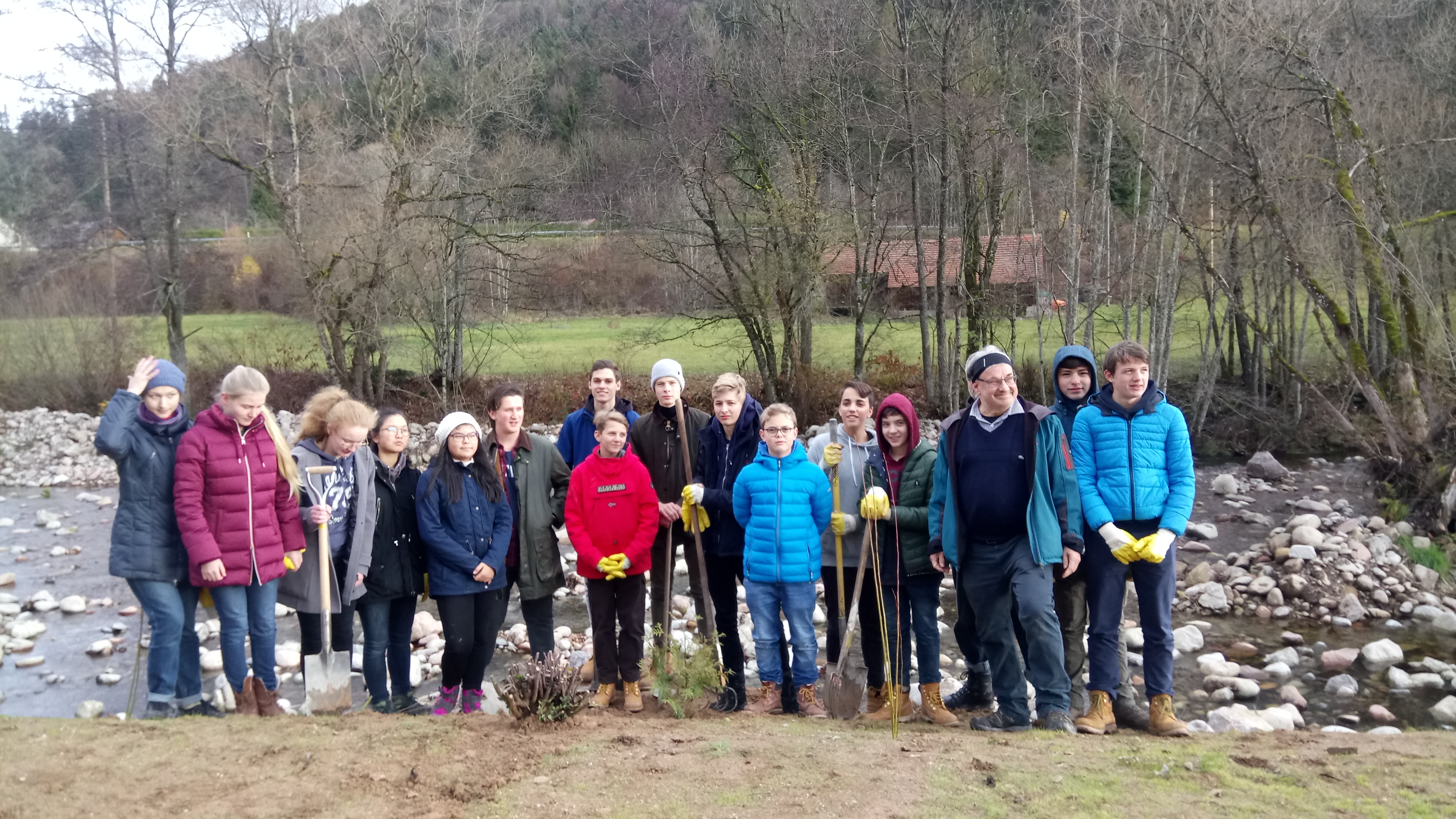 In der vergangenen Woche pflanzten Kollegianer der Klasse 9a unter Leitung der Klassenlehrer Georg Gaugler und Dr. Peter Vollmöller Weiden, Buchen, Ebereschen und Stauden im Albtal. Unter der Anleitung von Vertretern der Stadt St. Blasien, Frank Kaas und Stadtgärtner Benjamin Kohl, lernten die Schülerinnen und Schüler, worauf sie beim Pflanzen der Bäume achten müssen. Die Baumpflanzaktion wurde mit einem anschließendem Grillen an der Albtalhalle in Immeneich abgerundet.