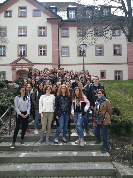Am vergangenen Donnerstag (12. April) waren 28 Schüler aus unserer französischen Partnerschule in Thann zu Besuch am Kolleg. Auf dem Programm standen die Erkundung des Kollegsgebäudes, eine Unterrichtshospitation, das Einüben eines deutsch-französischen Theaterstücks, Sprachanimationen und natürlich das Gespräch und der Austausch mit den Austauschpartnern.