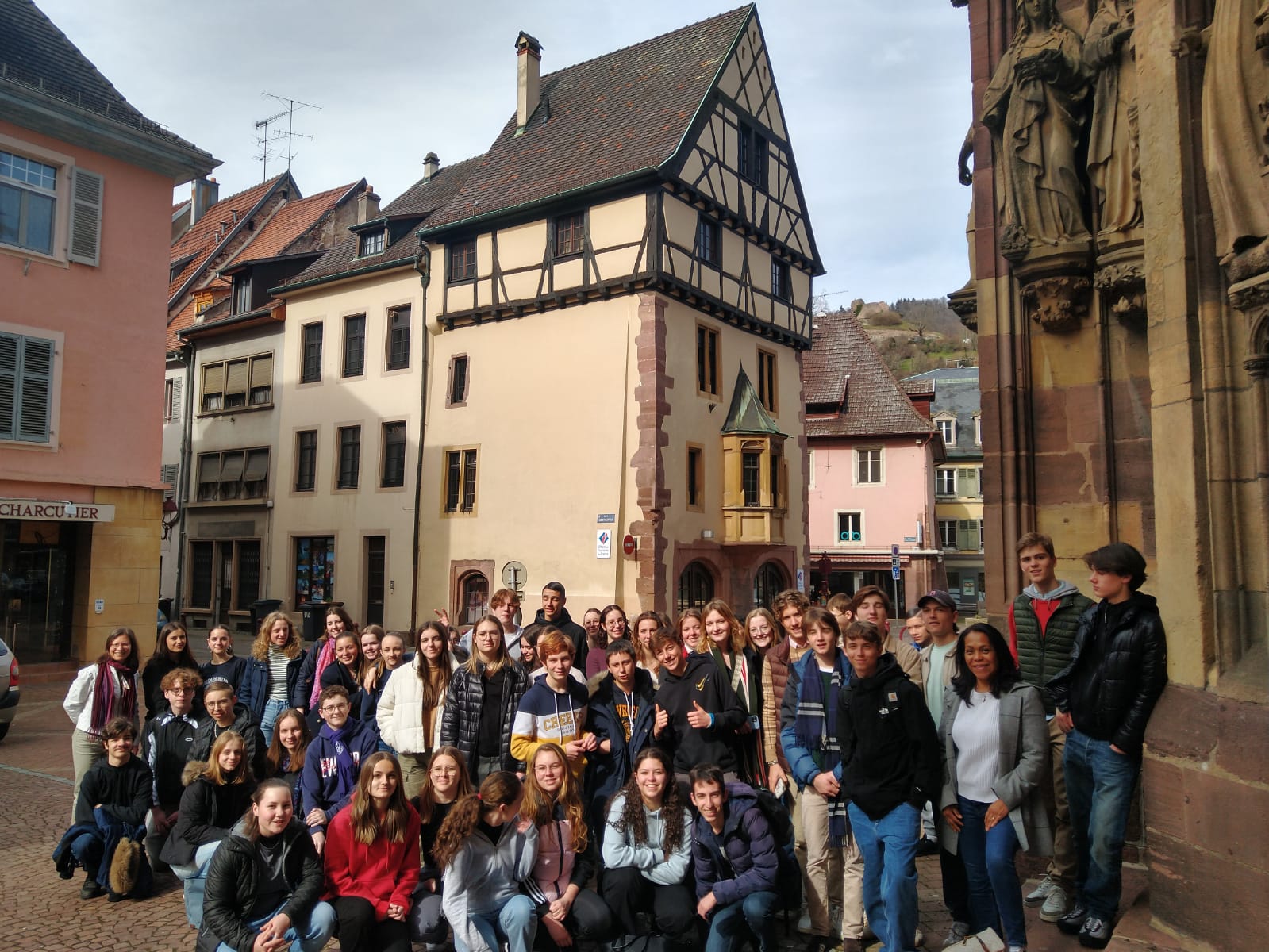 22 Schülerinnen und Schüler der Klassen 10 haben in der vergangenen Woche das Lycée Scheurer-Kestner im elsässischen Thann besucht. Der Eintagesaustausch beinhaltete Sprachanimationsspiele und eine Fotorallye im Herzen der elsässischen Kleinstadt. Am 2. Mai findet der Rückbesuch am Kolleg statt.