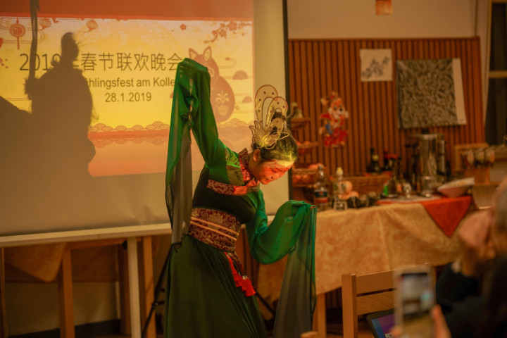 Am Montagabend wurde am Kolleg mit Gästen unserer Partnerschule Tongji Senior High School aus Shanghai das chinesische Neujahrsfest vorgefeiert. Durch den Abend führten Kollegsschüler aus China, es gab vielseitige Darbietungen von Schülern aus China und von Kollegianern sowie eine Vorführung der Peking-Oper und der Kun-Oper. Darüber hinaus wurden Texte und Gedichte auf Chinesisch vorgetragen. Der Schüler Henry Ohl erklärte die Bedeutung und Dauer des chinesischen Neujahrsfestes. Die Kollegsküche hat ein chinesisches Buffet gekocht, welches sehr gelobt wurde - auch von unseren Gästen aus China.