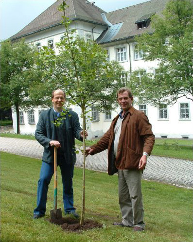 Dank einer Spende des Blumengeschäfts und Gartenbaubetriebs Michel GmbH in St. Blasien konnte am Dienstag ein achtjähriger Ginkgobaum auf dem Kollegsgelände gepflanzt werden. Gemeinsam pflanzten Kollegsdirektor Pater Siebner SJ und Herr Wijnand Tijdink vom Blumengeschäft Michel zwischen dem Mädcheninternat und Bagnatohaus den Zierbaum an dem neuen Standort an. Pater Siebner SJ zeigte sich sehr erfreut über die Baumspende. Der Gingkobaum stammt ursprünglich aus Ostasien, wo er auch als Tempelbaum kultiviert wird. Er wurde von holländischen Seefahrern aus Japan nach Europa gebracht und wird hier seit 1730 n.Chr. als Zierbaum gepflanzt.