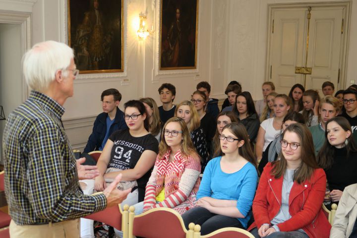 Als Zeitzeuge des DDR-Unrechtsstaates berichtete Hartwig Kluge am Donnerstagvormittag in einzelnen Geschichtskursen des Kollegs über seine Erfahrungen mit der sozialistischen Diktatur und seinen Fluchtversuch 1968 über Ungarn nach Jugoslawien in die Bundesrepublik. Wegen "Republikflucht" wurde er nach seiner Festnahme zu einem Jahr und vier Monaten Haft verurteilt. Kluge saß dann als politischer Gefangener in einem der bekanntesten Stasi-Gefängnisse ein. Im Anschluss an seinen spannenden Bericht hatten die Kollegianer der Kursstufen 11 und 12 die Gelegenheit, Fragen an den Referenten zu stellen.
