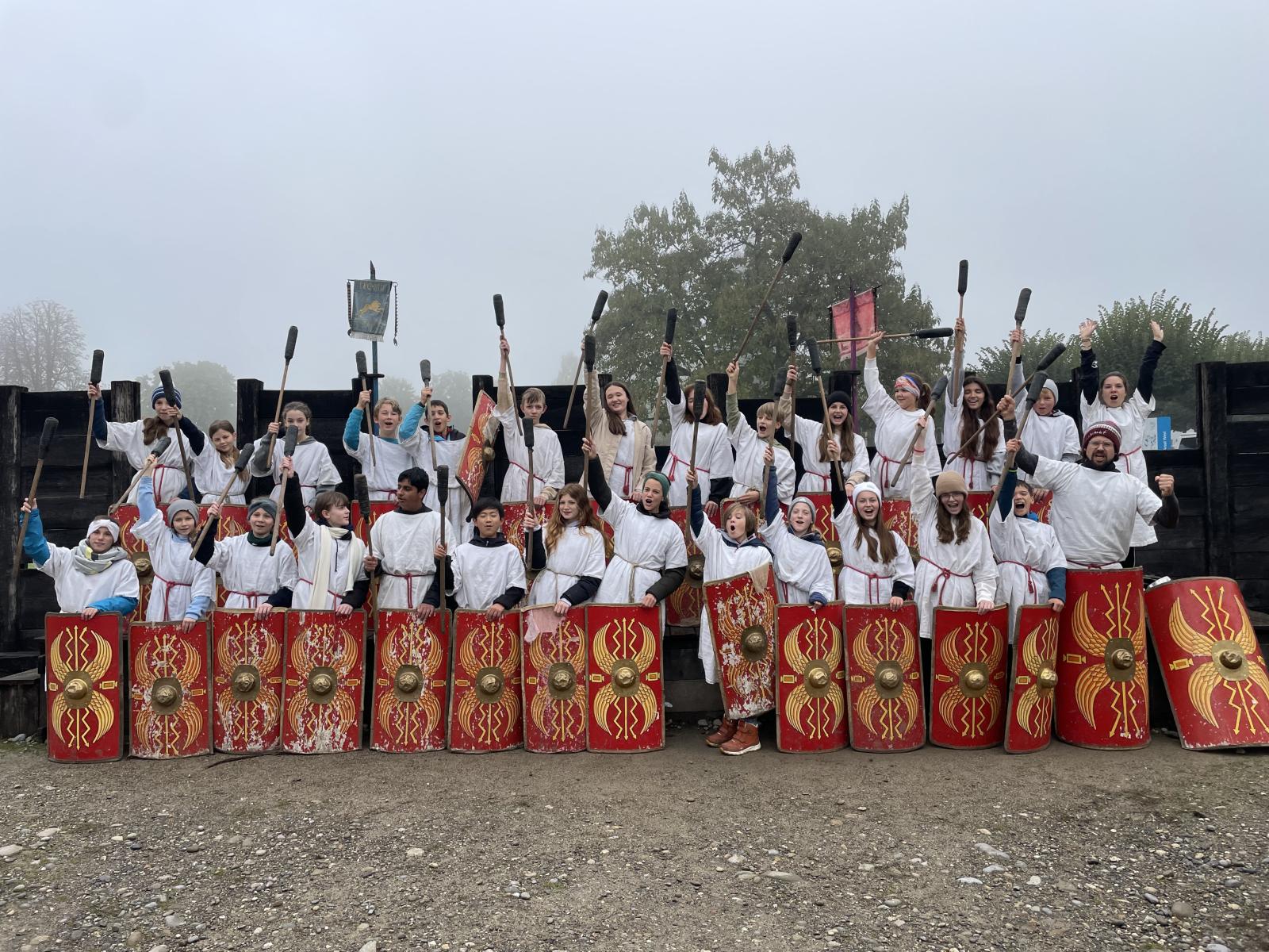 Anfang Oktober sammelten die 7. Klassen auf ihren Klassenausflügen im Römerlager Vindonissa (Schweiz) aufregende Erfahrungen: Den Mörder des Centurio finden, marschieren und kämpfen wie ein Legionär, römisch kochen über dem Feuer, schlafen in Heubetten,… Besondere Momente, die in Erinnerung bleiben!