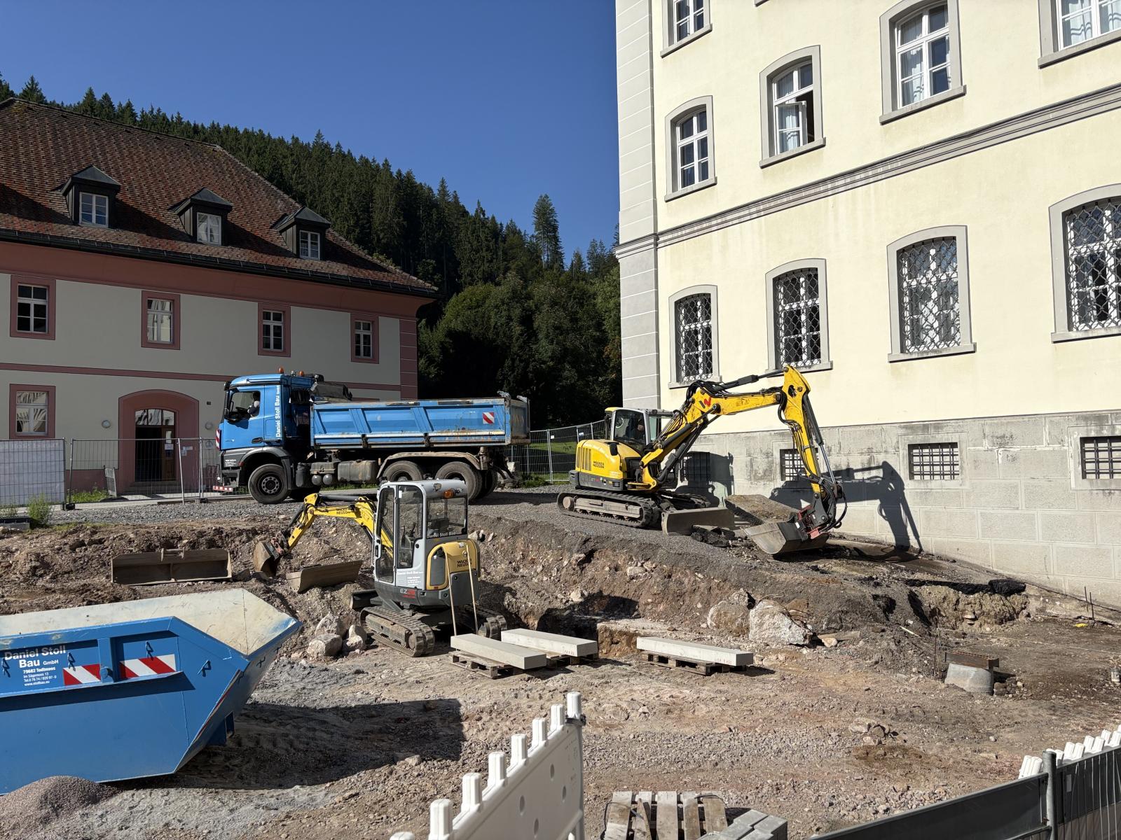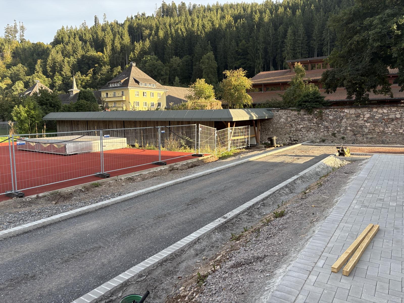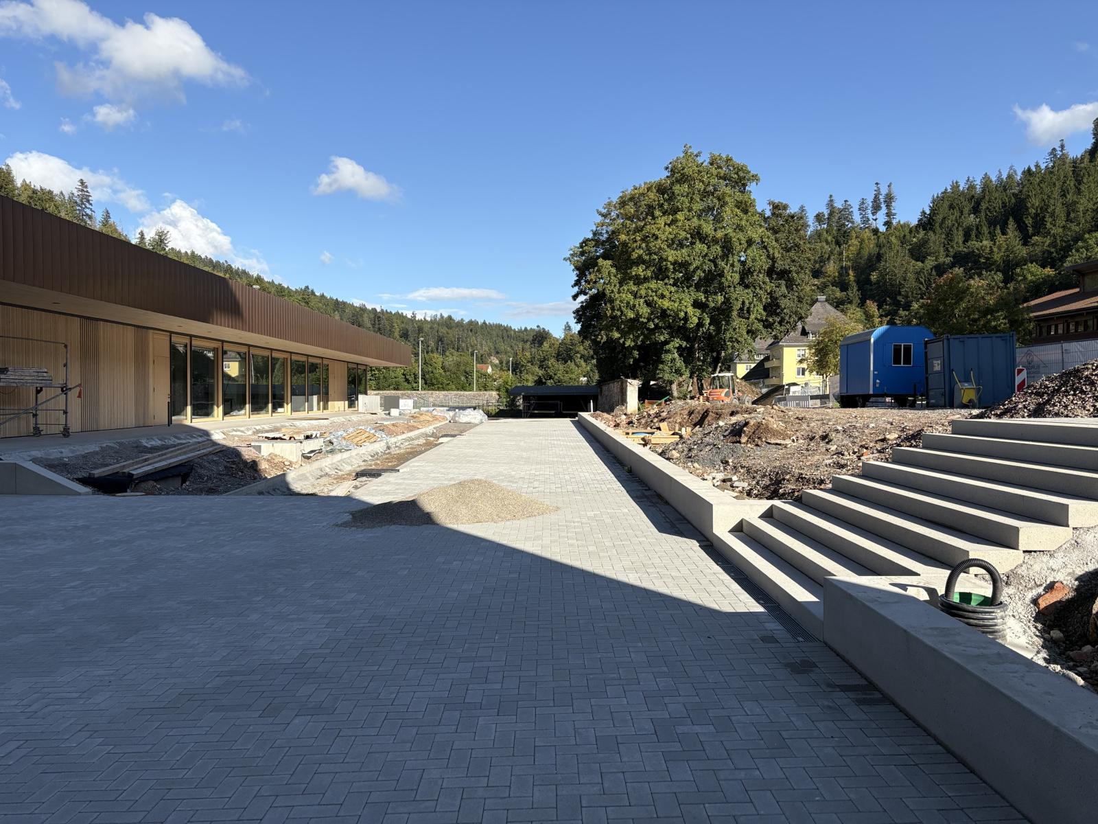 Die Firma Schmitt Bau aus Höchenschwand hat zudem eine Überdachung zwischen Kolleg und NaWi-Gebäude betoniert. Die neu gestalteten Bereiche laden zum Verweilen ein, bieten Raum für Fahrradständer und Pausenbereiche und tragen dazu bei, dass der Campus als zusammenhängendes Ganzes erlebbar wird. Auch die Zufahrt über den Tuskulumweg wird aktuell umfassend neugestaltet.