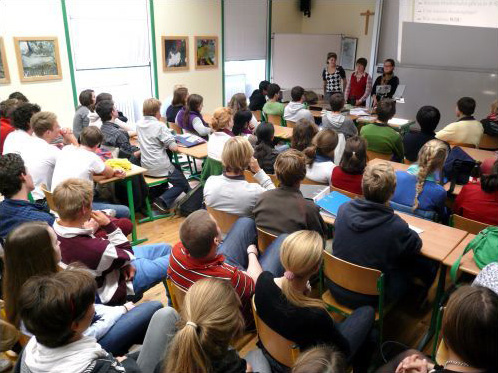 Drei Studienbotschafter vom baden-württembergischen Wissenschaftsministerium waren am Dienstagnachmittag für eine Info-Veranstaltung zu Gast am Kolleg, um Schülerinnen und Schüler bei der Studien- und Berufswahl zu unterstützen. Sie vermittelten auf ansprechende Weise zentrale Basisinformationen. Rund 100 Kollegianer verfolgten gespannt den Auftritt der jungen Studienbotschafter.