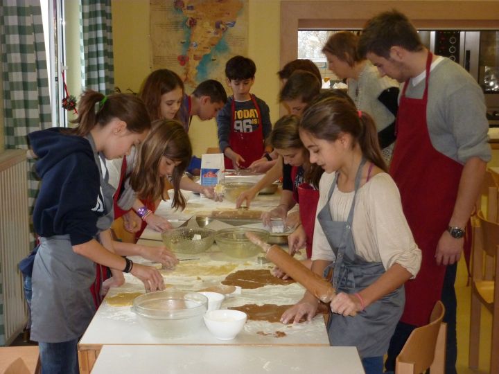 29 Schüler der Klassen 7a-c verbringen derzeit 4 Tage im elsässischen Niederbronn-les-Bains, um sich dort in der Albert-Schweitzer-Begegnungsstätte mit gleichaltrigen französischen Schülern und Schülerinnen aus Aix-en-Provence zu treffen. In zweisprachig zusammengesetzten Gruppen bereiten sich die Kinder auf Weihnachten vor: Plätzchen backen, Weihnachtstheater und Basteleien stehen unter anderem auf dem Programm. Auch regionale Spezialitäten, wie den Flammkuchen, konnte die Gruppe bei einem gemeinsamen Restaurantbesuch probieren. Da die Begegnungsstätte vom Volksbund Deutsche Kriegsgräberfürsorge unterhalten wird, besuchten die Kinder unter fachkundiger Führung den angrenzenden Soldatenfriedhof. Den Abschluss der Drittortbegegnung bildet ein Besuch des Straßburger Weihnachtsmarkts.