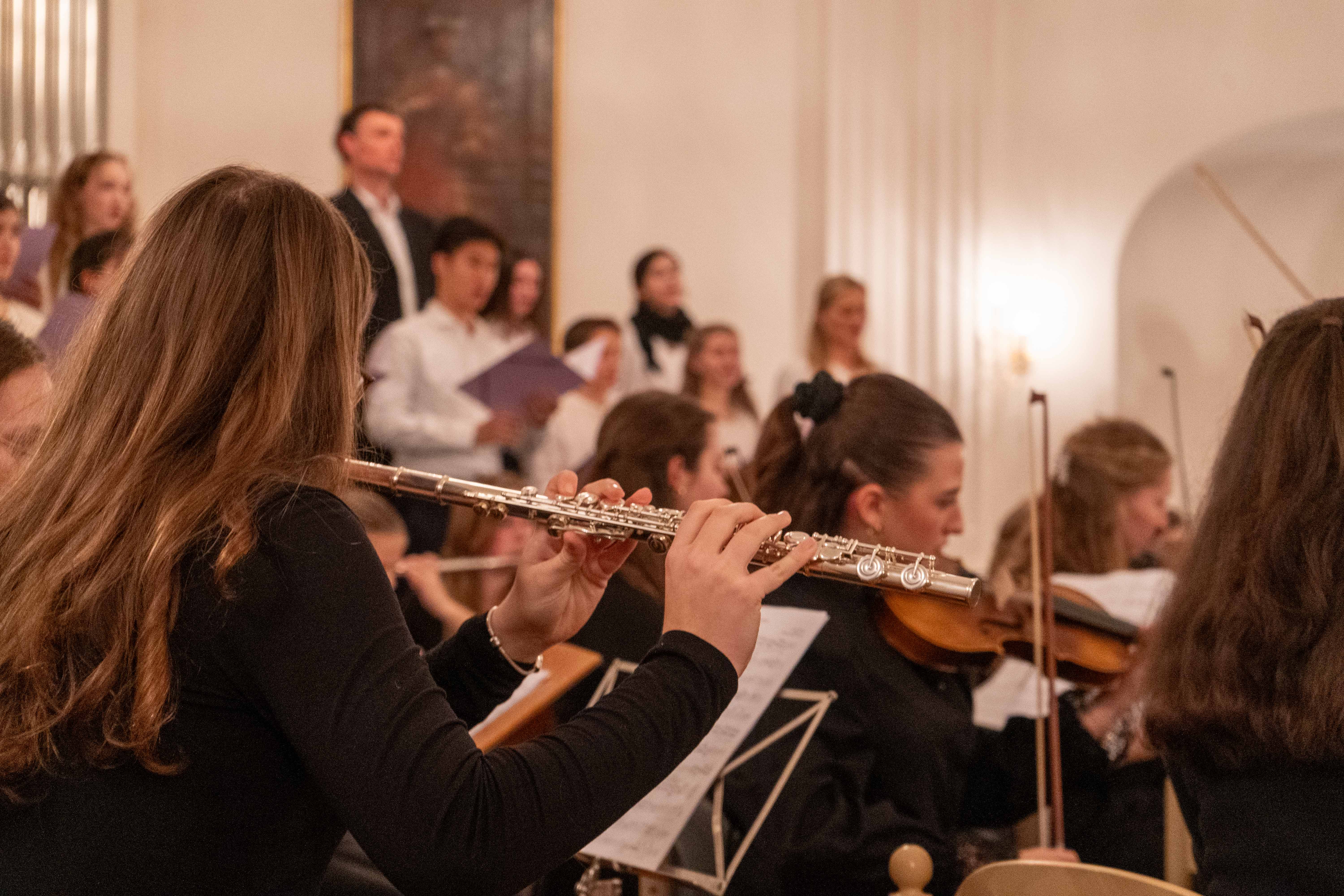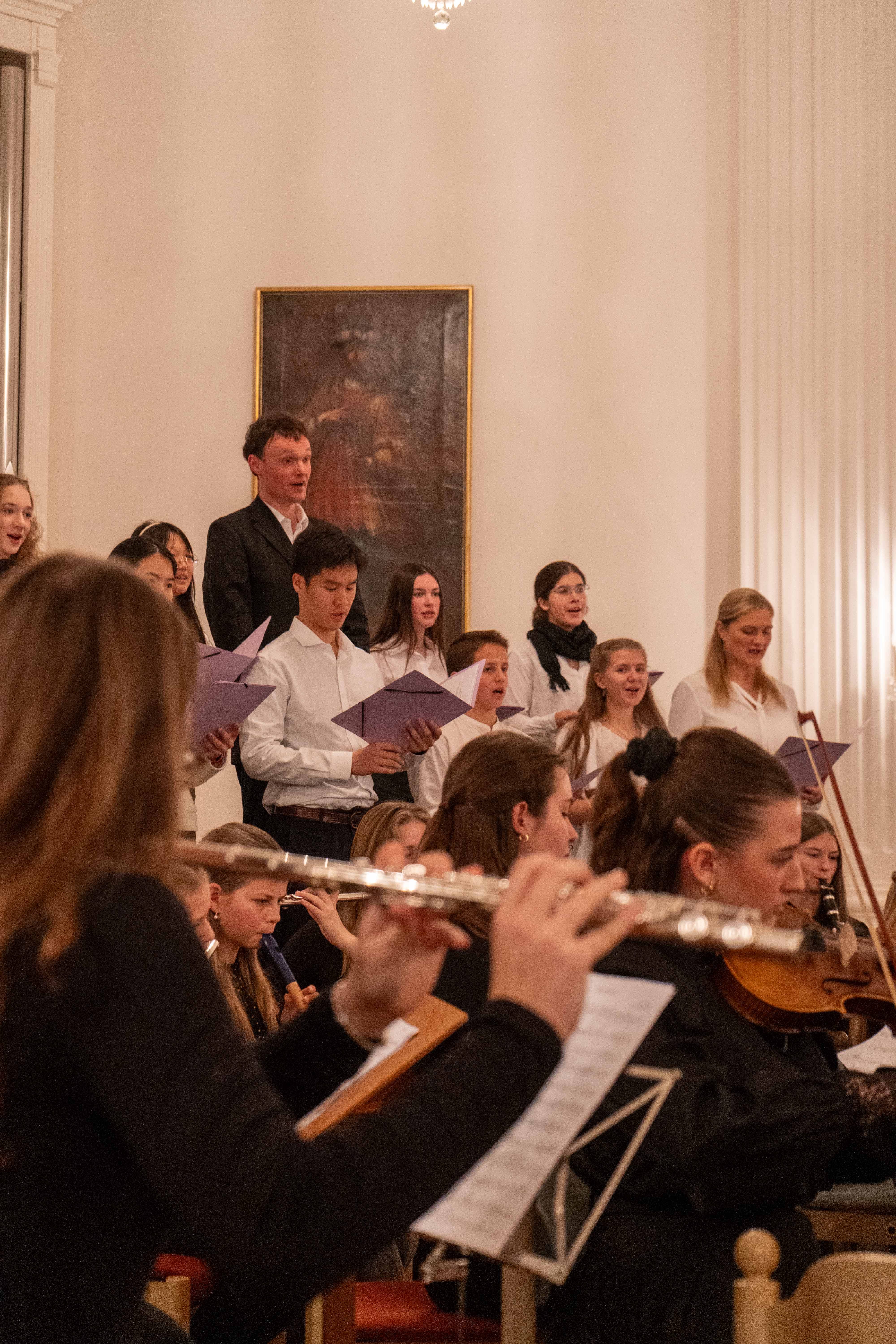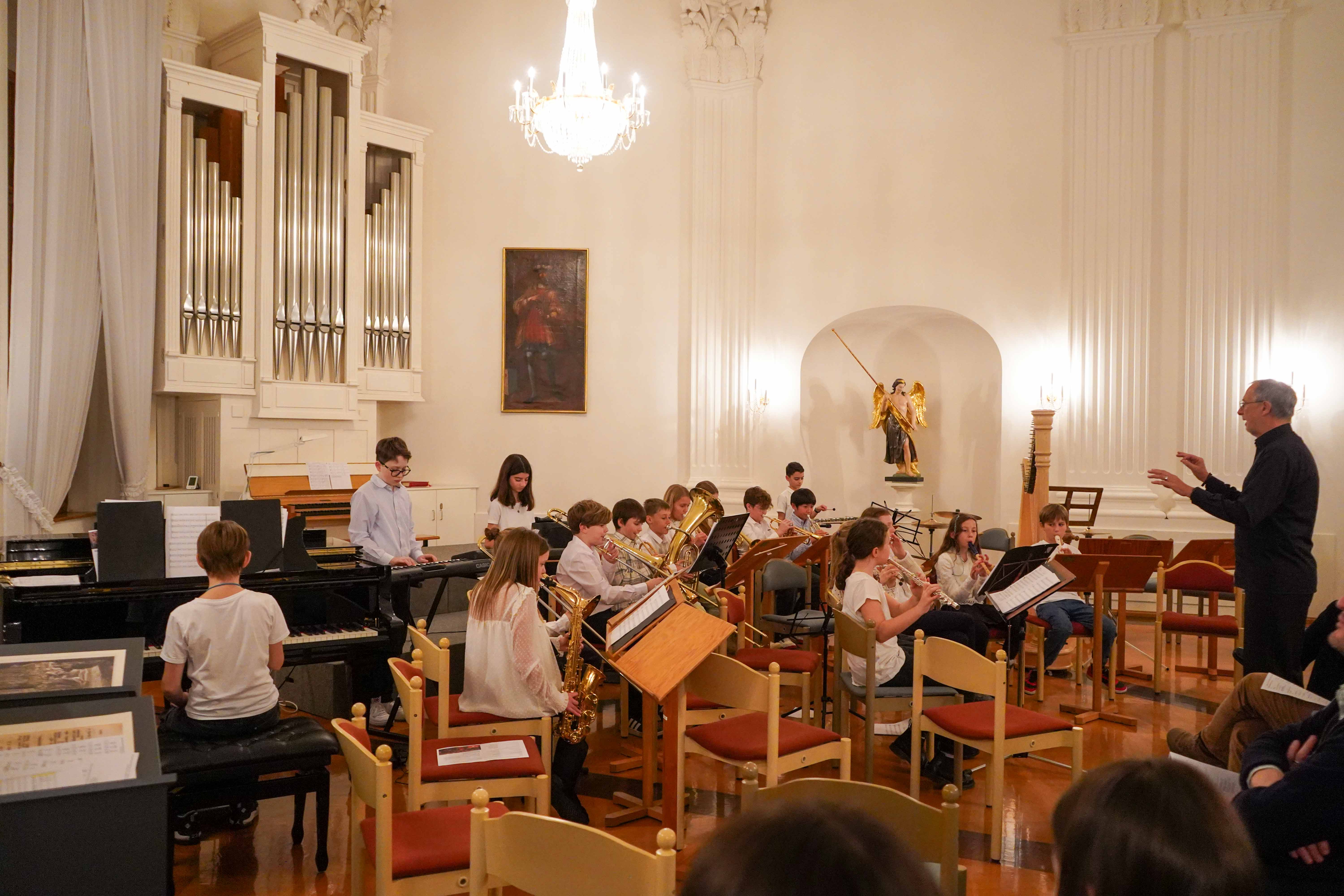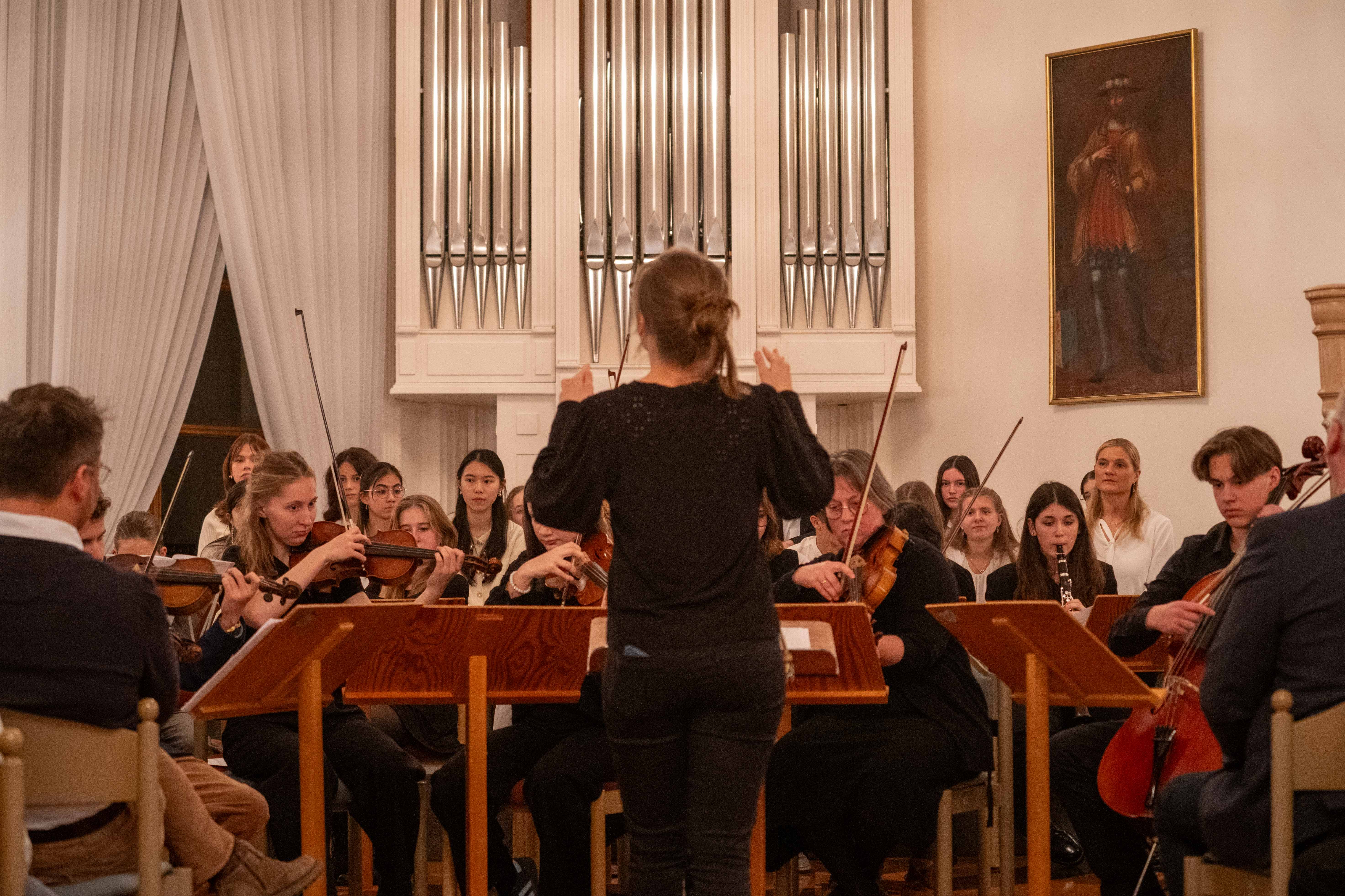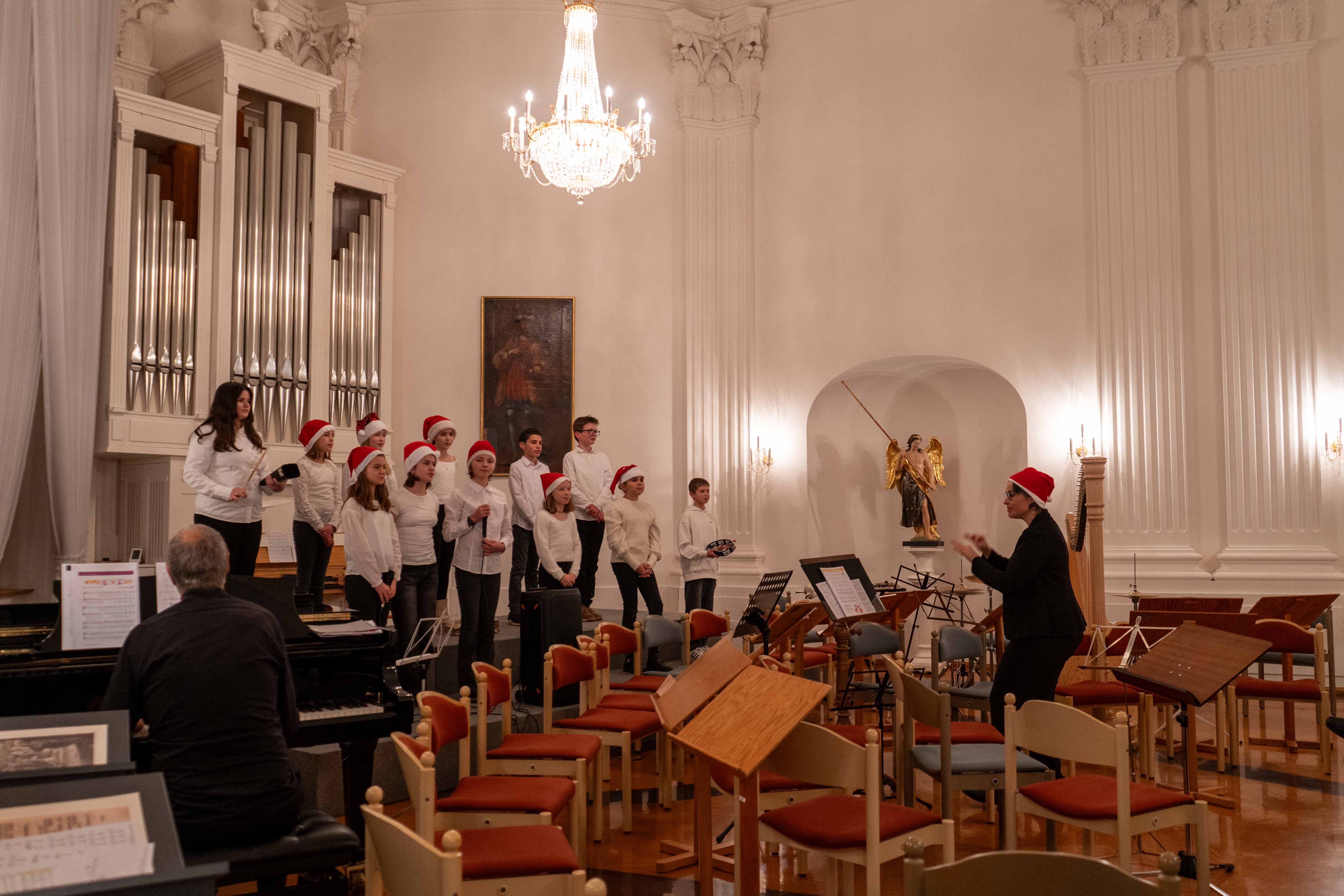 Neben klassischen Stücken wie „Intrada“ von Johann Pezelius zur Eröffnung und der „Farandole“ aus der Arlesienne-Suite Nr. 2 von Georges Bizet zum Schluss, erklangen bekannte Weihnachtslieder wie „Silent Night“ und „Hark the Herald Angels Sing“. Ein besonderer Höhepunkt war das Finale mit „White Christmas“, das Publikum und Mitwirkende gleichermaßen begeisterte. Den festlichen Abschluss bildete das gemeinsame Adventslied "Tochter Zion" mit Orgelbegleitung, bei dem auch das Publikum in den Gesang einstimmte und so für einen sehr schönen Schlusspunkt sorgte. Dieses Stück finden Sie als Aufzeichnung auf unserem YouTube-Kanal.