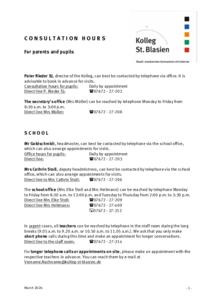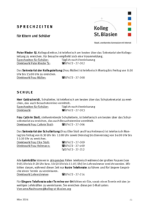 Sprechzeiten und Kontakte