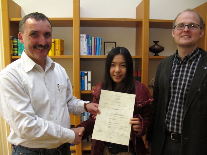 Beim diesjährigen Tag der Mathematik an der Universität Konstanz hat Weili Jiang (KS 13) den zweiten Platz im Einzelwettbewerb Mathematik erreicht. Insgesamt haben sich 183 Schülerinnen und Schüler aus 27 Schulen am Wettbewerb beteiligt. Die 17-jährige Schülerin aus Jiangyin (China) ist seit 2008 am Kolleg St. Blasien. - Wir gratulieren Weili Jiang zu diesem ausgezeichneten Erfolg!