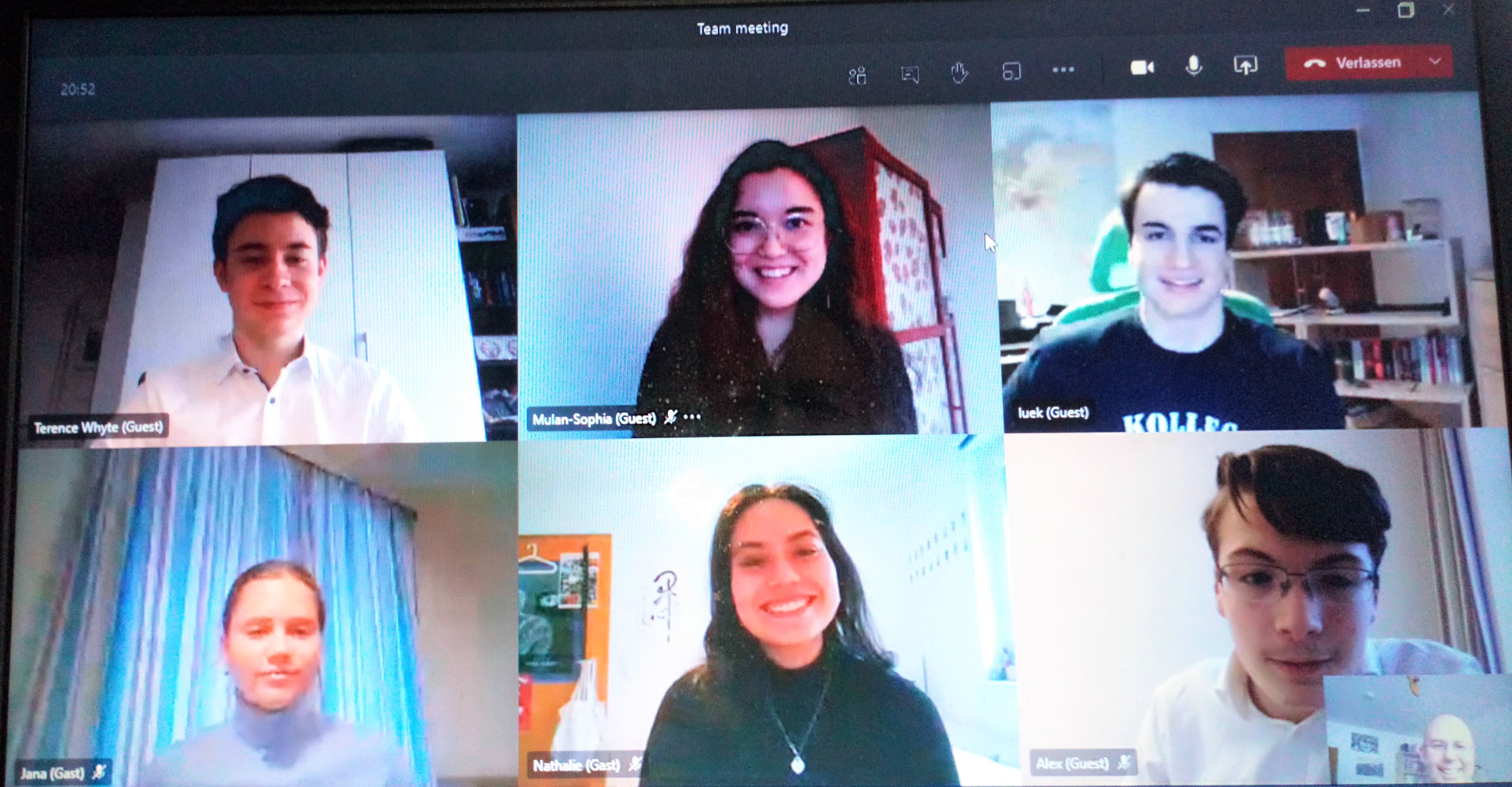 Ende Januar hat unsere Kollegsmannschaft unter der Leitung von Herrn O’Reilly abermals erfolgreich in der „Debating Senior League“ teilgenommen. Die Vorbereitung und die Durchführung des Wettbewerbs in der 3. und 4. Runde erfolgte online. In der ersten „Impromptu-Debatte“ argumentierten Luekar Herke, Terence Whyte und Alexander Hodson im „Team Proposition“, dass Gewerkschaften sich eher für eine Reduzierung der Arbeitszeit als auf eine Lohnerhöhung positionieren. In der zweiten Debatte verfolgten Jana Hottmann, Nathalie Hagelstein und Mulan-Sophia Zheng im „Team Opposition“ den Standpunkt, dass dem Erfolg von „true crime entertainment“ entgegengetreten werden muss.