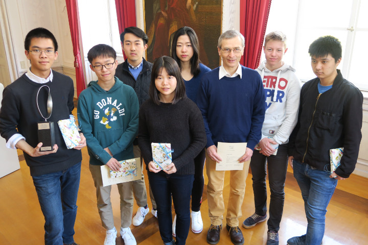 Am 3. März haben Kollegianerinnen und Kollegianer den "Tag der Mathematik 2018" an der Universität Konstanz besucht. An diesem anspruchsvollen Wettbewerb waren diesmal insgesamt 180 Schülerinnen und Schüler aufgeteilt in 40 Teams von Schulen aus Baden-Württemberg, der Schweiz und Österreich beteiligt. Herr Linnenbach hat unsere beiden Teams in bewährter Weise vorbereitet und sie nach Konstanz begleitet. Beim Gruppenwettbewerb hat unser Team 1 den herausragenden 1. Platz erzielt und im Einzelwettbewerb hat Jiaqi Liang mit einer hervorragenden Leistung den 2. Preis erreicht. Bereits zum fünften Mal ging der begehrte Wanderpokal (u.a. nach 2013 und 2017) ans Kolleg, damit dürfen wir den Pokal mit dem Möbius-Band behalten! Herzlichen Glückwunsch an unsere sehr guten Mathematiker!