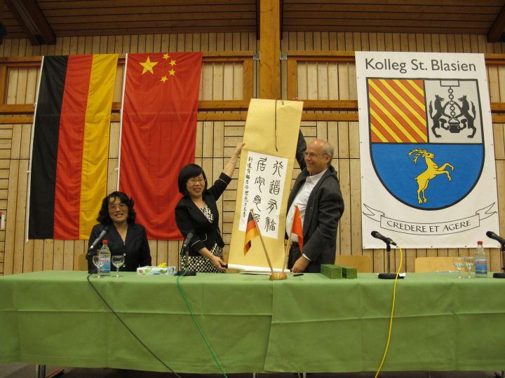 Am Pfingstmontag wurde nach dem ökumenischen Gottesdienst die Partnerschaftvereinbarung mit der Oberschule Tongji in Shanghai erneuert. Im Jahr 2004 wurde diese besondere Kooperation erstmals vereinbart. Seitdem haben die beiden Partnerschulen im Bereich der gegenseitigen Besuche, der Lehrerfortbildung, der kulturellen Begegnungen und vor allem in der persönlichen Begegnung von Schülern und Lehrern (Schüleraustausch) erfolgreich zusammengearbeitet. Um die Partnerschaft zwischen den beiden Schulen auszubauen und zu vertiefen, wurde die Kooperationsvereinbarung am Pfingstmontag feierlich erneuert.