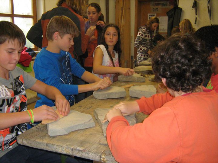 Am vergangenen Mittwoch (22.10.) unternahmen die Klassen 6b und 6c zusammen mit Frau Bilharz, Frau Gregori, Frau Schönfeld und Frau Schwenkreis eine Exkursion an den Bodensee. Im Rahmen des Geschichtsunterrichts besichtigten die Schülerinnen und Schüler steinzeitliche Pfahlbauten und bekamen einen Einblick in den Alltag der Jungsteinzeit. Anschließend konnten die Schülerinnen und Schüler selbst erfahren, was es heißt, mit steinzeitlichen Mitteln Schmuck, Kämme, Schaber mit Feuersteinklinge oder Schwirrhölzer herzustellen.