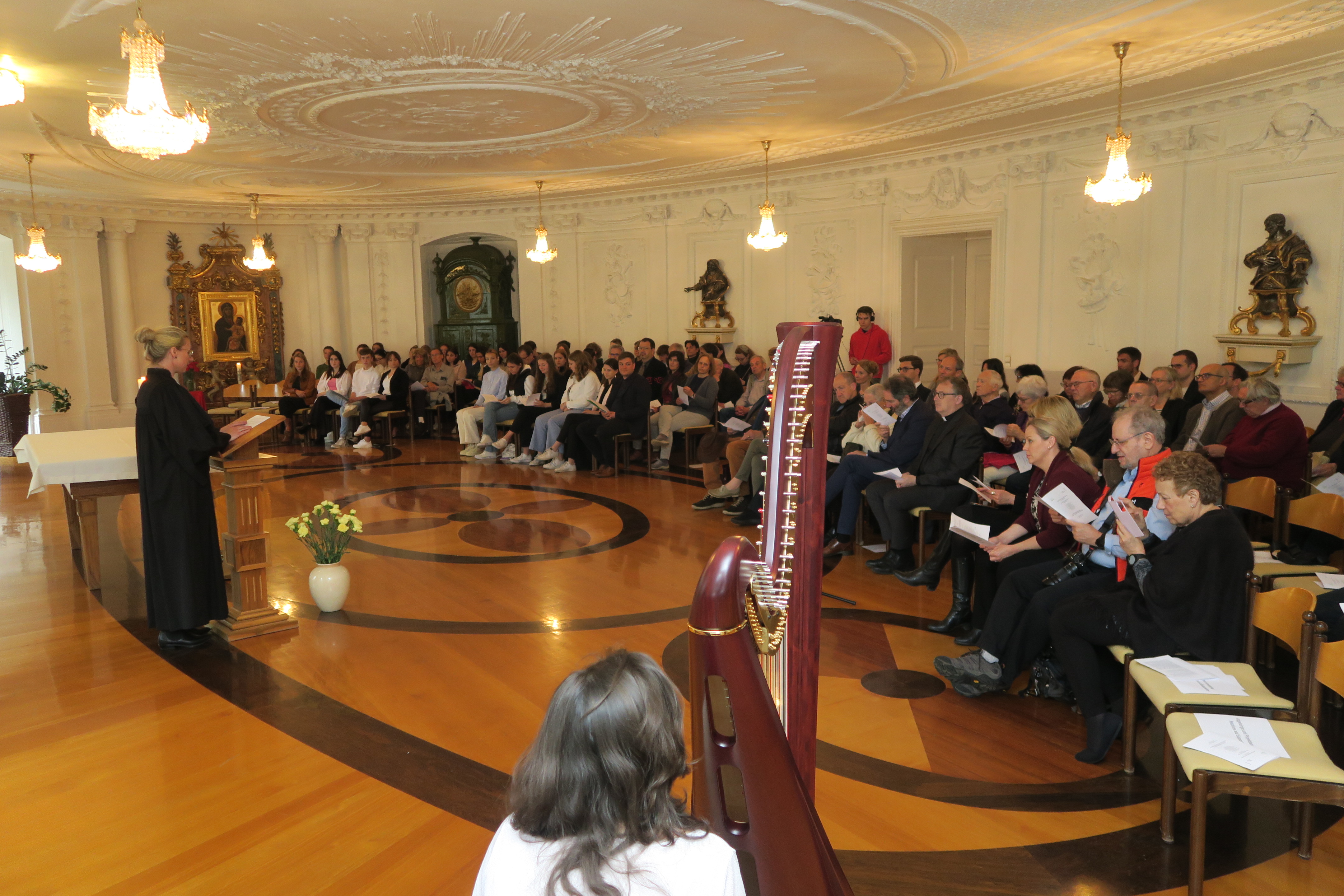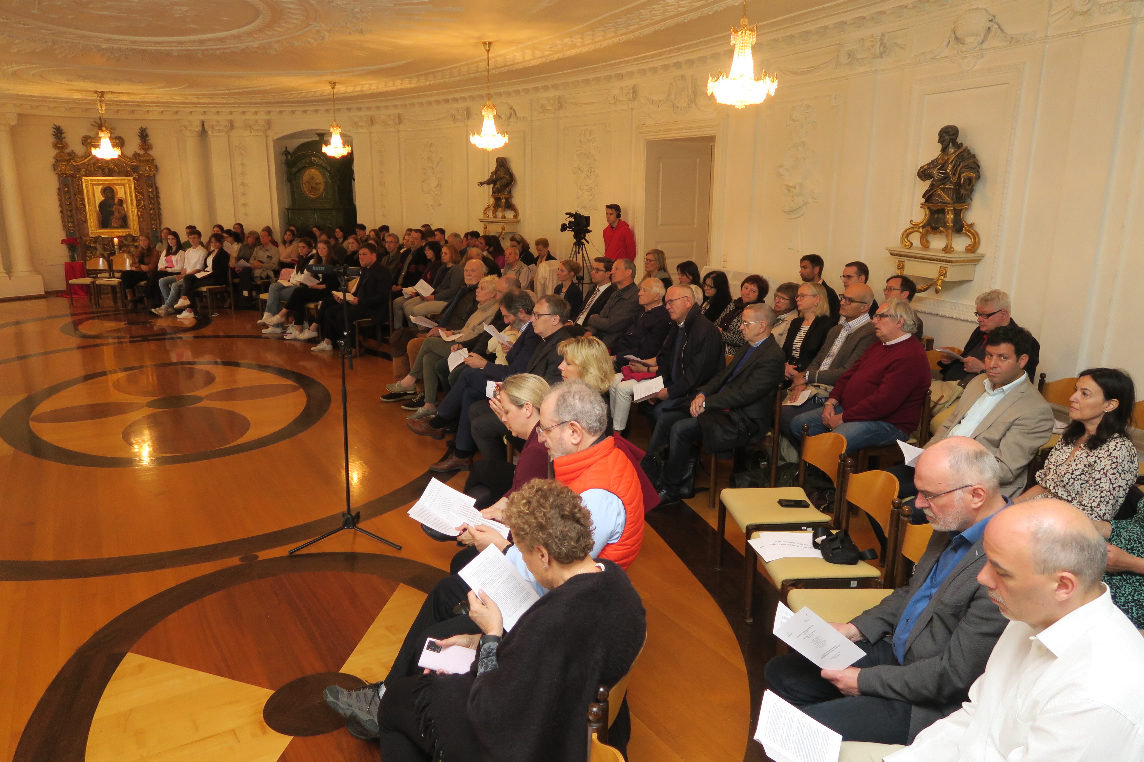 Am Vorabend kamen bei einem Empfang Angehörige der Vertriebenen, Paten, Vertreter von Kolleg und Stadt zusammen. Sie alle würdigen das große Engagement der Schüler für das Projekt Stolpersteine.