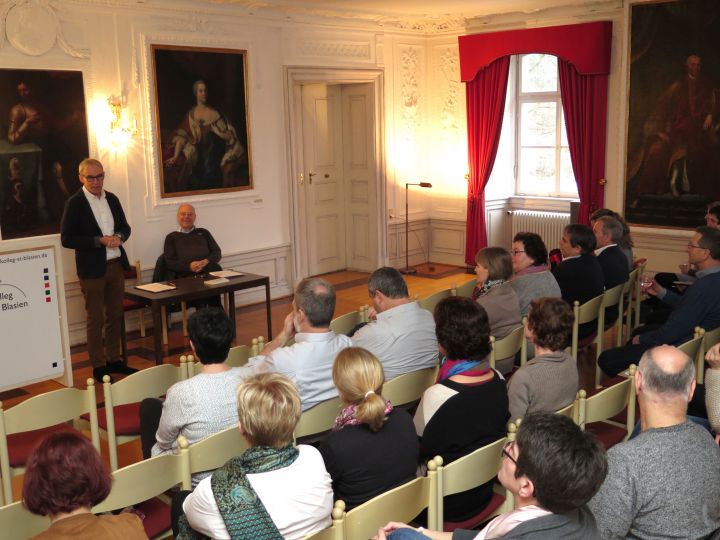 Am vergangenen Montag, dem 20. Februar, tagten die Führungskräfte des Caritasverbandes Hochrhein im Habsburger Saal des Kollegs. Nach der Begrüßung der zahlreichen Mitarbeiterinnen und Mitarbeiter durch den Caritas-Personalentwickler Thomas Schneider sprach Kollegsdirektor P. Mertes SJ über das Thema Führung. Im Mittelpunkt standen die persönlichen Erfahrungen aus seiner langjährigen Leitungspraxis. Im Anschluss an das Impulsreferat fand im Plenum ein Gedankenaustausch und eine Vertiefung statt.