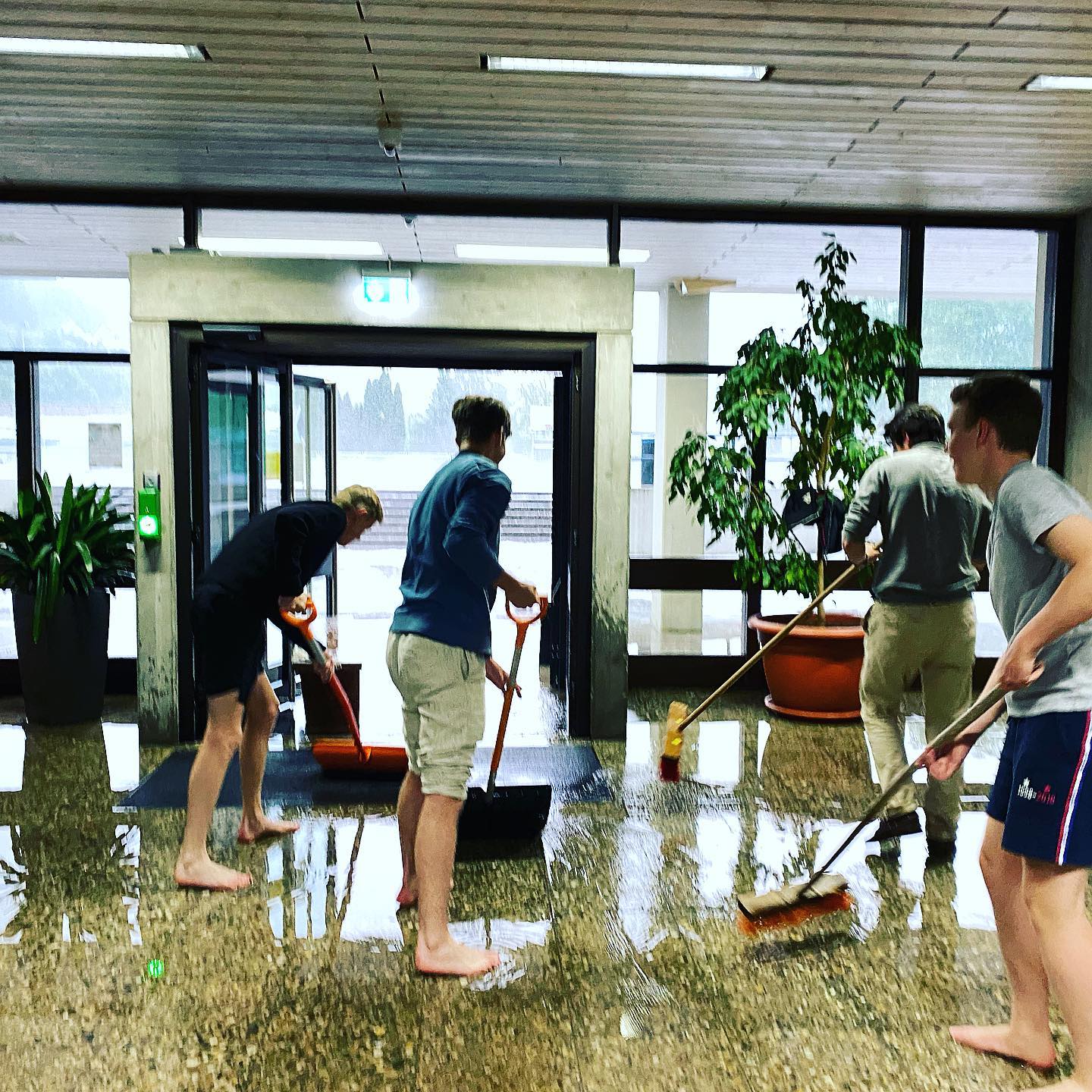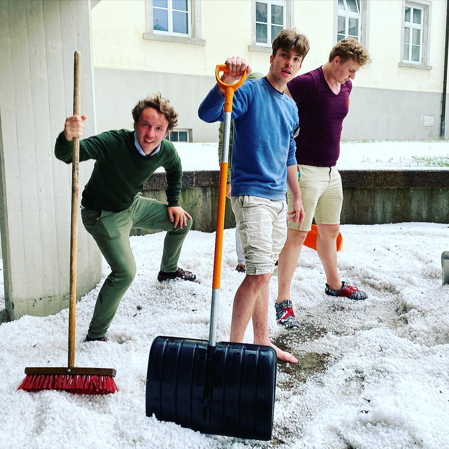 Am Montagabend (21. Juni) ist eine Unwetterfront mit Gewitter über Teile von Südbaden gezogen. Besonders betroffen war auch St. Blasien. Dabei kam es zu Überschwemmungen durch heftigen Regen, zahlreiche Keller liefen voll Wasser. Besonders betroffen am Kolleg waren die Neubaupforte und der Kellerbereich beim Stabpuppentheater. In St. Blasien hagelte es kräftig, die Hagelkörner häuften sich mehrere Zentimeter hoch. Im Schwarzwald waren die Straßen nach starkem Hagel zeitweise weiß wie im Winter. Starkregen und Hagel haben Schäden an öffentlichen und privaten Gebäuden in St. Blasien verursacht. Das Kolleg ist glimpflich davongekommen. Ein herzliches Dankeschön an alle Helferinnen und Helfer, das Team unserer Haustechnik und Hauswirtschaft sowie die Feuerwehr St. Blasien. Die Aufräumarbeiten werden heute fortgesetzt.