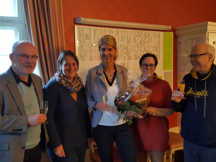 Frau Mittermaier hatte am Mittwoch (21. November) ihren letzten Arbeitstag am Kolleg. In der großen Pause verabschiedete sie sich von allen, die mit ihr zusammengearbeitet haben. Seit 2013 arbeitete Nathalie Mittermaier im Schulsekretariat. Eltern, Schüler und Lehrer schätzten die Freundlichkeit und Herzlichkeit, mit der sie im Sekretariat empfangen wurden. Hinzu kamen ihre Verlässlichkeit sowie ihre fast unendliche Geduld. - Herzlichen Dank und alles Gute, Frau Mittermaier!