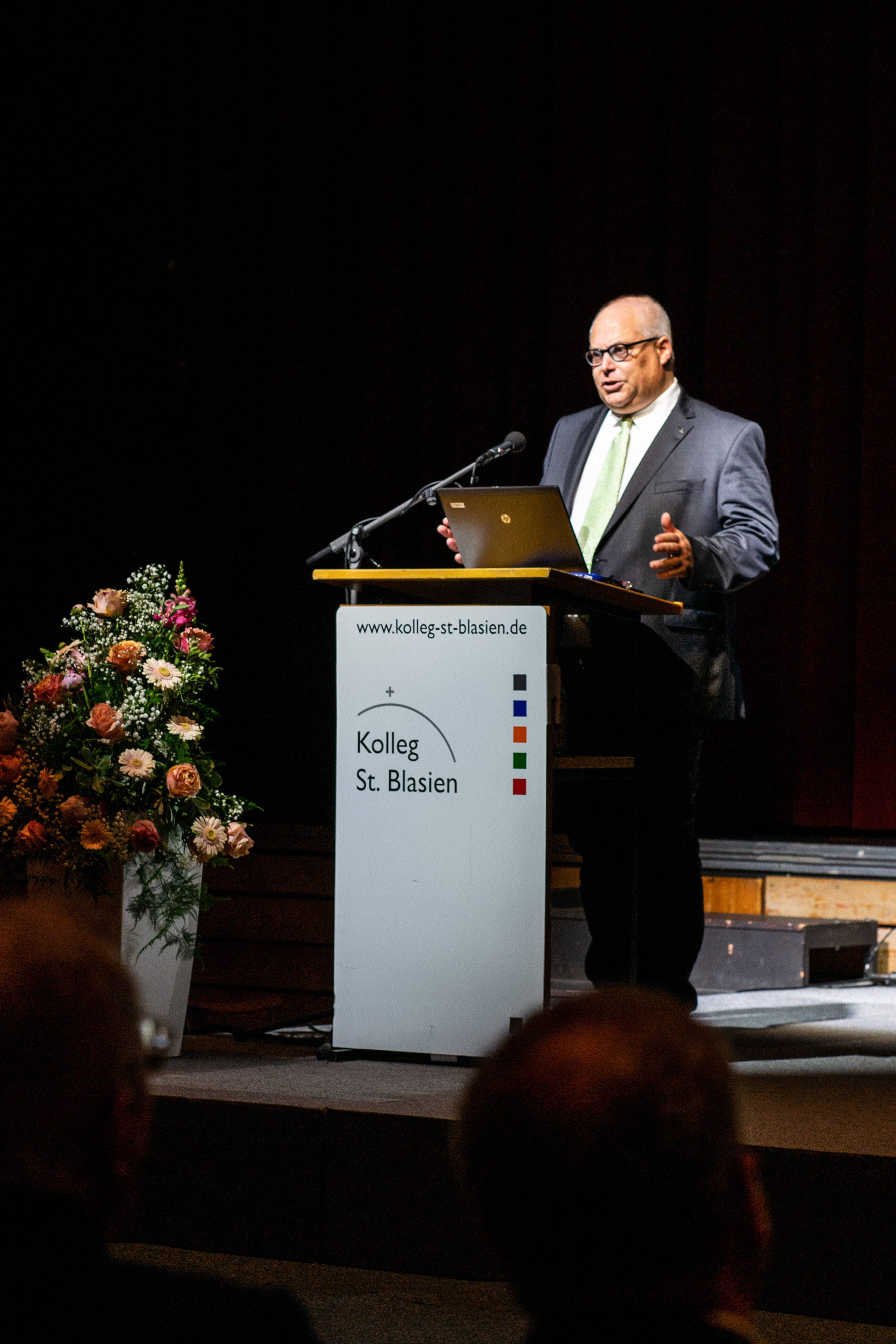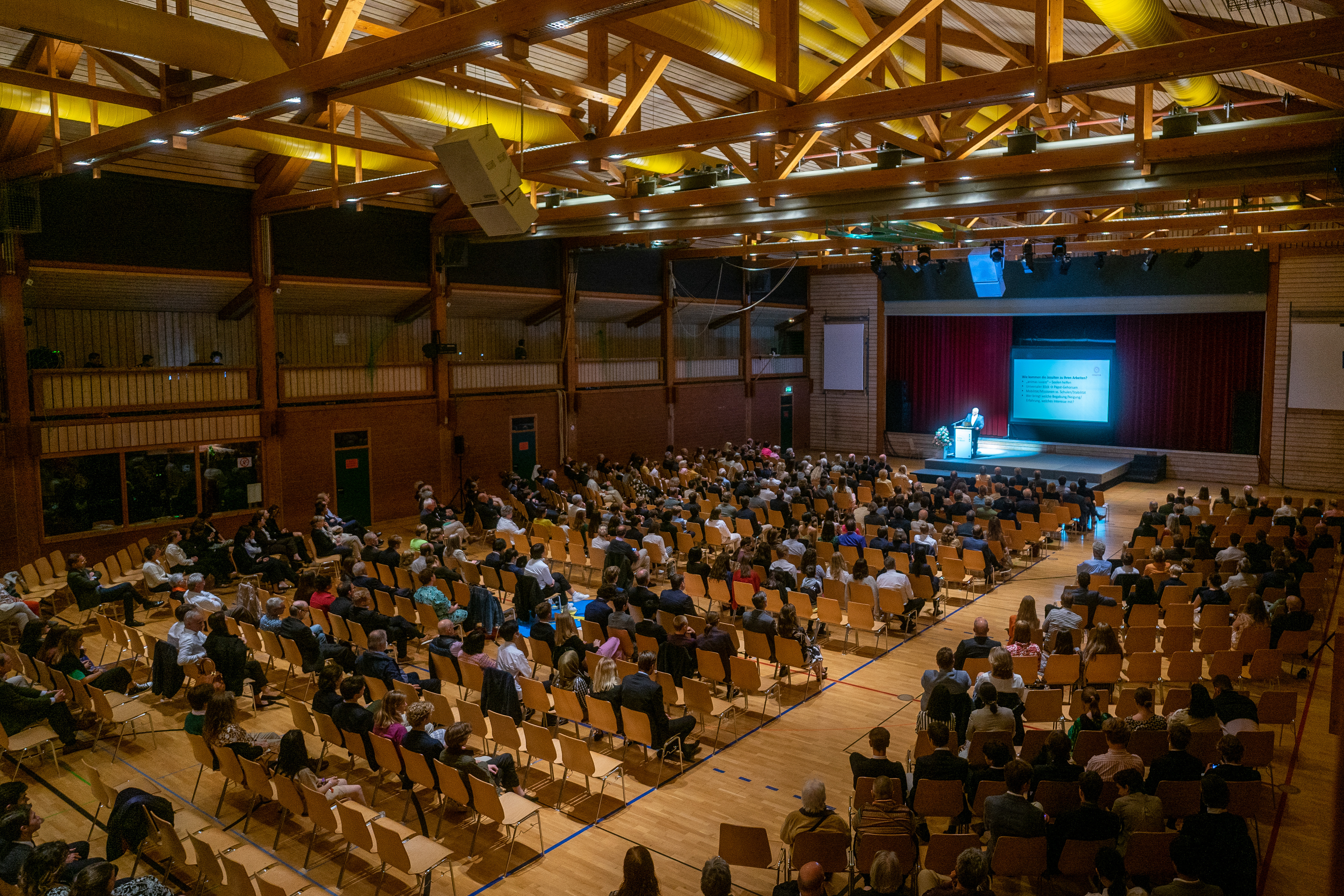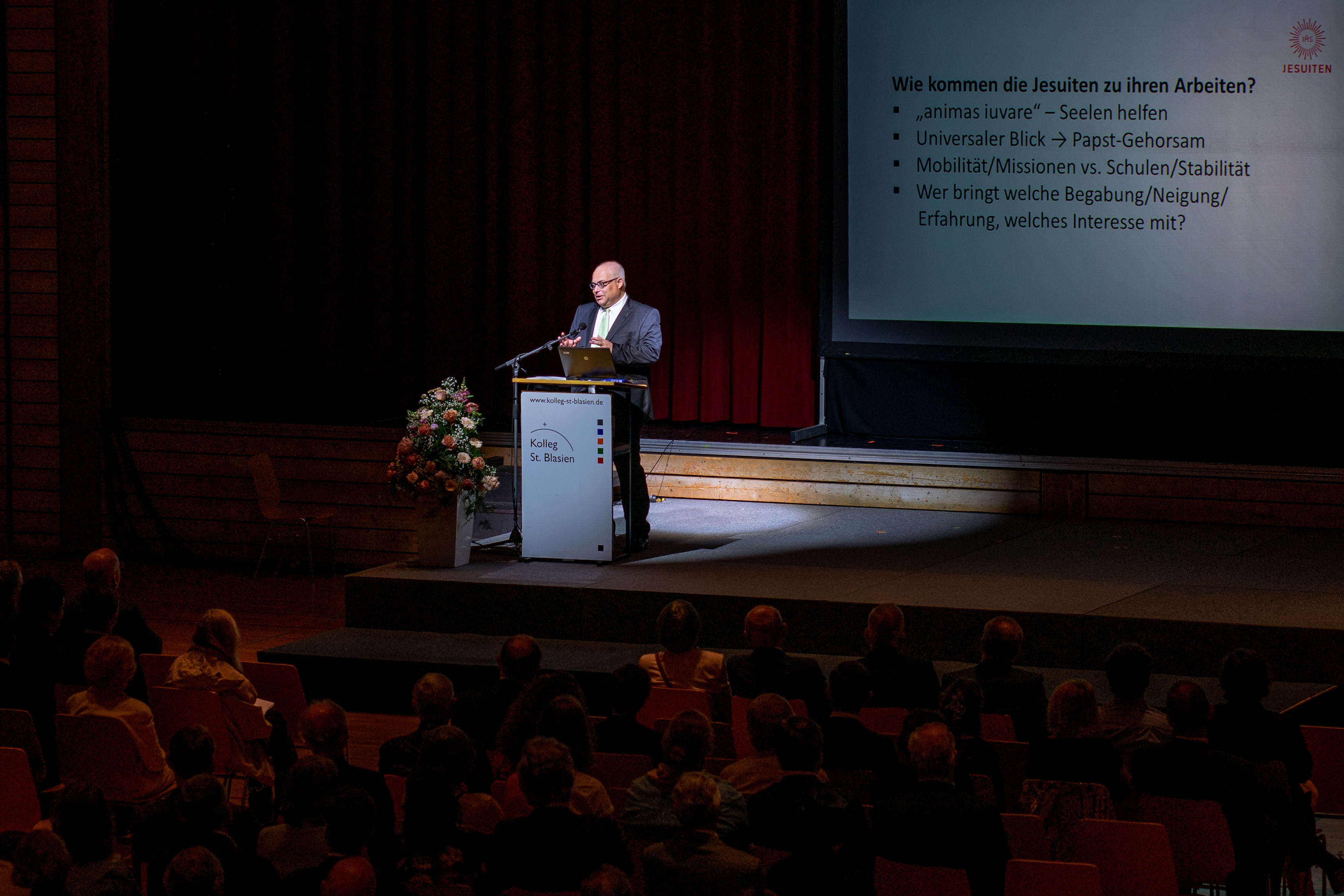 P. Dr. Axel Bödefeld SJ, früher Internatsleiter am Kolleg St. Blasien und heute in der Ordensverwaltung und der Seelsorge in München tätig, erläuterte eindrucksvoll in der Kollegsversammlung am Pfingstsonntag den Hintergrund der Entstehung und die weitreichende Bedeutung der Grundentscheidung für die universellen apostolischen Präferenzen (UAP). Seit dem Frühjahr 2019 folgt der Jesuitenorden weltweilt vier Präferenzen in seinen Arbeiten und Werken. Zuerst skizzierte Bödefeld die zentralen Arbeitsfelder, in denen die Jesuiten weltweit tätig sind. Vor dem Hintergrund der personellen Entwicklung des Jesuitenordens betonte er, dass die Mitarbeiterinnen und Mitarbeiter in den Werken immer wichtiger werden. Im Anschluss erklärte er, wie die Jesuiten zu ihren Arbeiten und Aufträgen kommen. Zentral ist dabei das Charakteristikum „Hören und unterscheiden!“. Zudem spielt das Grundmotto „animas iuvare“ (den Seelen helfen) eine große Rolle. Danach entfaltete er die vier Dimensionen und die Bedeutung für das Kolleg St. Blasien: Geistliche Übungen und geistliche Unterscheidung (z.B. religiöse Elemente im Kollegsleben), Gemeinsam mit den Armen / Einsatz für Gerechtigkeit (z.B. den Schulbesuch wirtschaftlich allen ermöglichen; wer sind die Verletzlichen und Ausgegrenzten in der Schulgemeinschaft?), Junge Menschen begleiten für eine hoffnungsvolle Zukunft (z.B. Bühnen schaffen für Kreativität und Selbsterprobung; „Cura personalis“, die Sorge um die/den Einzelne/n) und für das gemeinsame Haus der Schöpfung zusammenarbeiten (z.B. Einkauf und Konsum: Regionalität, Saisonalität, FairTrade, Nachhaltigkeit; Klassenenfahrten).
