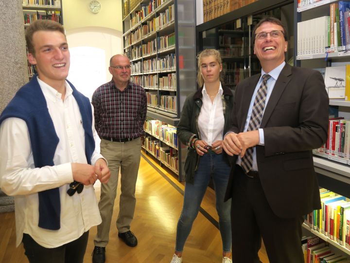 Am Donnerstagnachmittag (7. Juni) war der Staatssekretär Volker Schebesta MdL zusammen mit der Landtagsabgeordneten Sabine Hartmann-Müller MdL zu Besuch am Kolleg. Von 2006 bis 2011 war Schebesta bildungspolitischer Sprecher und seit Mai 2016 ist er politischer Staatssekretär im Ministerium für Kultus, Jugend und Sport von Baden-Württemberg. Tatiana und Jan-Philipp zeigten den beiden Politikern das Kolleg aus Schülerperspektive und führten sie auch durch die Internatsräume. Anschließend gab es mit der Kollegsleitung ein ausführliches Gespräch über die aktuellen Herausforderungen und Entwicklungen in Schule und Internat.