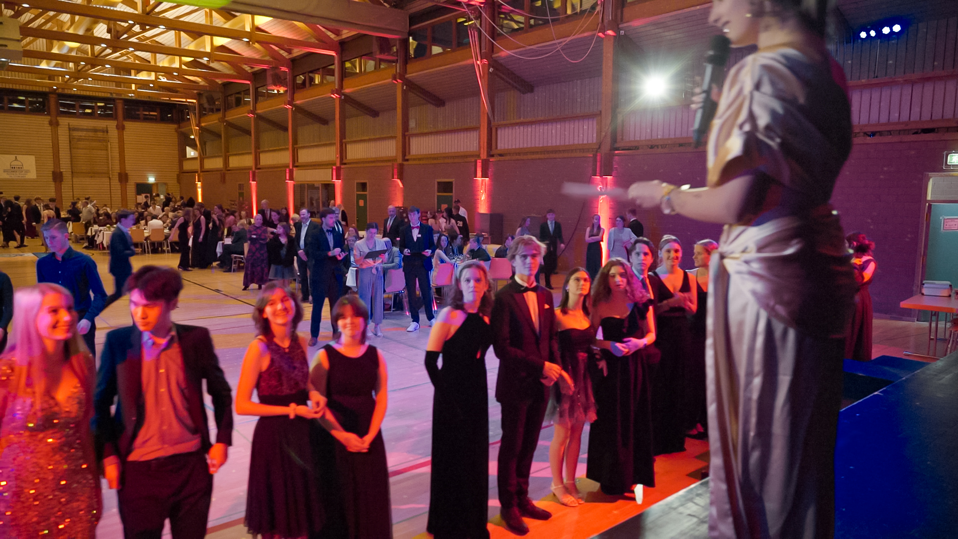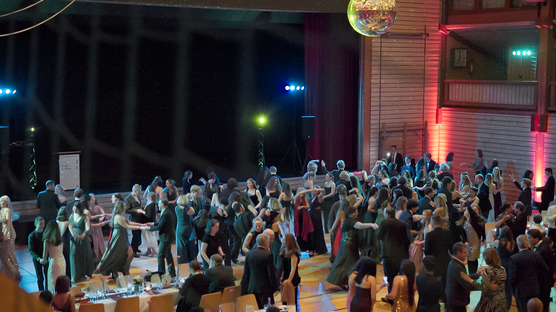 Am vergangenen Samstagabend fand der festliche Abschlussball des Tanzkurses in der Pater-Delp-Halle am Kolleg statt. Ein gesellschaftliches Ereignis, das auf eine lange Tradition zurückblickt. Seit dem Jahr 1993 wird dieser besondere Abend am Kolleg gefeiert, zuvor fanden die gemeinsamen Tanzkurse mit Kloster Wald statt. Diese traditionsreiche Veranstaltung ist nicht nur ein Höhepunkt im Kollegskalender, sondern auch eine Gelegenheit für Hunderte von Gäste aus nah und fern, ihre Tanzkünste in einem festlichen Rahmen darzubieten. Die rauschende Ballnacht begeisterte die zahlreichen Teilnehmerinnen und Teilnehmer, die in einer tollen Atmosphäre ein köstliches Buffet von der Kollegsküche sehr genossen. Der gelungene Abend war durch eine entspannte Stimmung geprägt. Auch die Zusammenarbeit mit der Freiburger Tanzschule Gutmann trug zum Erfolg der Veranstaltung bei.