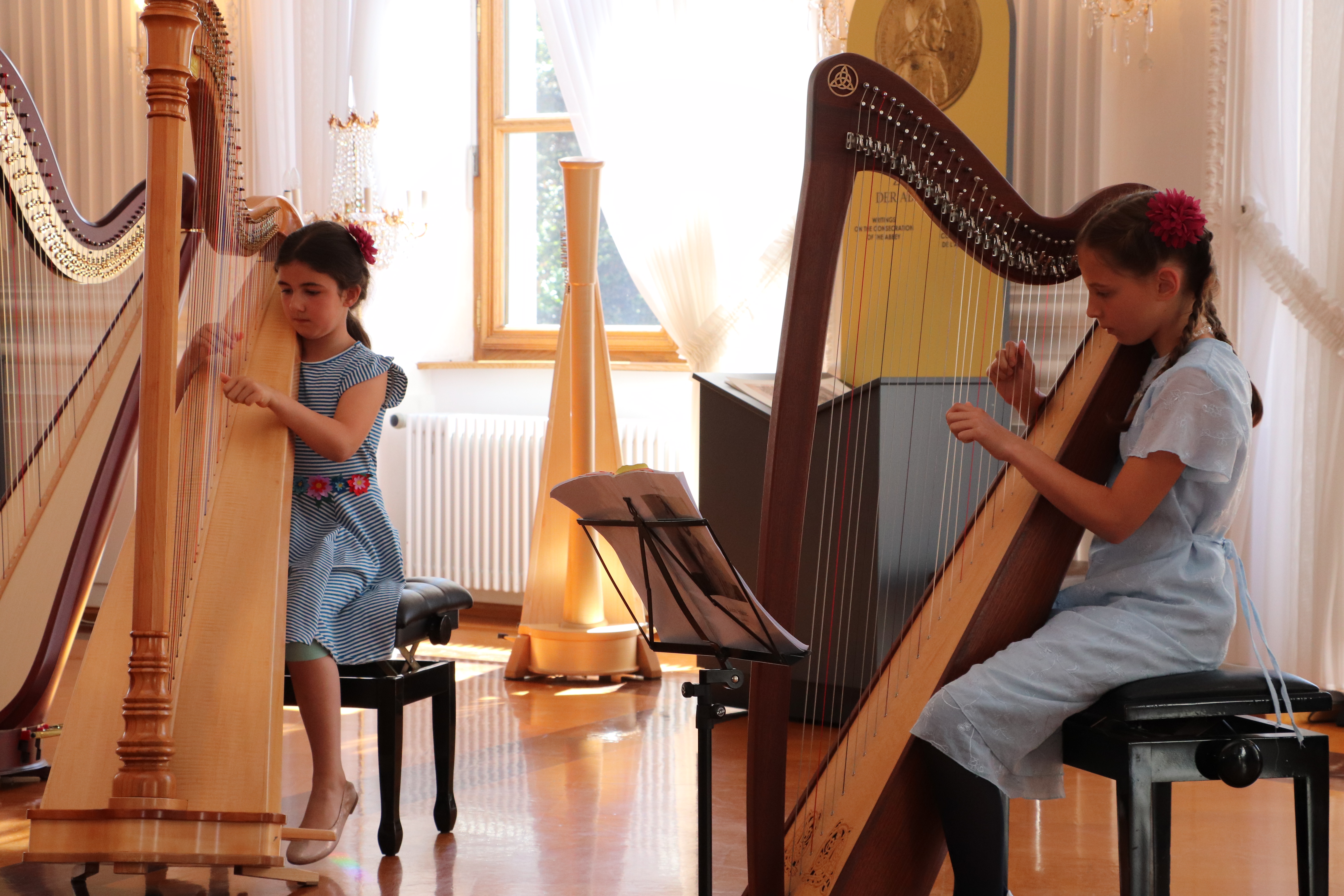 Am 10. Juli fand das Benefizkonzert zugunsten einer neuen Konzertharfe der Harfenklasse von Frau Schlunk statt. Es spielten Schülerinnen sehr unterschiedlichen Alters, auf verschiedenen Harfen. Es waren sowohl Stücke für die irische Harfe im Programm, wie auch Stücke für Einfachpedalharfe und sogar Werke für Konzertharfe. Zum krönenden Abschluss war eine Version Der Moldau für zwei Harfen zu hören.
