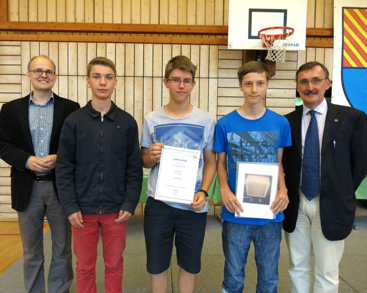 Bei der Preisverleihung für die Sieger des diesjährigen Testo-Schülerwettbewerbs erhielt die Kollegsmannschaft mit Tilmann Laufkötter (9b), Christopher Reinwardt (9d) und Samuel Weirauch (9d) einen Sonderpreis in der Kategorie „beste Idee“ zum Thema „Ping-Pong-Spiel“ – herzlichen Glückwunsch zu diesem Erfolg! Zwölf Schülergruppen präsentierten Mitte Juli in Titisee ihre selbstentwickelten Mikrocontroller-Anwendungen. Vom nachgebauten Funkwecker über eine automatische Bewässerungsanlage bis hin zu einer Jojo-Maschine war eine vielfältige Mischung an Projekten und Entwicklungen dabei.