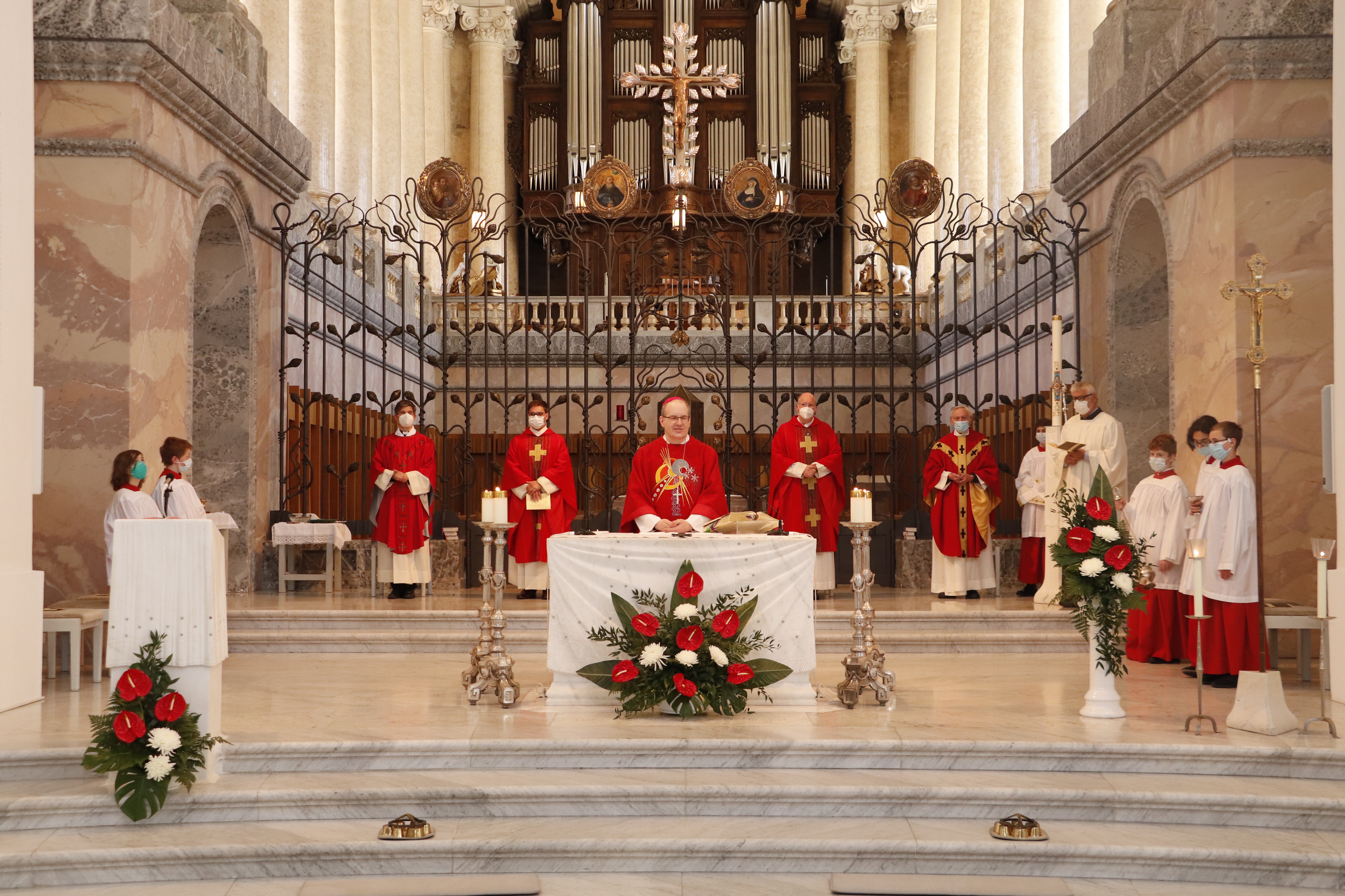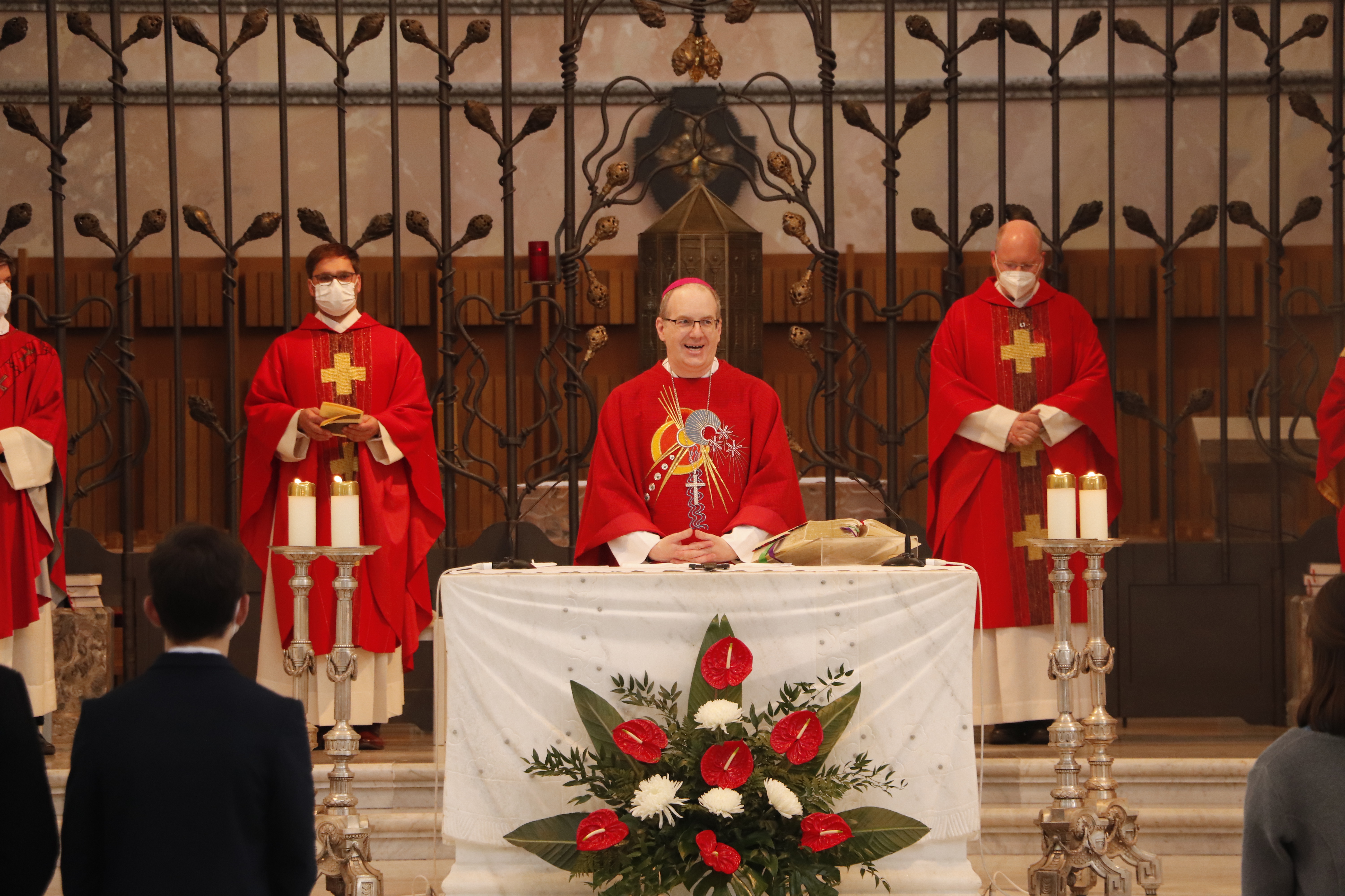 Am Pfingstsamstag (22. Mai) wurde im Dom von St. Blasien 34 Schülerinnen und Schüler von Weihbischof Dr. Dr. Würtz das Sakrament der Firmung gespendet. Der feierliche Gottesdienst wurde von unserer Schola unter der Leitung von Herrn Disch und Frau Yoshimura an der Domorgel musikalisch gestaltet. Die Firmlinge hatten sich in den vergangenen Monaten in einem Firmkurs auf diesen Tag inhaltlich vorbereitet. Dieses freudige Ereignis feierten die Firmandinnen und Firmanden mit Angehörigen im Dom.