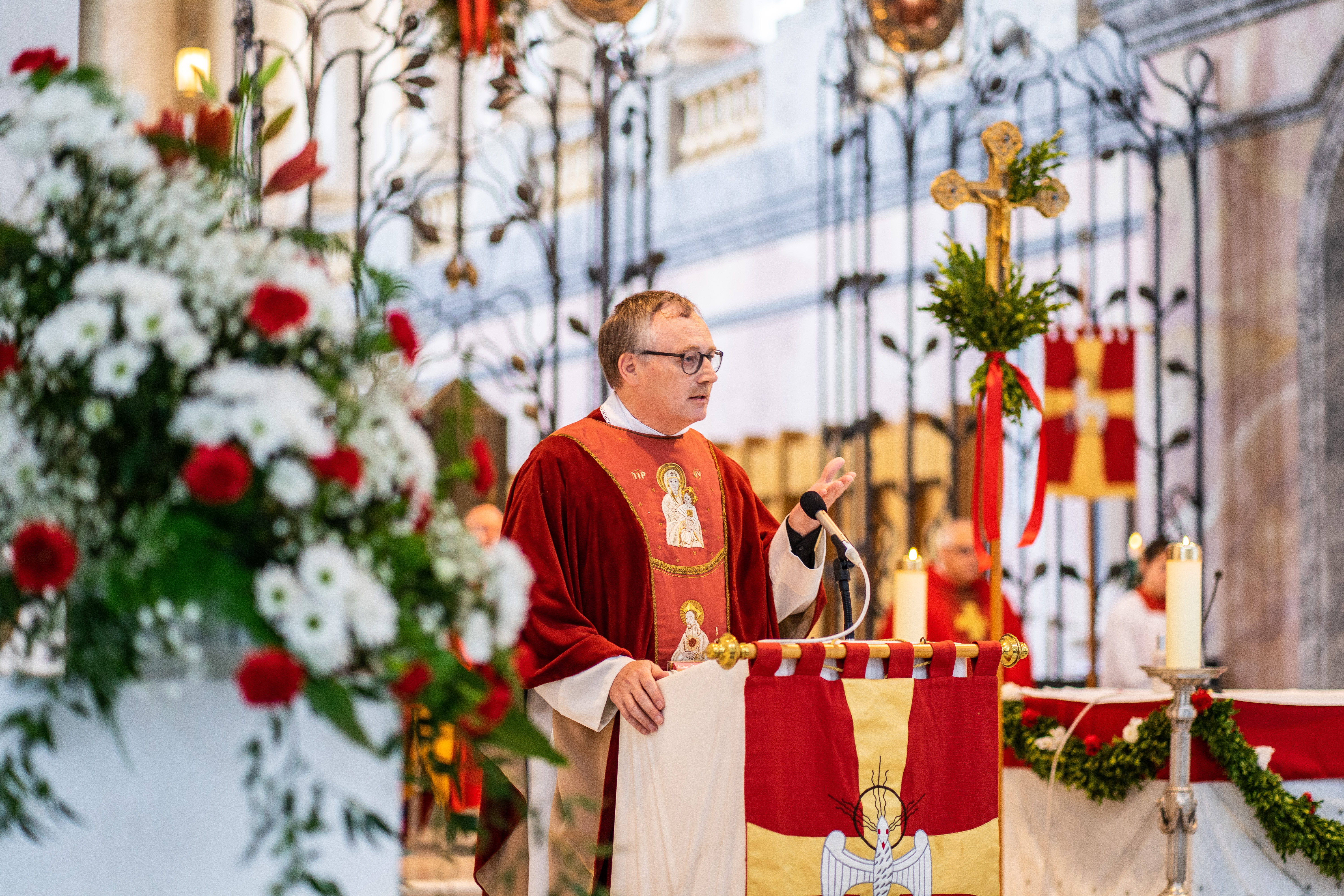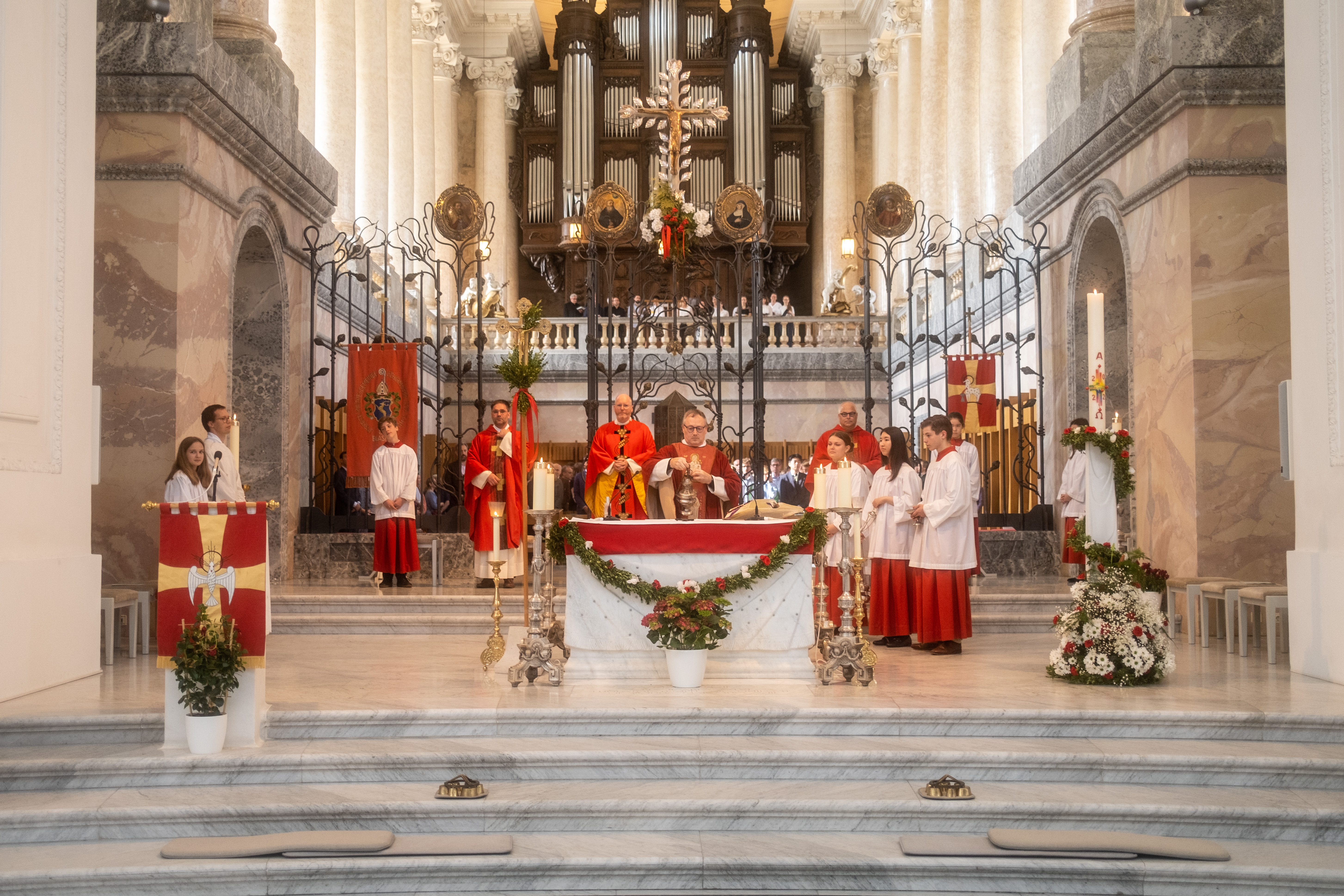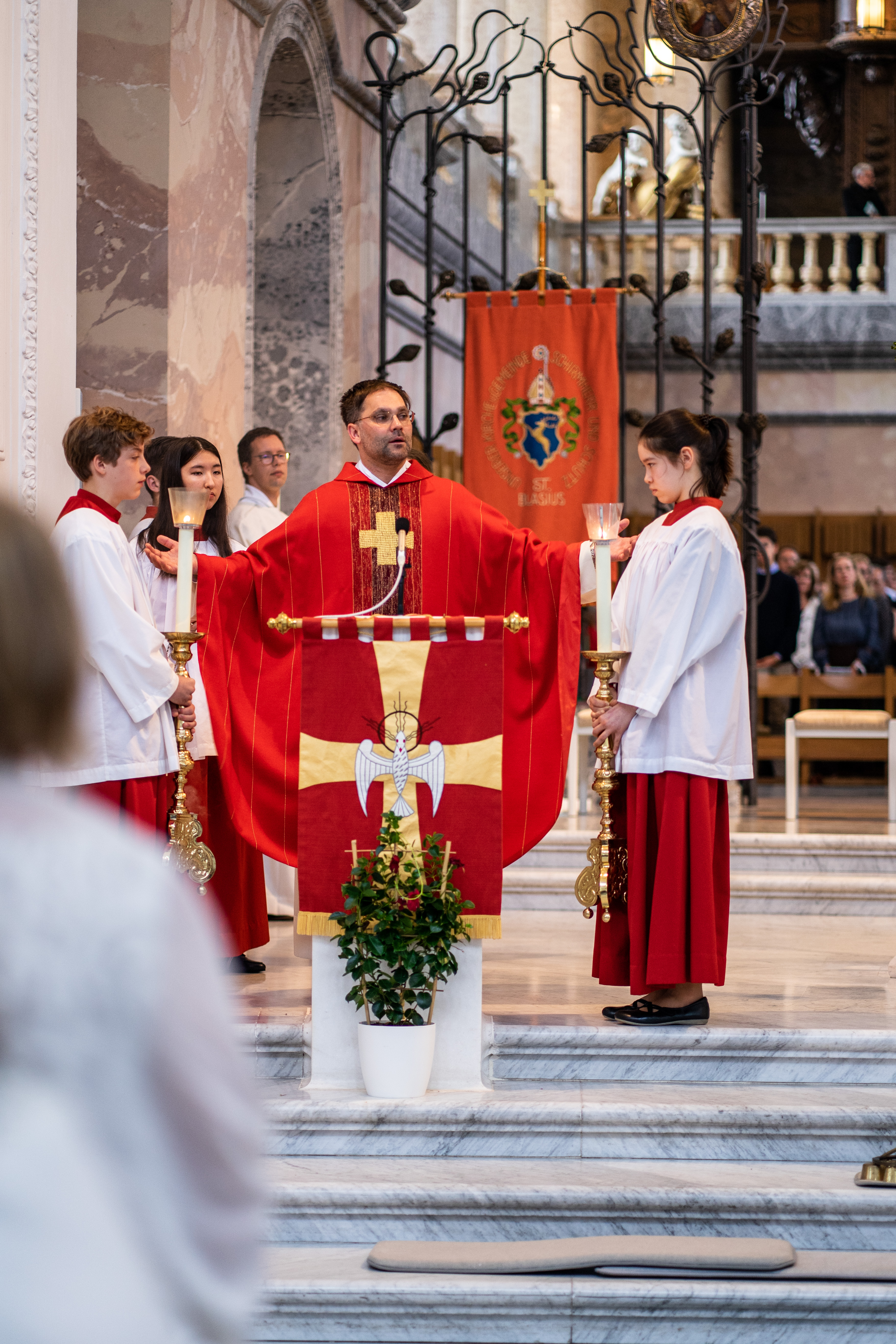 Pater Provinzial Bernhard Bürgler SJ hat am Pfingstsonntag im Hochamt im Dom über unsere Identität im Glauben gepredigt, woher wir kommen und wer wir sind. „Wir kommen von Gott und Gott hat uns geschaffen als sein Bild“, so Bürgler SJ. „Wir sind Gottes Repräsentant in der Welt – das ist unsere Lebensaufgabe“, so Bürgler weiter. Konkret bedeutet dies an einer Jesuitenschule, dass es um mehr als Ausbildung geht - um die Bildung und die Entfaltung der Begabungen, Gaben und Charismen, die in jeder Person zu entdecken und zur Entfaltung zu bringen sind. Dadurch erschließt sich das, was man Berufung nennt. Zudem gilt es das Mitgefühl als „Weltmuttersprache“ zu erlernen. „Mitgefühl – diese Sprache sollte jeder fließend sprechen, wenn er St. Blasien verlässt“, betonte Provinzial P. Bürgler. Die komplette Predigt ist hier als Schriftfassung abrufbar. Der Kollegschor sorgte beim Höhepunkt des Pfingstfestes für eine schöne musikalische Begleitung. Impressionen vom Hochamt gibt es in unserer Bildergalerie.