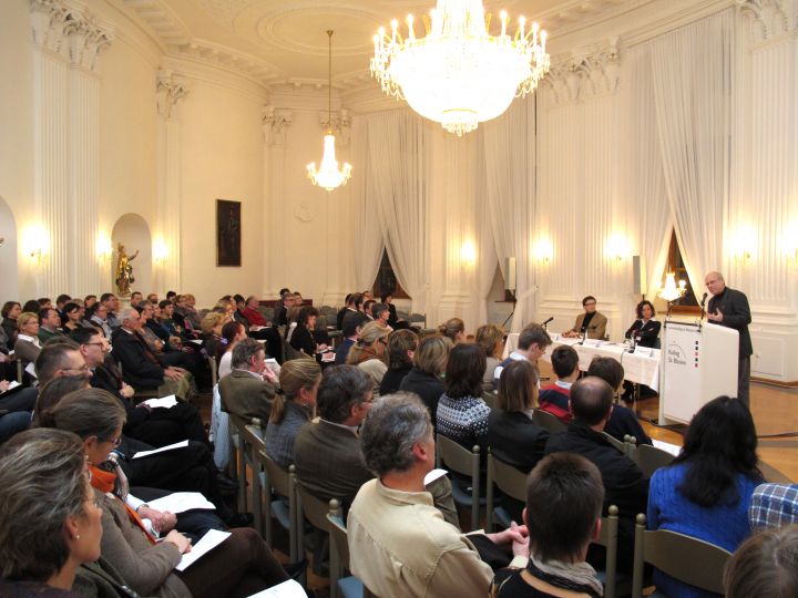 Auf Einladung des Elternbeirats diskutierten am Dienstagabend Eltern und andere Interessierte über das Leitbild des Kollegs und dessen konkrete Umsetzung im Alltag. Im fast vollbesetzten Festsaal entfaltete Pater Mertes SJ die zentralen Kernanliegen der ignatianischen Pädagogik und die praktische Operationalisierung: die Würde jedes Einzelnen, die Reflexionskultur, der Einsatz für Gerechtigkeit und die Frage nach Gott. Im Anschluss an das Impulsreferat folgte eine ausführliche Gesprächsrunde unter der Moderation von Herrn Dr. Spitz und Frau Dr. von Lutterotti-Scheidt (beide Elternbeirat). Eine Presseresonanz können Sie in der Badischen Zeitung nachlesen.