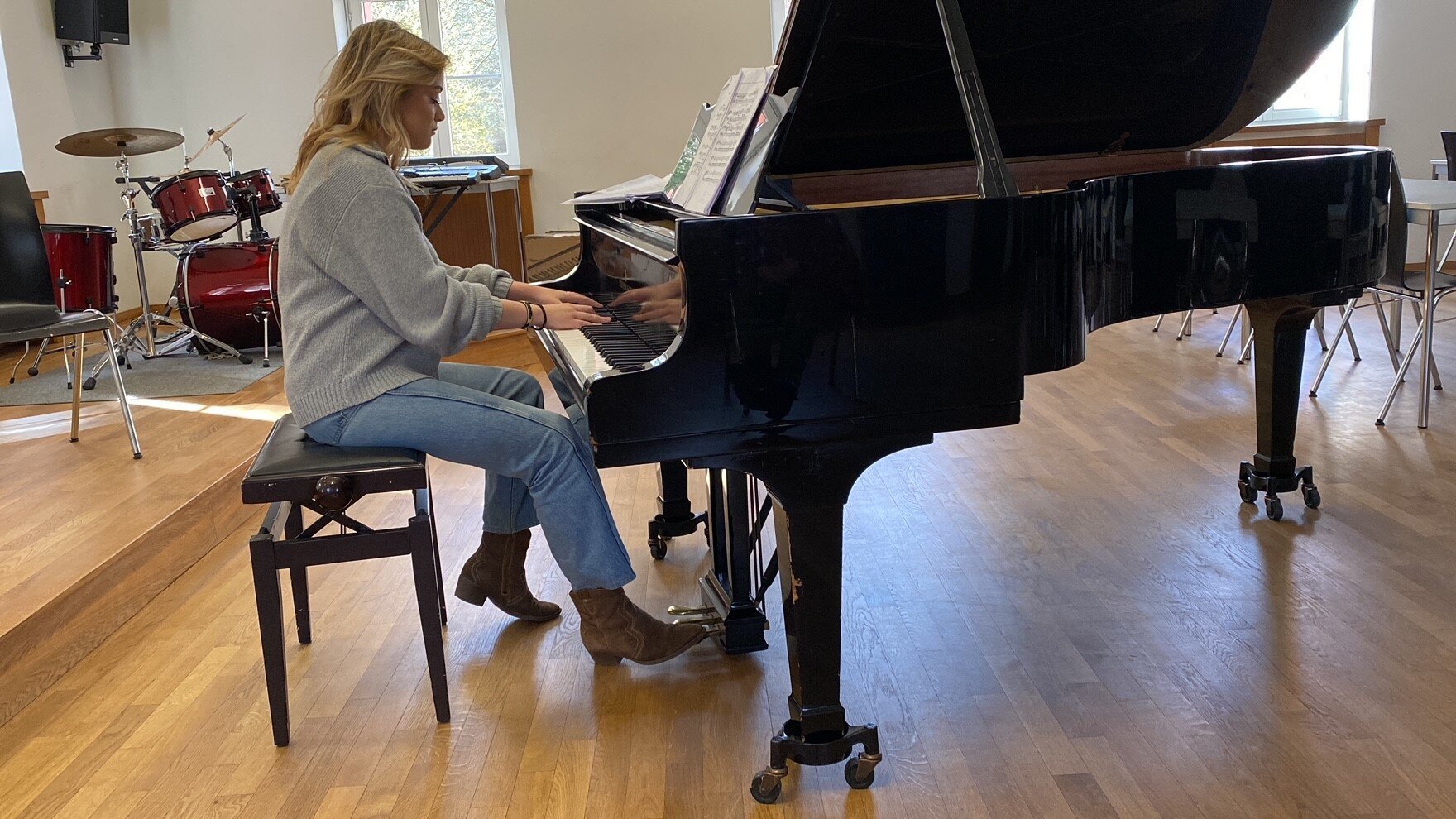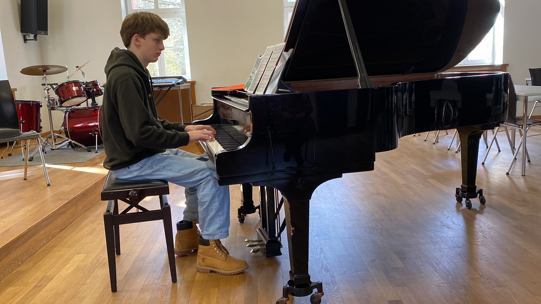 Am Donnerstag, den 14. März, erlebte die Klavierklasse von Iara Behs-Dietsche ein Konzertereignis unter strahlendem Frühlingshimmel.Das Programm des Klaviervorspiels war von einer Vielfalt geprägt und verzauberte mit Meisterwerken von Beethoven, Kabalevski, Debussy, Moszkowski und Chopin. Diese Veranstaltung zeichnete sich durch die Teilnahme einiger Talente aus, darunter Alejandra Rohde, Leopold von Bodman, Sofia Perkins und Mingqian Fang. Letzterer, der leider nicht persönlich anwesend sein konnte, präsentierte seinen Beitrag auf kreative Weise per Video. Dies wurde durch das Engagement des Kollegsfernsehen (KFS) möglich gemacht, das die Produktion des Films übernahm und somit Mingqians Auftritt für alle Anwesenden festhielt.