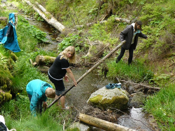 „Du wirst mehr in den Wäldern finden als in den Büchern. Bäume und Steine werden dir zeigen, was du von keinem Lehrmeister hörst.“ Nach diesem Motto von Bernhard v. Clairvaux fand am vergangenen Sonntag ein kreatives LandART-Projekt an der Störchlehütte statt. Sieben Schülerinnen und Schüler arbeiteten gestalterisch mit der Natur unter der Leitung von Frau Holzwarth (Leiterin Atelier) und Frau Kiefer. Die Werkzeuge waren vor allem die Hände und das Material stellte der Wald, die Wiese und der Boden reichlich zur Verfügung. Die Kunstwerke, die nicht für die Ewigkeit sondern für den Augenblick geschaffen wurden, wurden anschließend fotografisch dokumentiert.