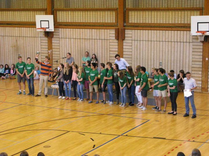 Die Schulleitung gratulierte und überreichte unserer erfolgreichen JeSET-Kollegsmannschaft während der Schülervollversammlung am vergangenen Freitagvormittag in der Pater-Alfred-Delp-Halle die Siegerurkunden. 19 interne und externe Schüler des Kollegs kehrten Ende Juni mit ihren zwei Begleitern Kollegslehrer Erwin Werner und Internatspädagogin Viola Vogl etwas abgekämpft, aber als beste Schulmannschaft vom einwöchigen „JeSET“ (Europäisches Sport-Turnier der Jesuitenschulen) mit fünfzehn anderen Jesuitenkollegien aus Caorle/Venezien zurück. Einen ausführlichen Bericht über das Ereignis gibt es in der Badischen Zeitung.