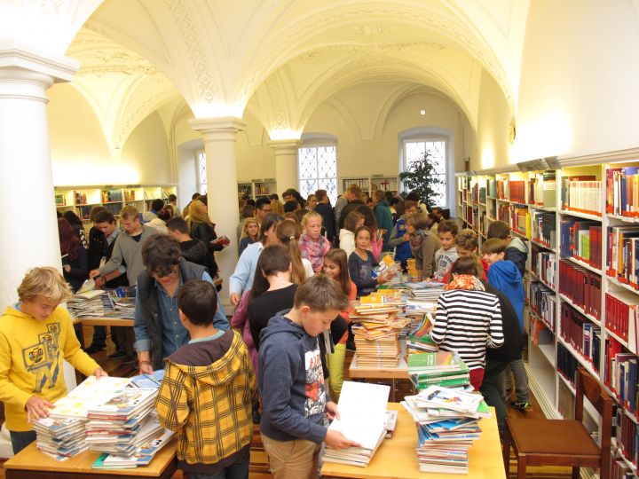 Zu Beginn des Schuljahres wird wieder ein Schulbuchbasar durchgeführt, bei dem die Schülerinnen und Schüler gebrauchte aktuelle Lehrwerke günstig erwerben können. Auch die SMV-Arbeit profitiert von jedem verkauften Buch, da die SMV am Verkaufserlös beteiligt ist. Der Bücherbasar findet am Freitag (13.09.) und Samstag (14.09.) im historischen Lesesaal der Bibliothek statt und wird von unseren ehrenamtlichen Bibliotheksmitarbeiterinnen und –mitarbeiter tatkräftig unterstützt. Herzlichen Dank an alle Helfer, die an diesem Projekt mitwirken.