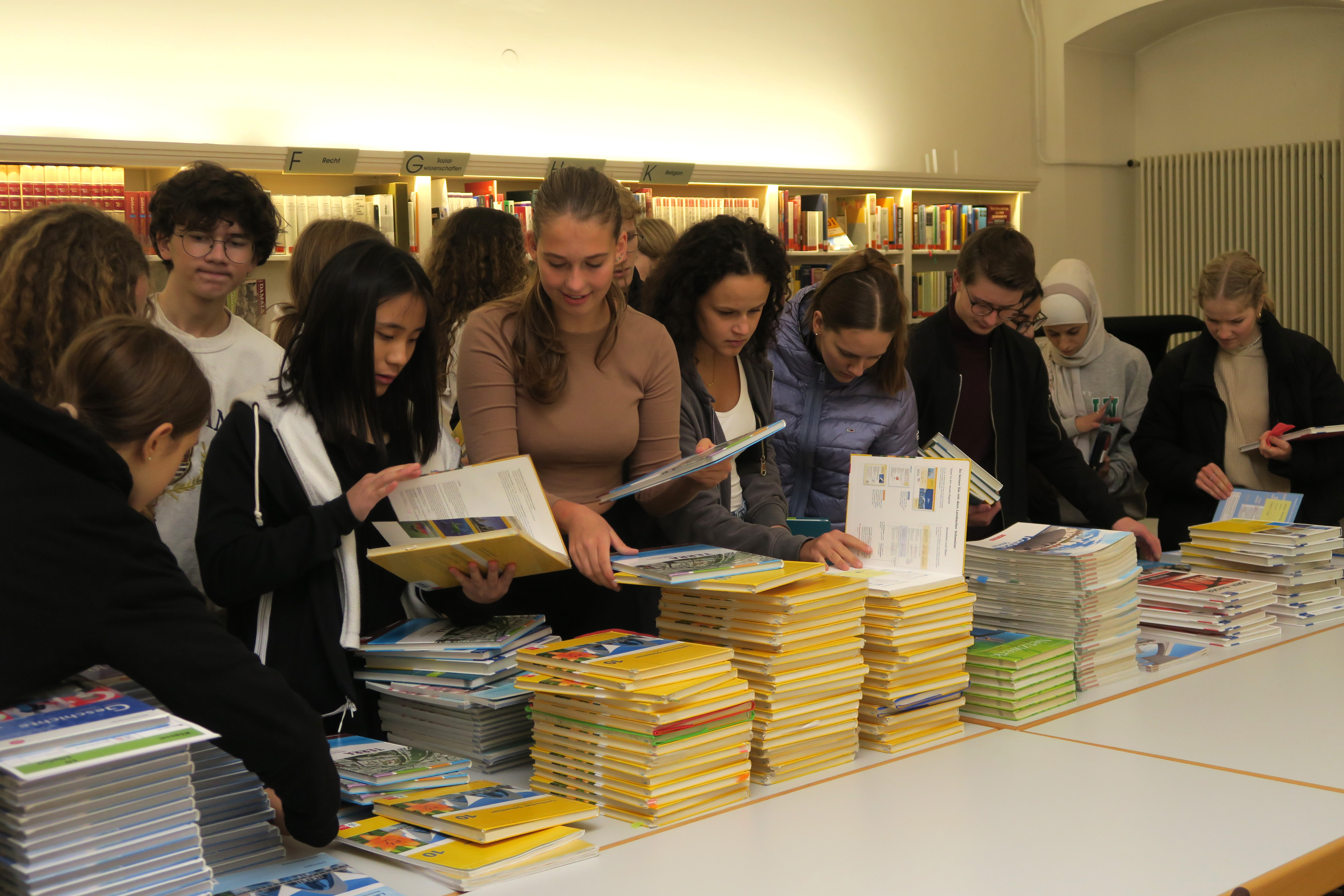 In diesen Tagen läuft wieder erfolgreich der Schulbuchbasar vom 15. bis 17. September, der von ehrenamtlichen Bibliotheksmitarbeiterinnen und -mitarbeitern routiniert organisiert wird. Es sind wieder feste Zeitfenster für die einzelnen Klassen und Kursstufen an diesen drei Tagen vorgesehen. Der Bücherbasar ist inzwischen ein fester Bestandteil am Kolleg St. Blasien. Rund 2.300 Bücher wurden vor und nach den Sommerferien bei den ehrenamtlichen Mitarbeitern der Bibliothek zum Wiederverkauf abgegeben und viele davon haben bereits einen neuen Besitzer gefunden.